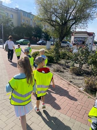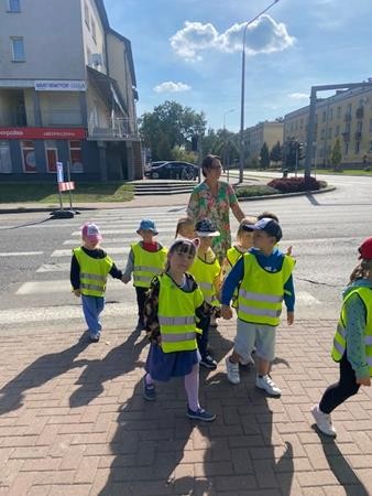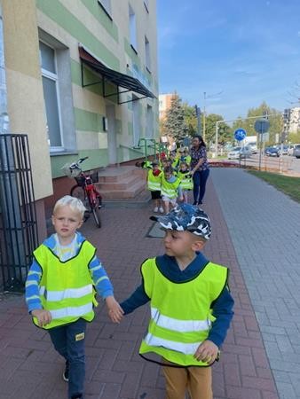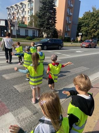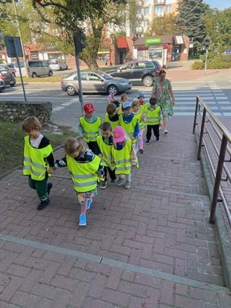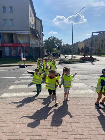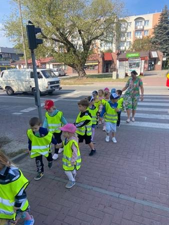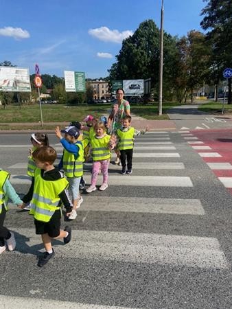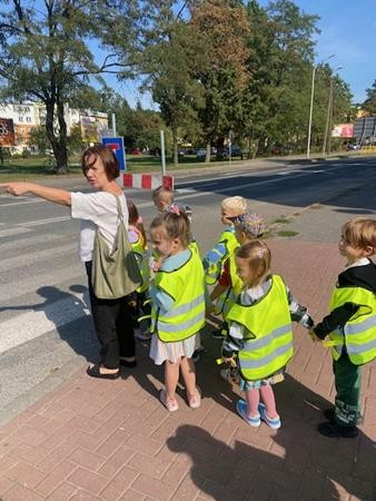 23 września wybraliśmy się na wycieczkę na skrzyżowanie ulic Sidorska i Al. 1000 lecia. Celem wycieczki było utrwalenie zasad bezpiecznego poruszania się w pobliżu jezdni oraz prawidłowego przechodzenia przez ulicę. Dzieci z uwagą obserwowały ruch uliczny, zachowania pieszych i pojazdów. Zwróciły również uwagę na wybrane znaki drogowe i ich znaczenie oraz sposób oznakowania przejścia dla pieszych. Następnie wraz z wychowawczyniami przeszły na drugą stronę ulicy stosując zasady bezpieczeństwa drogowego.
