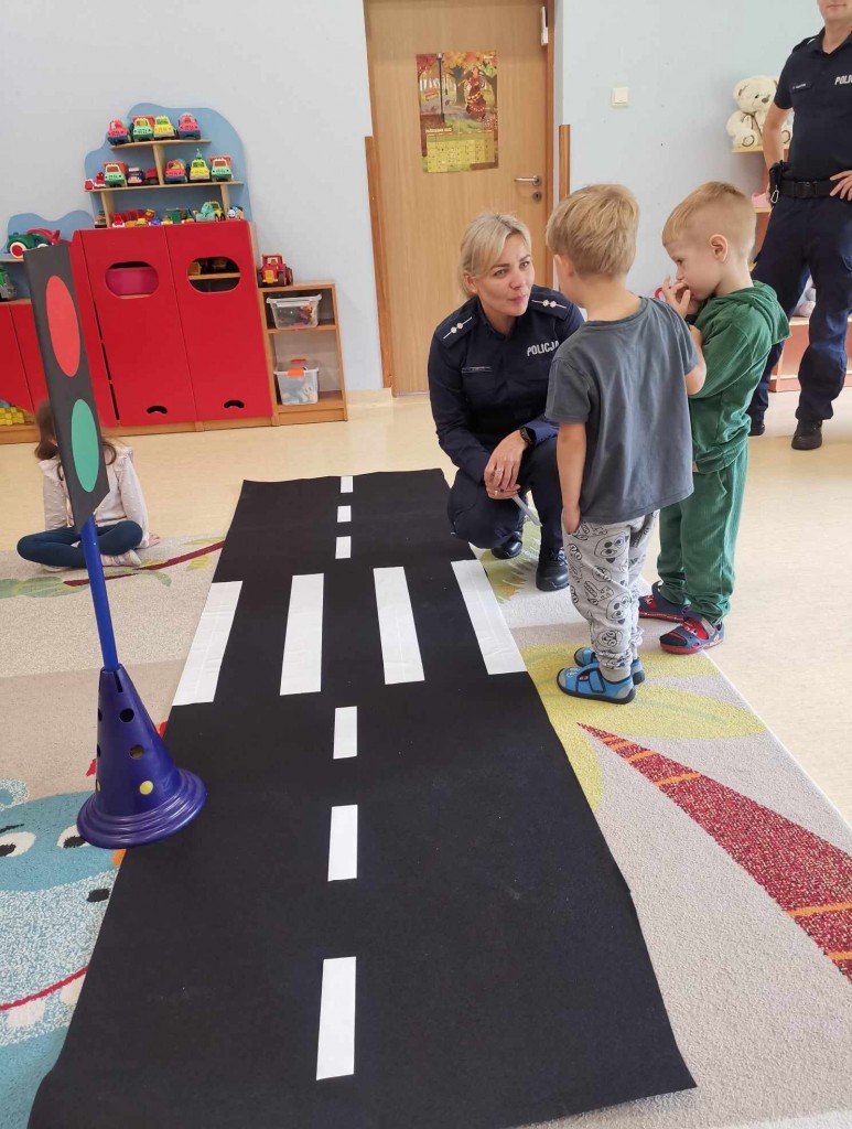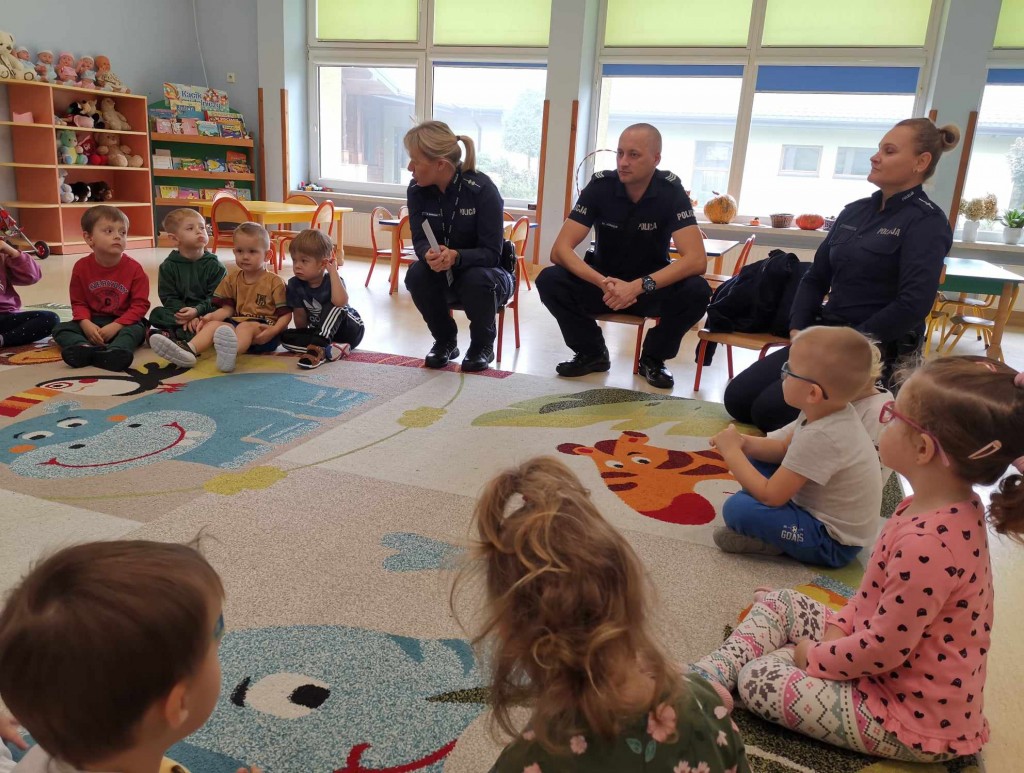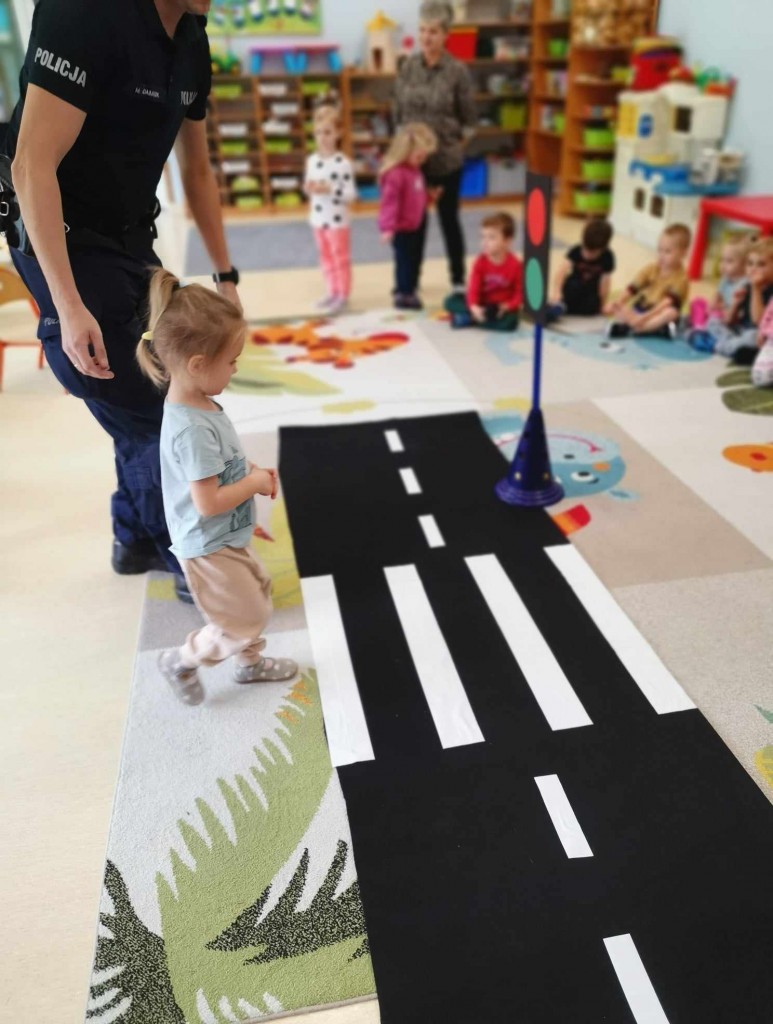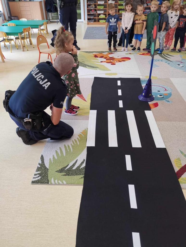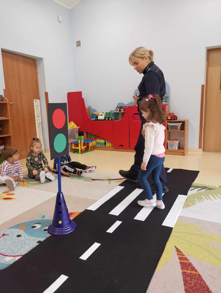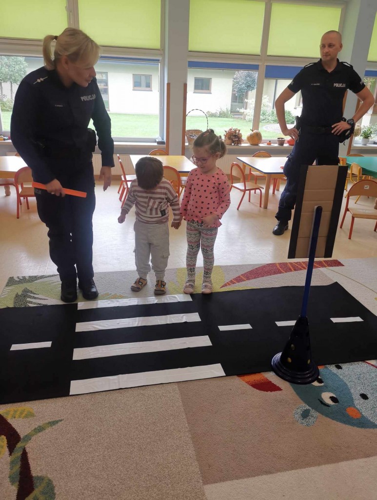 W tygodniu pt.: „ Bezpieczny przedszkolak” mieliśmy przyjemność gościć Panią aspirant Renatę Burdach wraz ze współpracownikami z Komendy Miejskiej Policji w Białej Podlaskiej. Dzięki spotkaniu dowiedzieliśmy się na czym polega praca policjanta. Wiemy, na jakim świetle i w jakim miejscu możemy przechodzić przez ulicę oraz jak ważne jest, abyśmy nie oddalali się od osoby dorosłej. Poznaliśmy również zasady bezpiecznego poruszania się po chodniku podczas spacerów. Na koniec spotkania zostaliśmy obdarowani odblaskami, które mają przypominać nam jak ważne jest nasza widoczność na drodze.