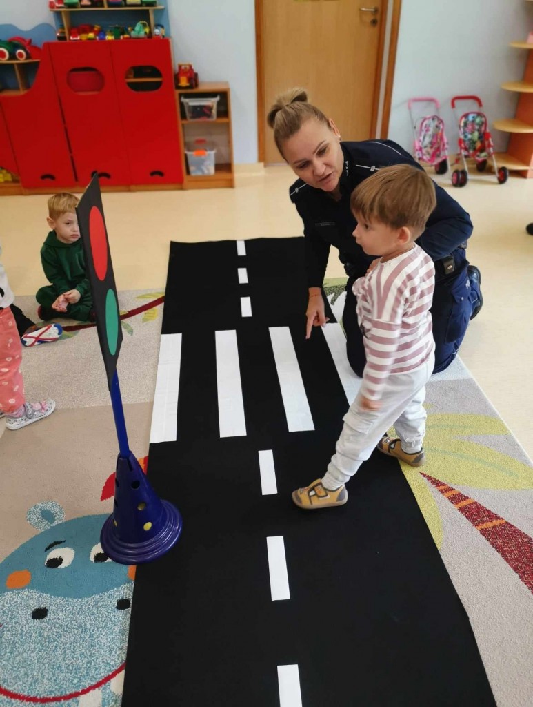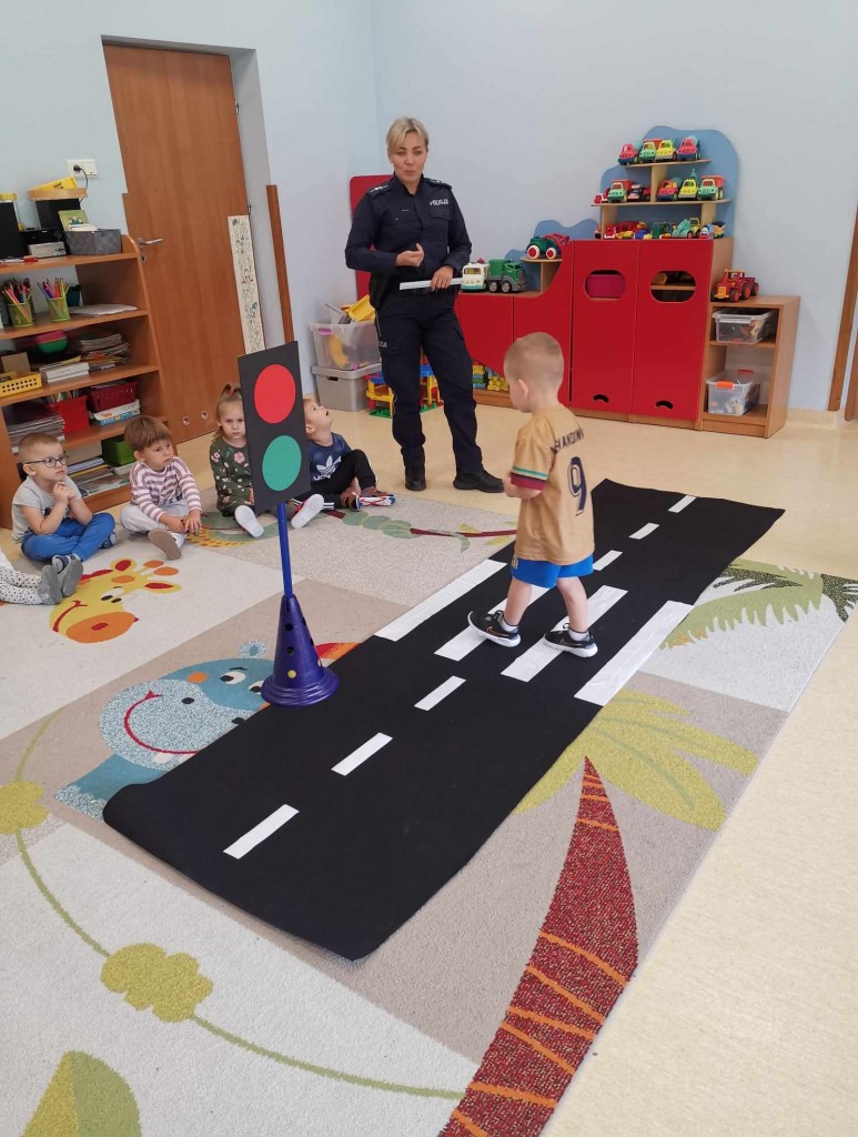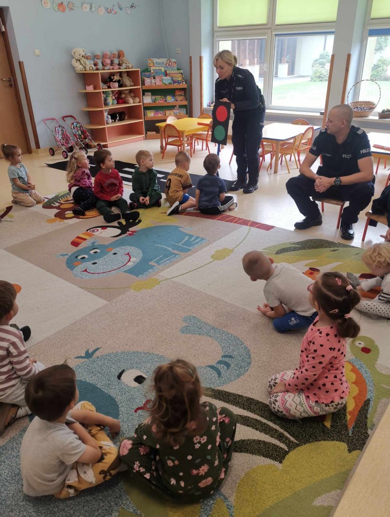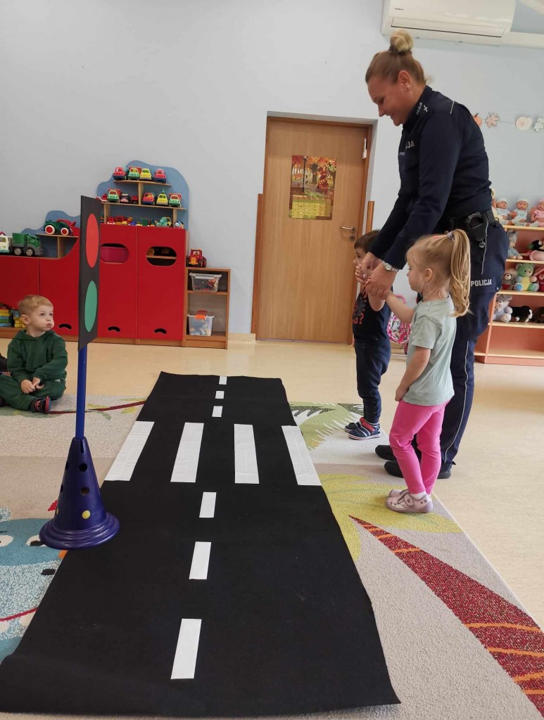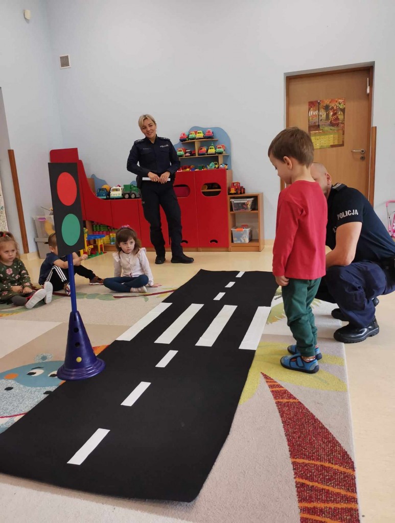 W tygodniu pt.: „ Bezpieczny przedszkolak” mieliśmy przyjemność gościć Panią aspirant Renatę Burdach wraz ze współpracownikami z Komendy Miejskiej Policji w Białej Podlaskiej. Dzięki spotkaniu dowiedzieliśmy się na czym polega praca policjanta. Wiemy, na jakim świetle i w jakim miejscu możemy przechodzić przez ulicę oraz jak ważne jest, abyśmy nie oddalali się od osoby dorosłej. Poznaliśmy również zasady bezpiecznego poruszania się po chodniku podczas spacerów. Na koniec spotkania zostaliśmy obdarowani odblaskami, które mają przypominać nam jak ważne jest nasza widoczność na drodze.