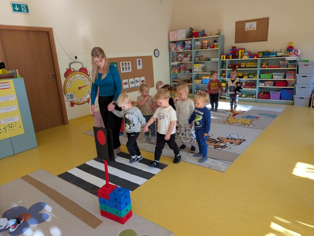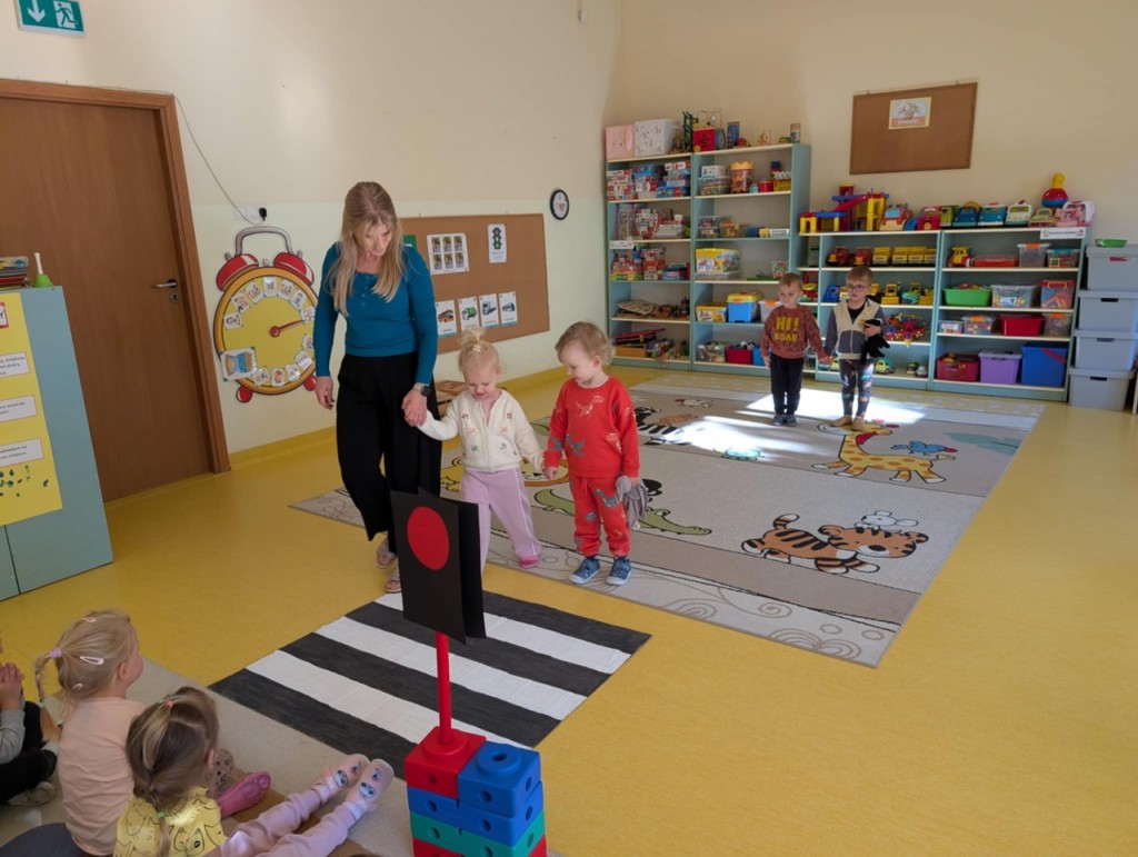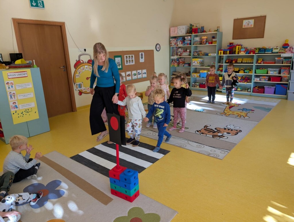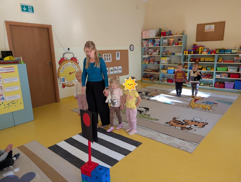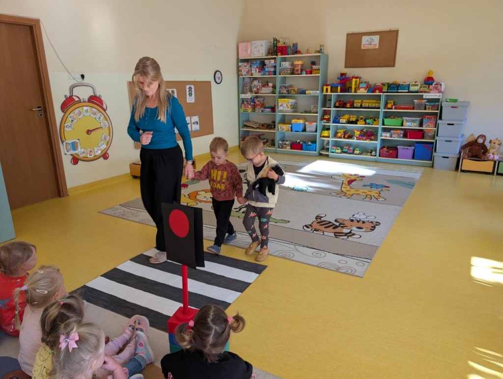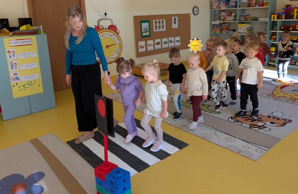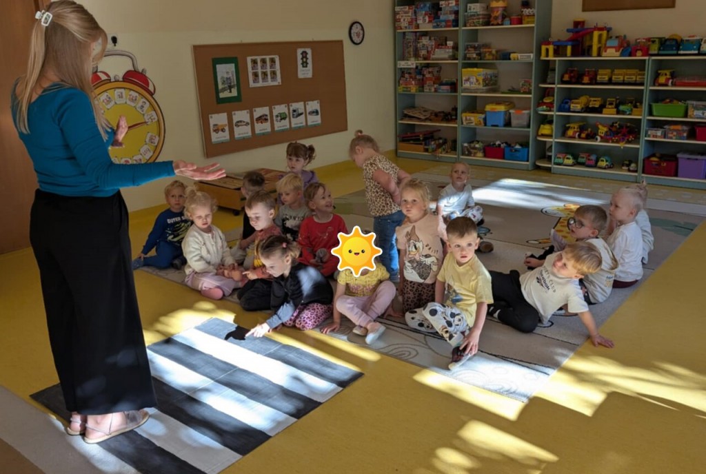 W tygodniu poświęconym realizacji tematyki „Bezpieczni na drodze” poznawaliśmy zasady bezpieczeństwa. Podczas zabaw i organizowanych zajęć rozpoznawaliśmy prawidłowe i nieprawidłowe zachowania na ulicy, poznawaliśmy zasady ruchu drogowego, miejsca, w których można przechodzić przez jezdnię. Uczyliśmy się znaczenia kolorów sygnalizacji świetlnej oraz rozumienia niektórych znaków drogowych.