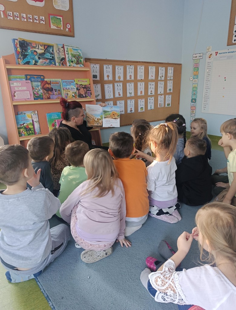 W styczniu naszą grupę odwiedziła mama Karinki S. Pani Kasia przeczytała dwa ulubione opowiadania z biblioteczki naszej Karinki. Dzieci z uwagą wysłuchały przygód dzielnego lwa Simby, a także na podstawie opowiadania "Trzy małe świnki" dowiedziały się,że wytrwała praca, planowanie i solidność popłacają, zapewniając bezpieczeństwo, podczas gdy lenistwo i bylejakość prowadzą do porażki. Dziękujemy pani Kasi za poświęcony czas oraz zaangażowanie.