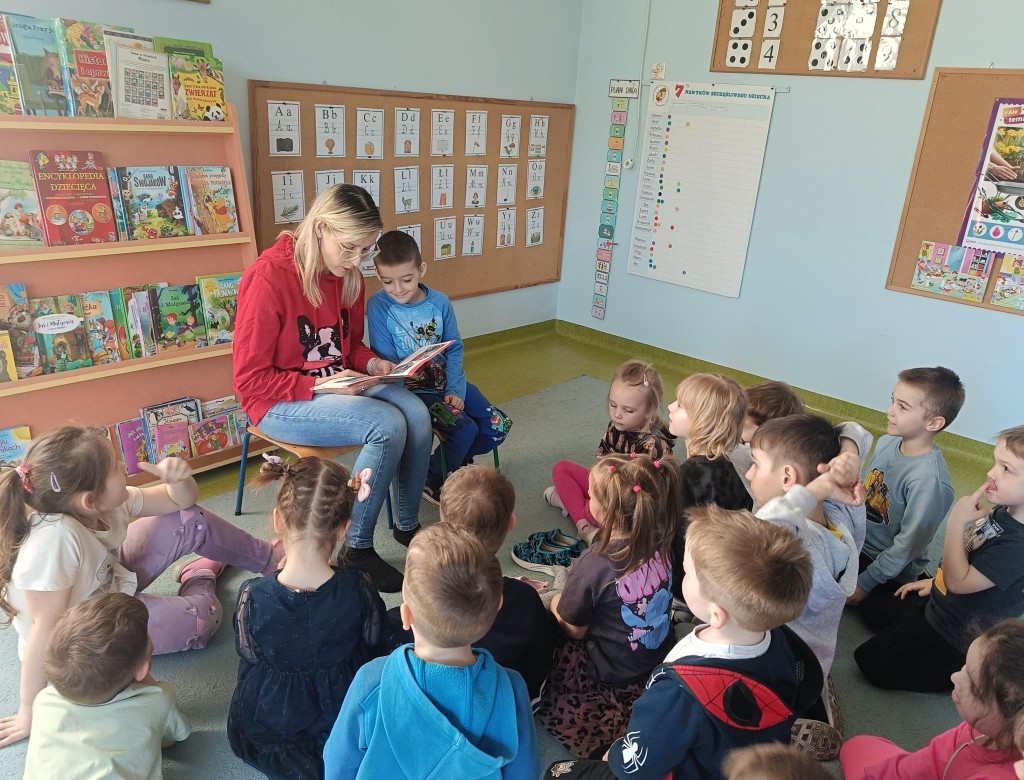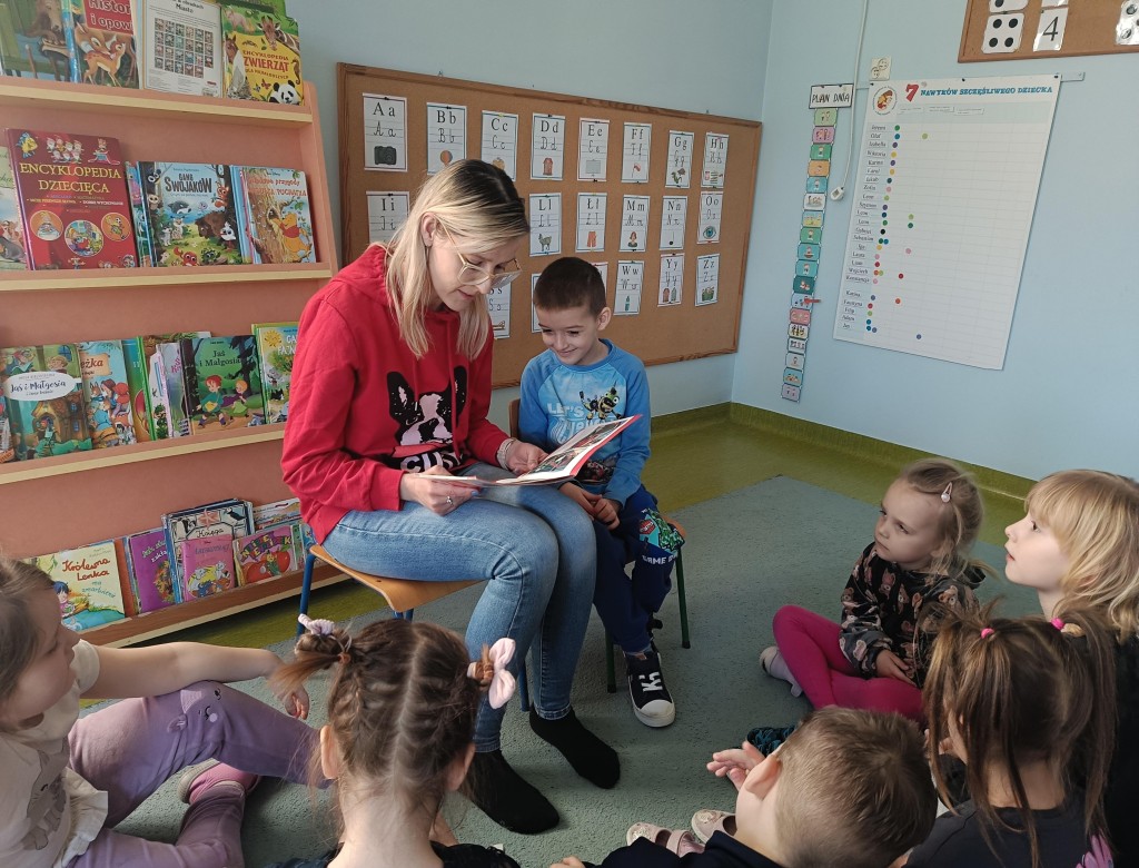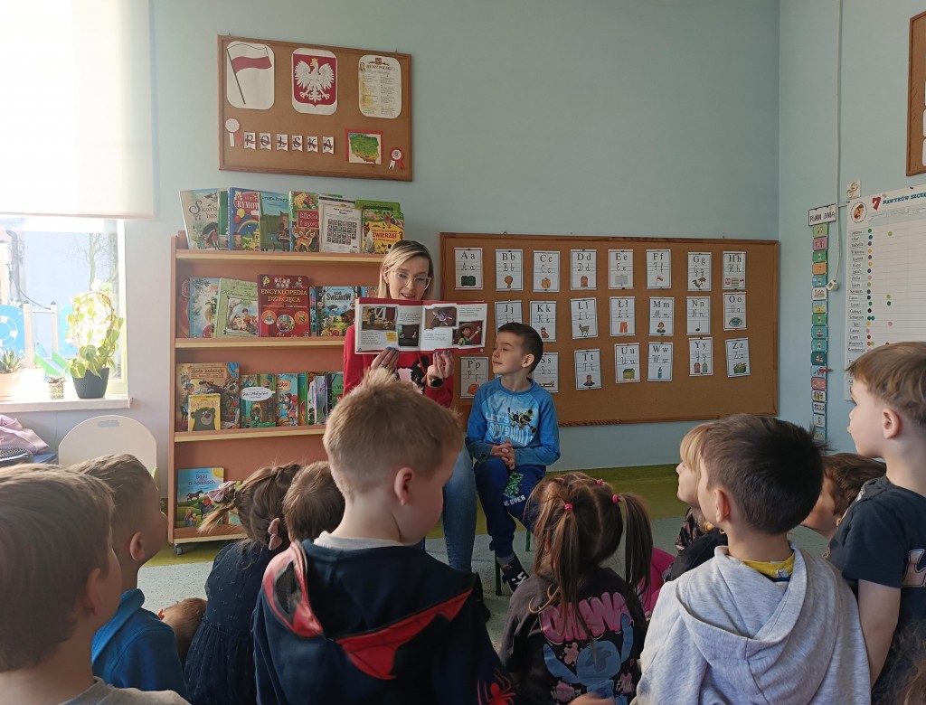 W marcu naszą grupę odwiedziła mama Olafa. Pani Kinga przeczytała jedną z ulubionych książek ,opowiadającą przygody ulubionych bohaterów naszych Tygrysków- "Psi patrol w akcji". Opowiadania o psich bohaterach podkreślają wagę pracy zespołowej, empatii, oraz chęci niesienia pomocy innym. Dziękujemy Pani Kindze za poświęcony czas i zaangażowanie.