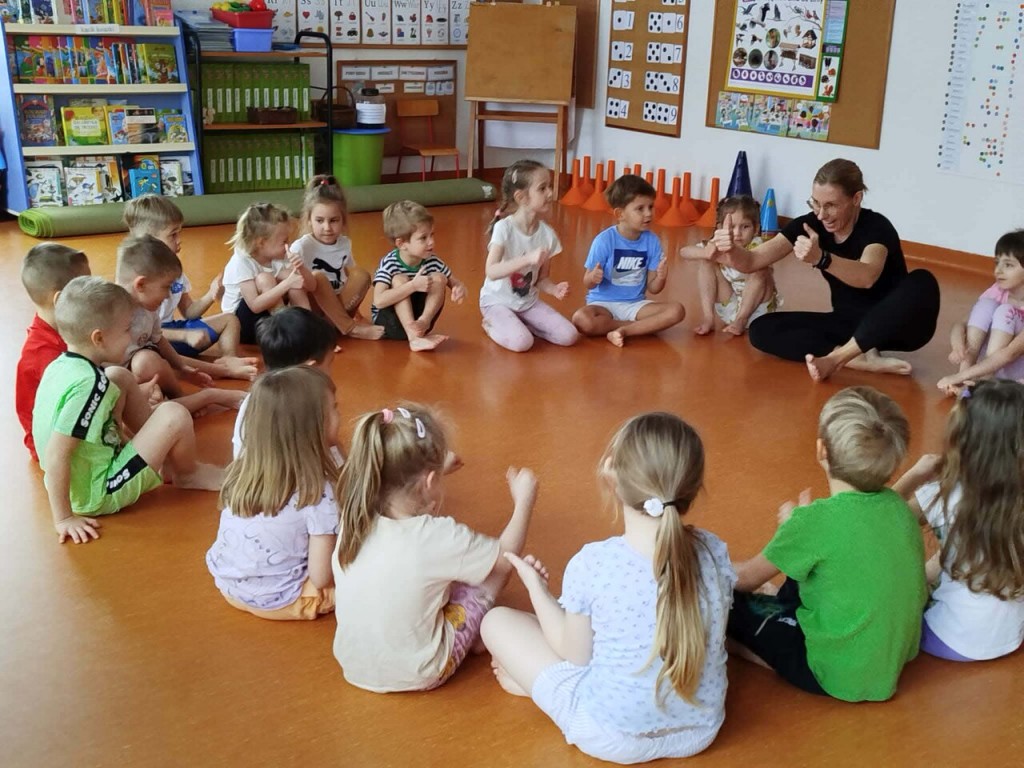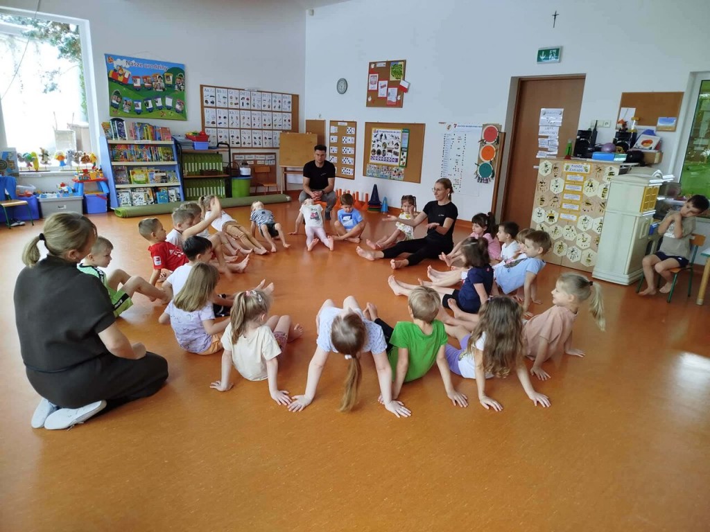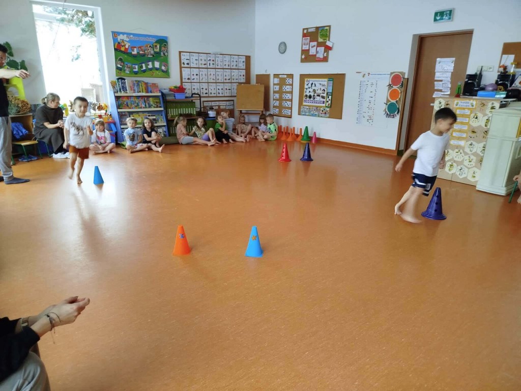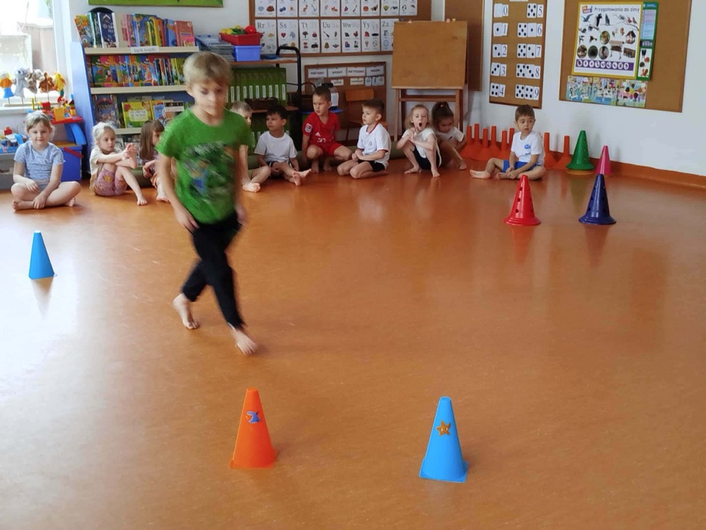 W tym miesiącu gościliśmy panią Magdalenę i pana Pawła tylko raz, ze względu na przerwę świąteczną. Podczas proponowanych ćwiczeń pojawiły się m.in. biegi z przeszkodami, skakanie przez gumę czy rzucanie piłką do celu. Dzięki tym zabawom uczymy się kontrolować swoje ciało, poprawiamy koordynację ruchową oraz rozwijamy umiejętności manualne.