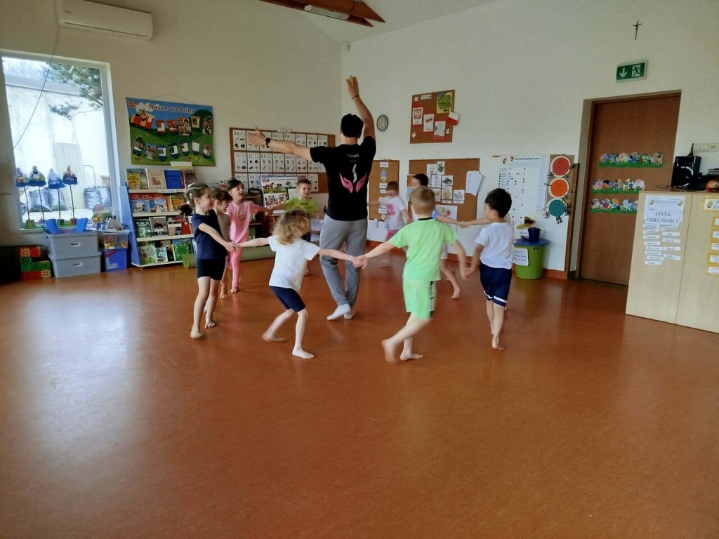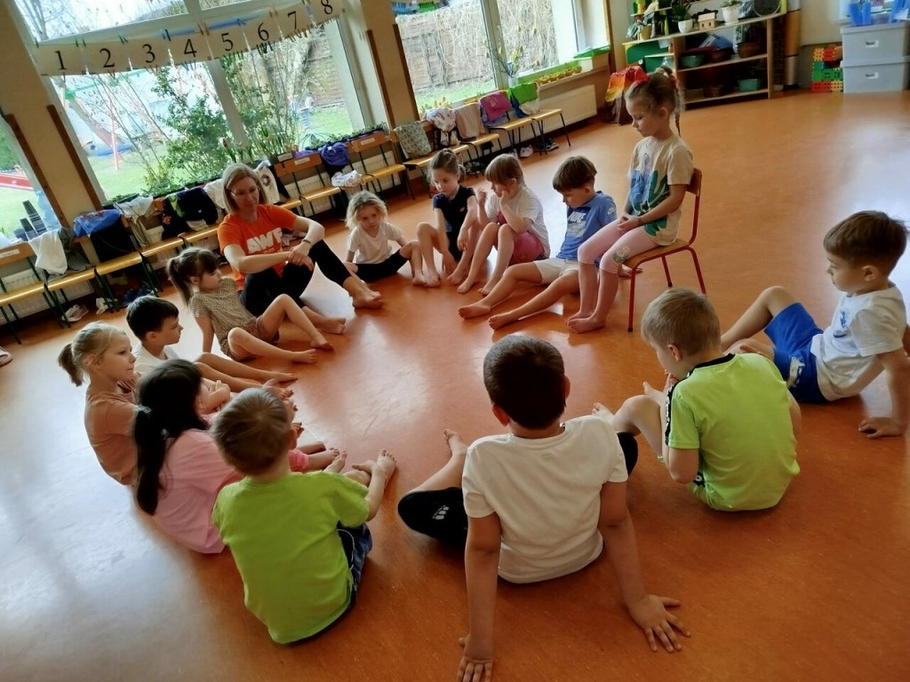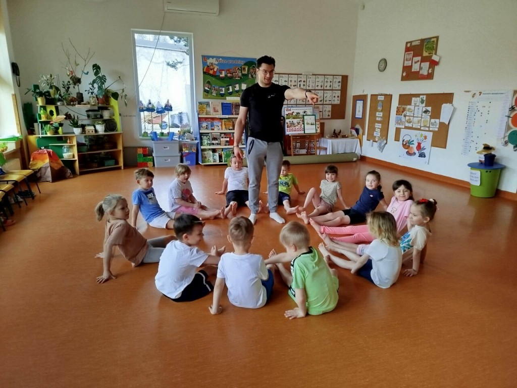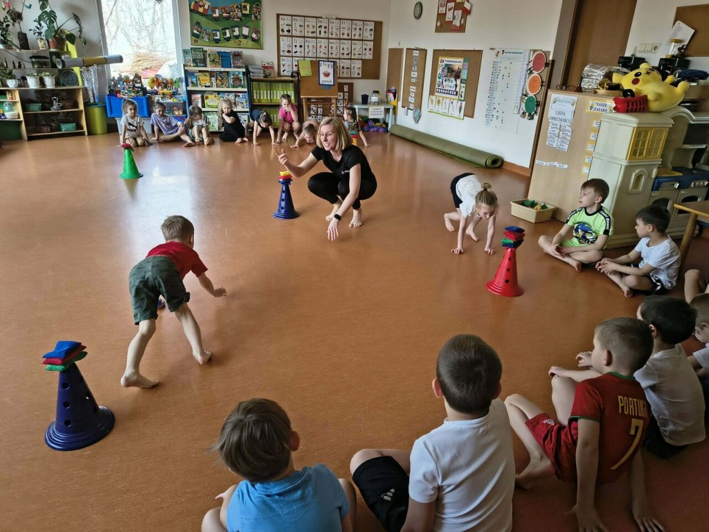 W marcu odbyły się dwa spotkania z panią Madzią i panem Pawłem, którzy zadbali o odpowiednią dawkę ruchu, przygotowując nam ciekawe zestawy ćwiczeń. Poprzez proponowane ćwiczenia wzmocniliśmy gorset mięśniowy, poprawiliśmy sprawność i kondycję. Wspólne zabawy uczą nas współpracy w grupie, cierpliwości oraz świadomości własnego ciała.