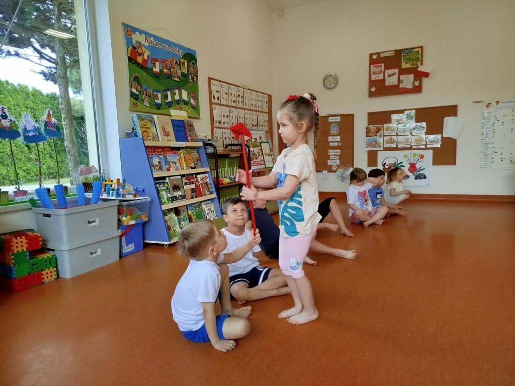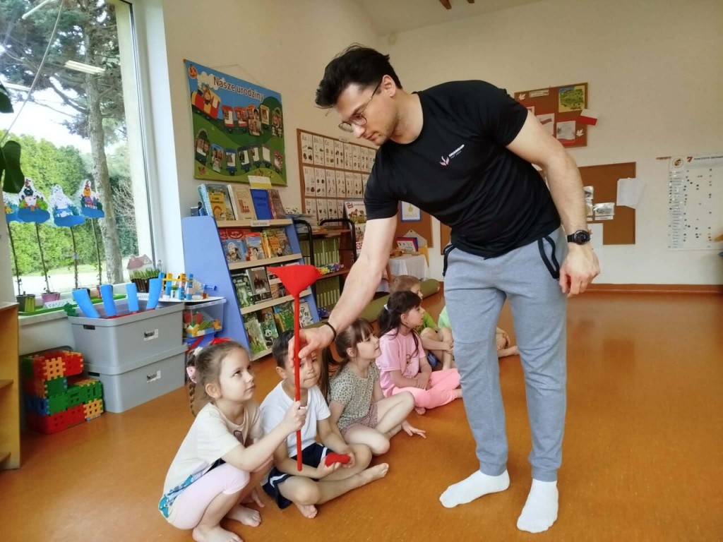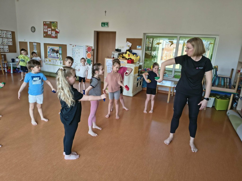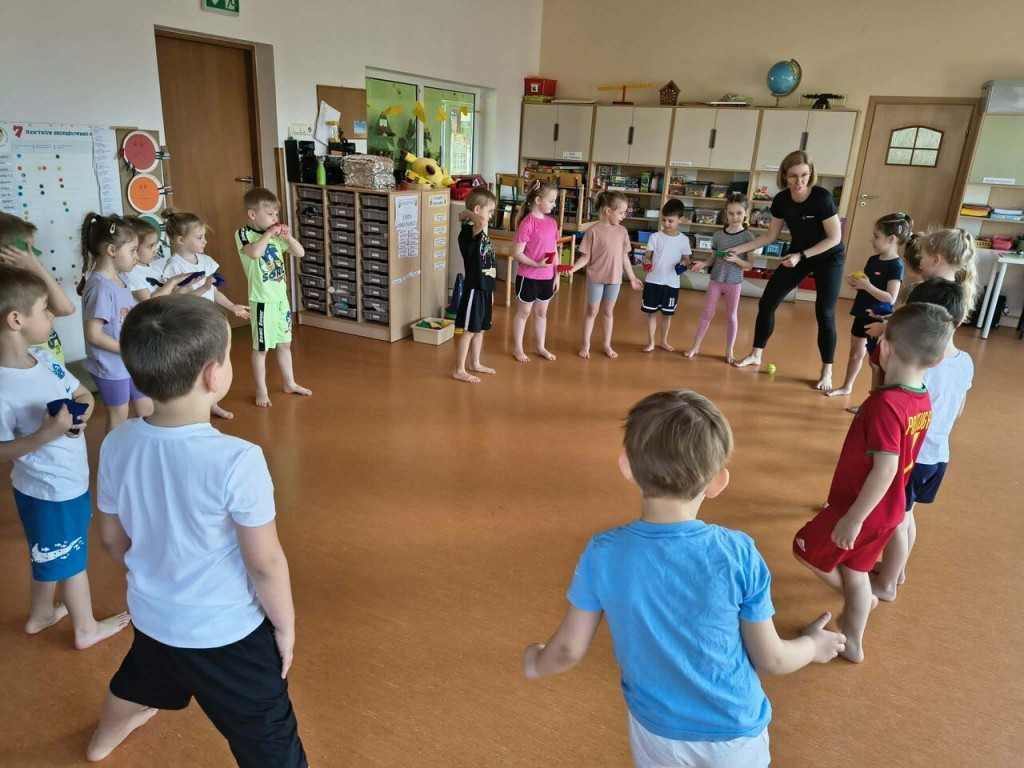 W marcu odbyły się dwa spotkania z panią Madzią i panem Pawłem, którzy zadbali o odpowiednią dawkę ruchu, przygotowując nam ciekawe zestawy ćwiczeń. Poprzez proponowane ćwiczenia wzmocniliśmy gorset mięśniowy, poprawiliśmy sprawność i kondycję. Wspólne zabawy uczą nas współpracy w grupie, cierpliwości oraz świadomości własnego ciała.
