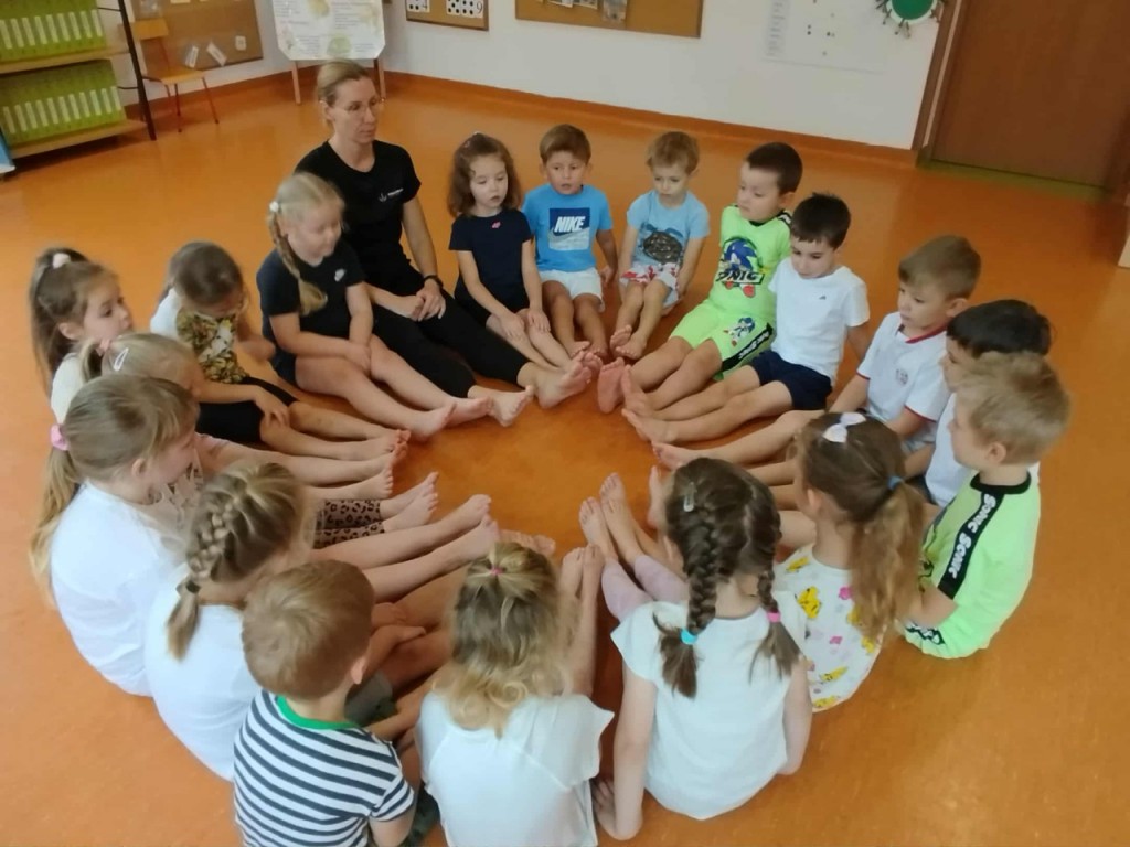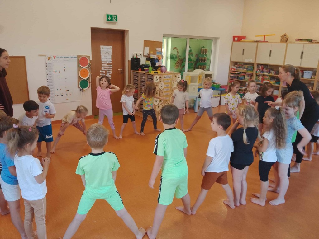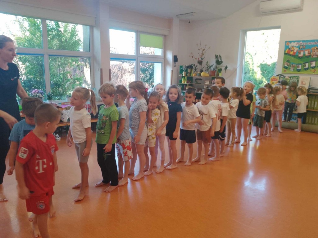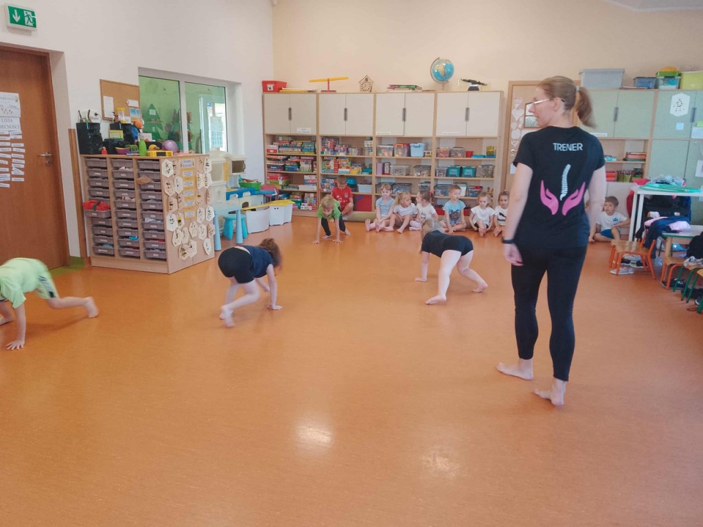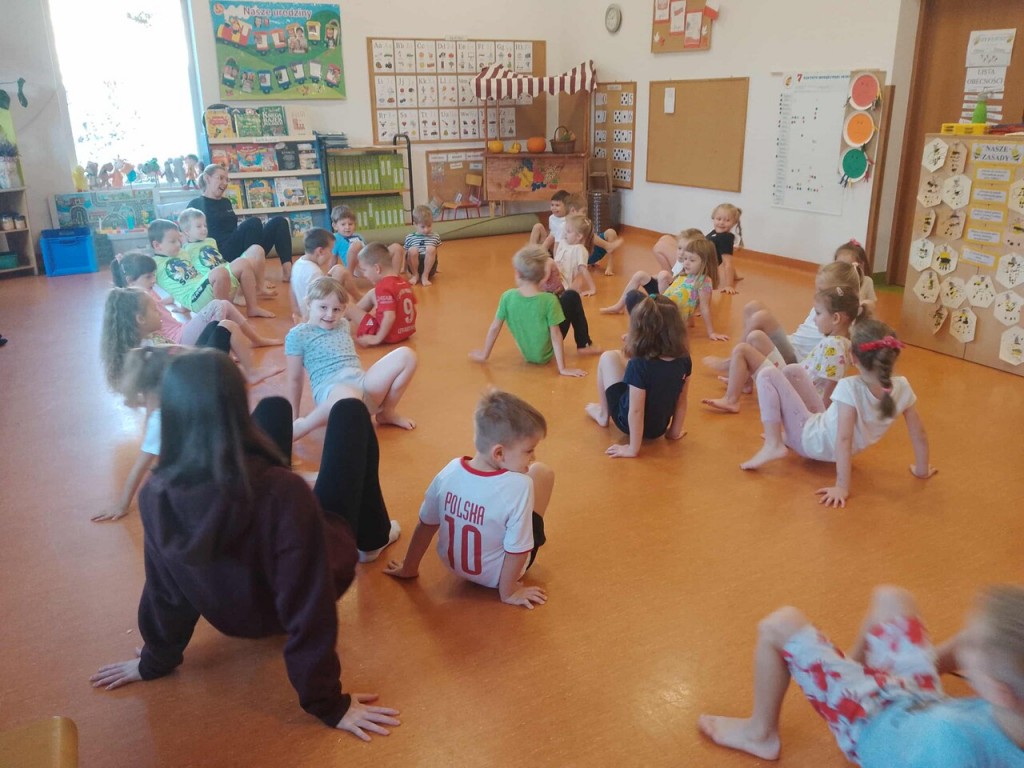 To już kolejny rok przedszkolny, w którym gościmy w naszej sali panią Magdalenę Plandowską, dzięki której ruch i ćwiczenia fizyczne stają się świetną zabawą. Przez ten rok będziemy realizować program pt. „Ciało w ruchu”, którego celem jest kształtowanie zdrowych nawyków i budowanie radości z ruchu już od najmłodszych lat. Poprzez różne zabawy ruchowe i ćwiczenia gimnastyczne uczymy się jak dbać o swoje ciało, kręgosłup i dobre samopoczucie.