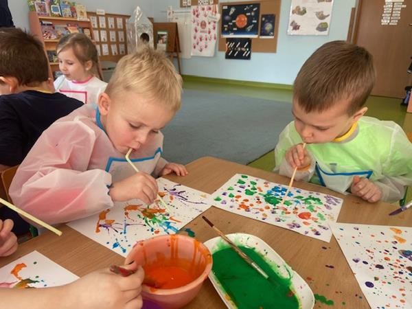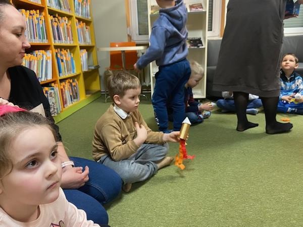 Na to pytanie nasze 5 latki szukały odpowiedzi podczas różnego rodzaju działań, tj. wspólnie wykonały plakat kosmosu, samodzielnie stworzyły stworka - ufoludka, obserwowały eksperymenty pt. start rakiety oraz czy ziemia krąży wokół słońca , zdobyły wiele wiadomości na temat układu słonecznego, a także uczestniczyły w fantastycznych zajęciach o kosmosie w Bibliotece Pedagogicznej. To był naprawdę ciekawy i odkrywczy tydzień.