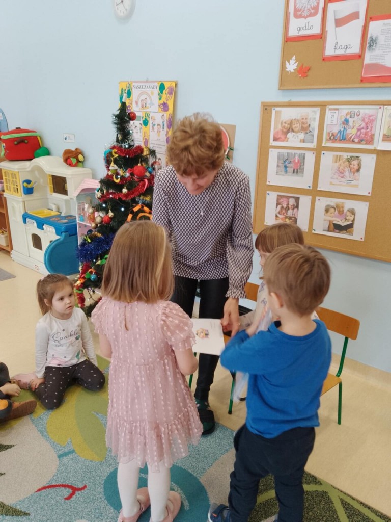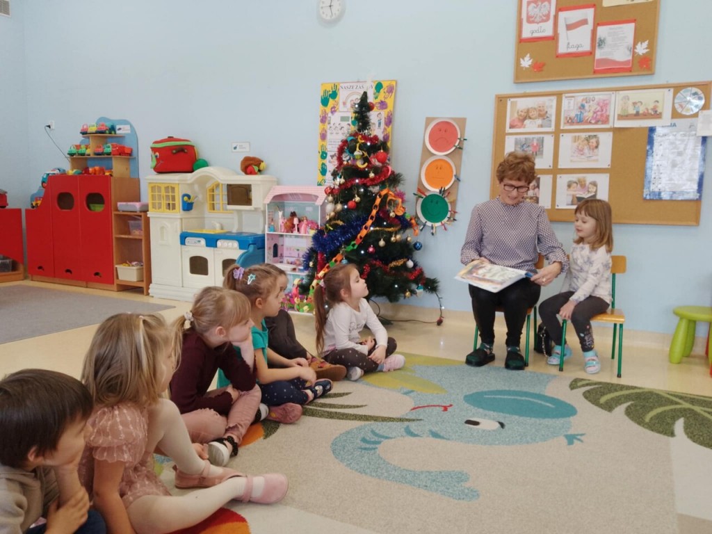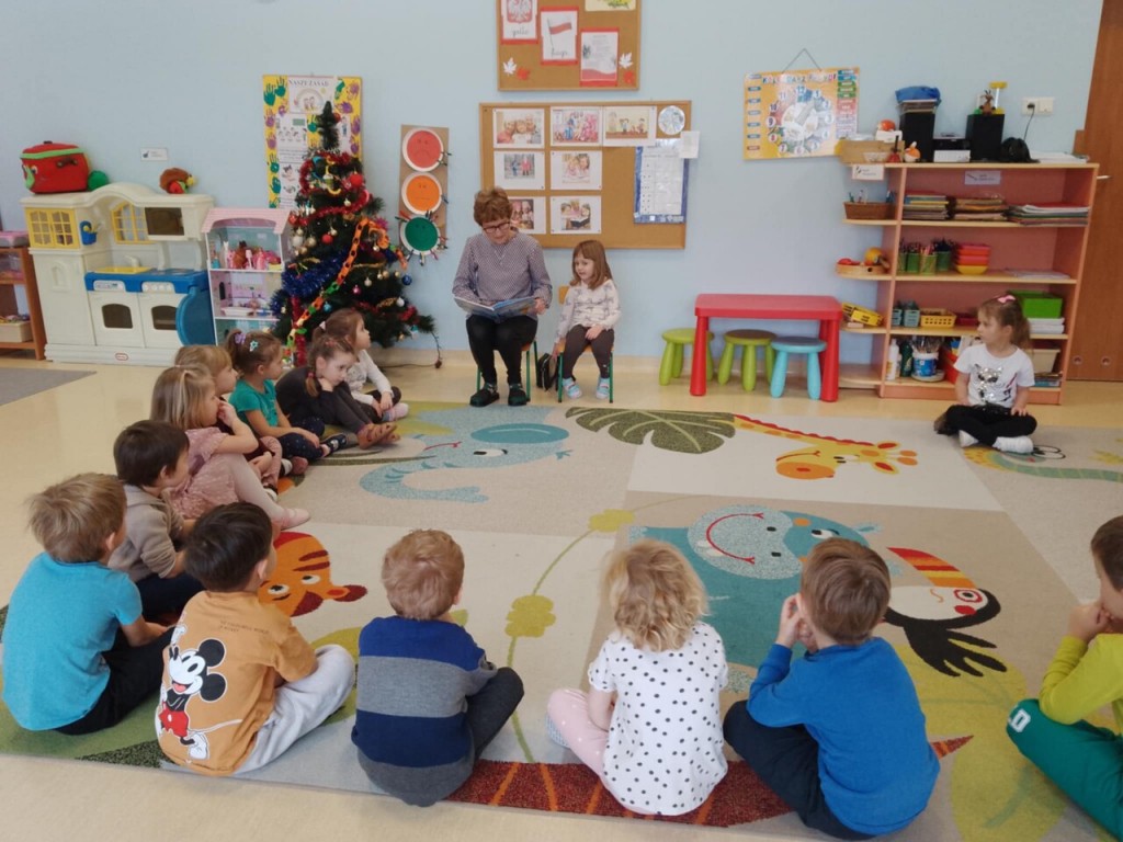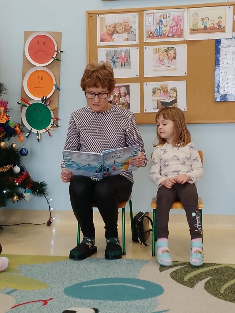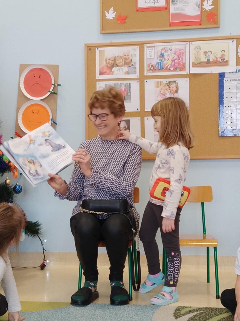 Dnia 15 stycznia gościliśmy niezwykłą osobę w swoich przedszkolnych progach. W ramach realizowanej tematyki pt. „ Babcia moja ukochana.” odwiedziła nas babcia Oliwci- pani Zofia, włączając się w akcję „Cała Polska czyta dzieciom.” Zaprezentowała nam ciekawą opowieść o Kubusiu Puchatku pt. „Pierwszy śnieg”.