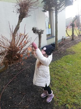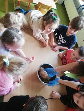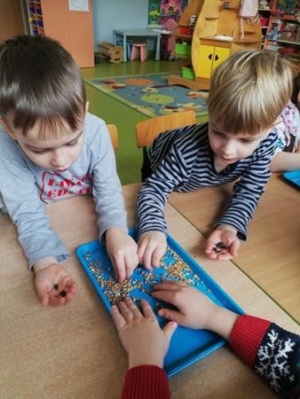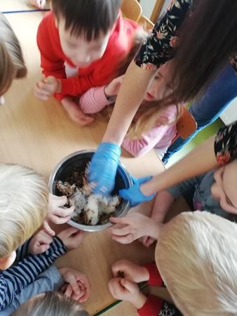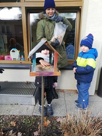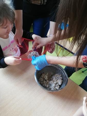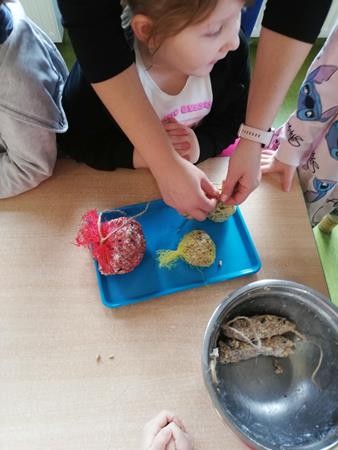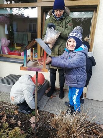 My 5-latki już wiemy, że zima to trudny czas dla ptaków, ze względu na niską temperaturę i trudne warunki pogodowe. W związku z tym ptaki mogą mieć problemy ze znalezieniem odpowiedniej ilości pokarmu. Ale my Tygryski jak zwykle ruszyliśmy z pomocą. Dlatego dbamy o to, żeby w karmnikach umieszczonych na terenie przedszkola nie zabrakło pożywienia dla ptaków i na bieżąco wrzucamy tam różne ziarna. Ogromną radość sprawiło nam również wykonanie smakołyków tłuszczowo-nasiennych. Umieściliśmy je na gałązkach wokół przedszkola i codziennie obserwujemy jak nasi ptasi przyjaciele się zajadają.