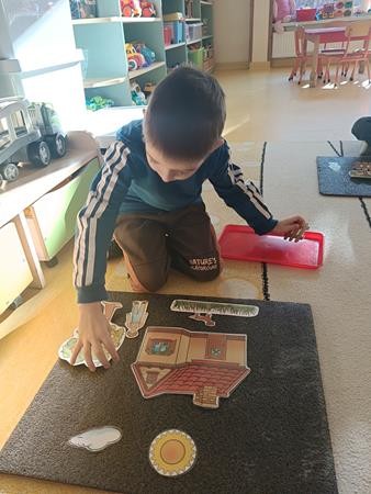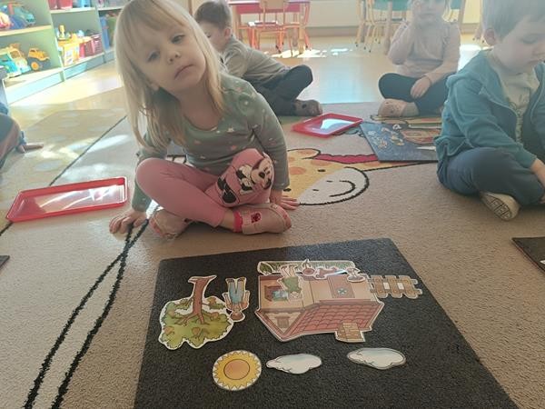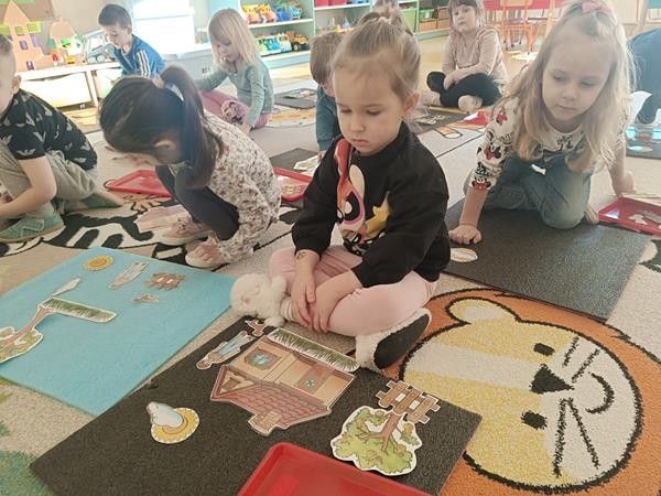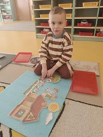 "Układanie obrazków "- zajęcia z zakresu Dziecięcej matematyki według koncepcji prof. Gruszczyk-Kolczyńskiej , były doskonałą okazją do pobudzenia dziecięcej wyobraźni , a także ćwiczenia analizy i syntezy wzrokowej.