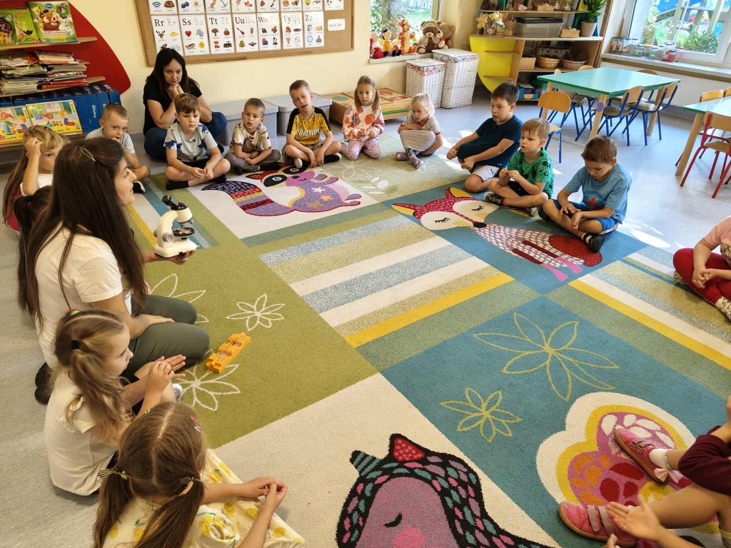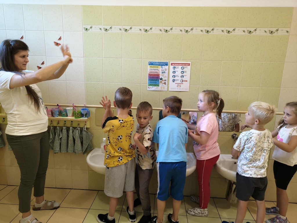 W październiku zrealizowaliśmy projekt edukacyjny „Dzielne dzieciaki i ich sposoby na mikroby” stworzony przez Wojewódzką Stację Sanitarno – Epidemiologiczną w Lublinie. Podczas ciekawych zajęć utrwaliliśmy wiedzę dzieci na temat dbania o własne zdrowie. Dzięki wierszowi pt. „Katar” Jana Brzechwy, poznaliśmy transmisję mikroorganizmów podczas kaszlu i kichania. Podczas zajęć przypomnieliśmy sobie kolejne kroki prawidłowego mycia rąk i uczestniczyliśmy w zabawie muzyczno – ruchowej przy piosence „Mydło wszystko umyje”. Na zakończenie projektu wykonaliśmy z plasteliny bakterie i wirusy. Dzięki tym zajęciom uświadomiliśmy sobie, jak ważne jest dbanie o higienę osobistą i o własne zdrowie.