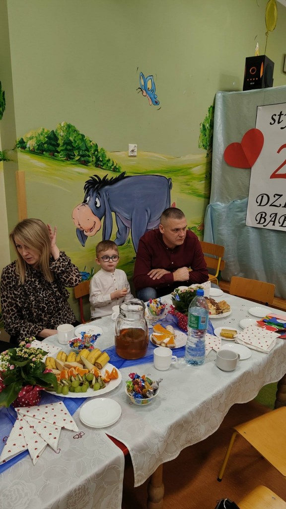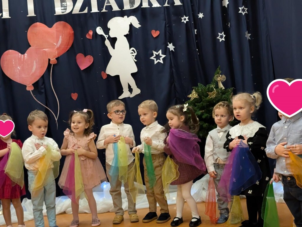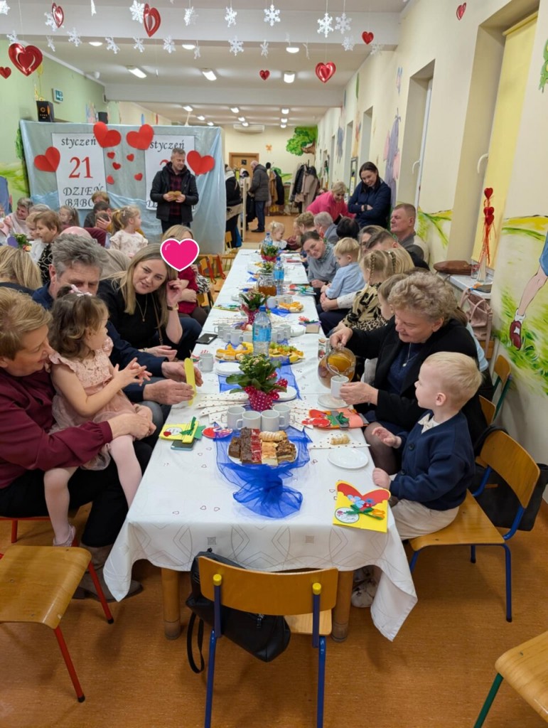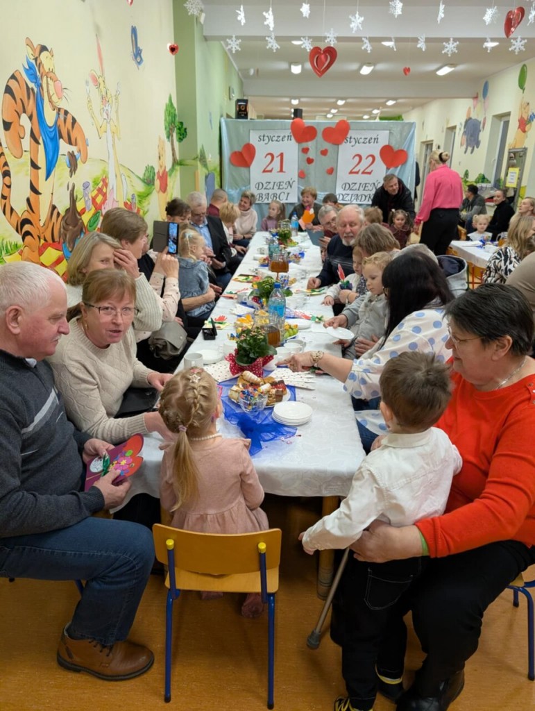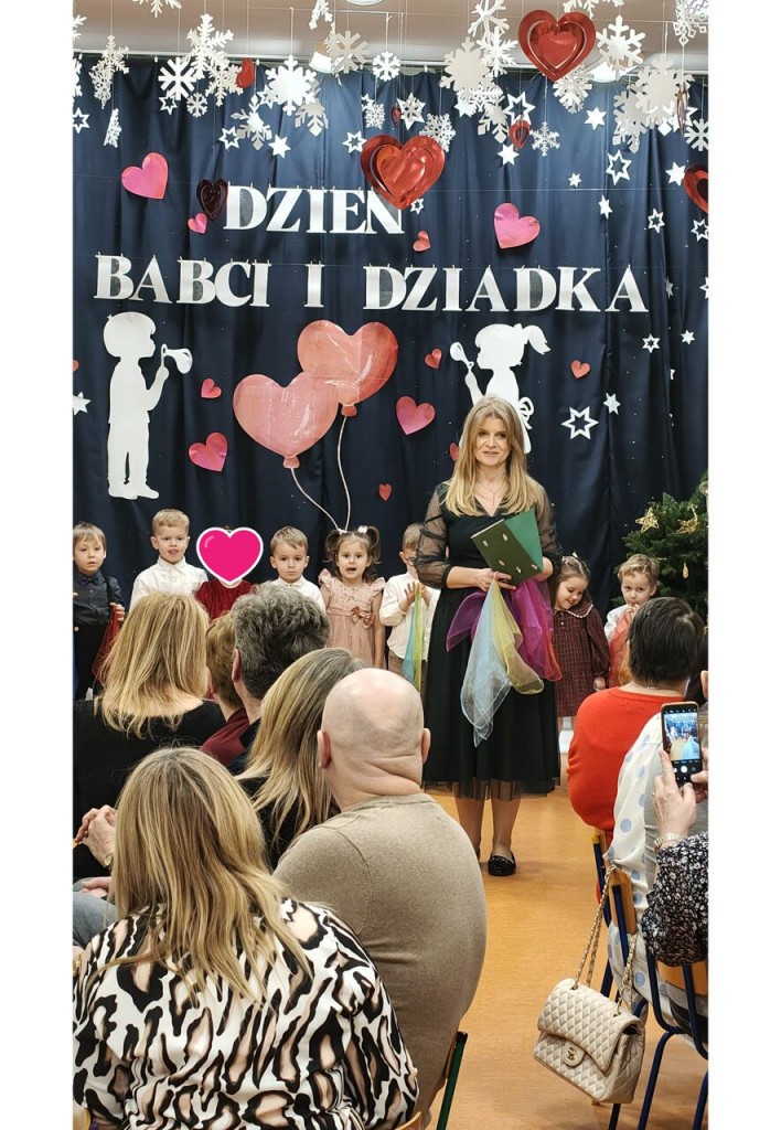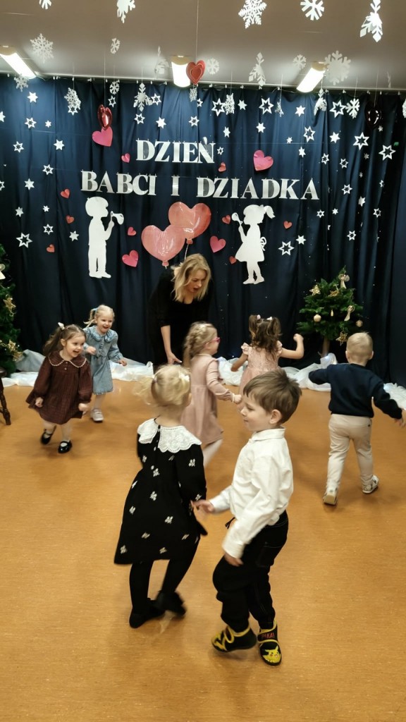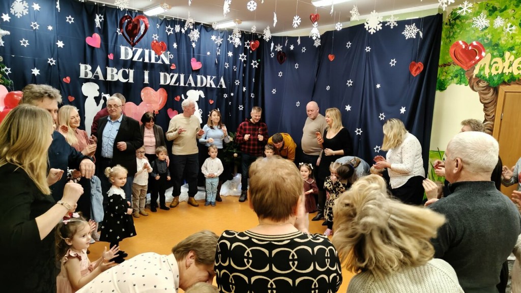 Babcia i Dziadek to słowa, które każdemu dziecku kojarzą się z ciepłem, miłością i wszystkim, co dobre. Dlatego i my 27 stycznia gościliśmy swoje babcie oraz dziadków na uroczystości z tej okazji. W przepięknej scenografii oraz wyjątkowej atmosferze, wystąpiliśmy przed bliskimi, prezentując wiersze, piosenki oraz tańce. Następnie wręczyliśmy naszym gościom samodzielnie przygotowane laurki i zaprosiliśmy na słodki poczęstunek przygotowany przez rodziców.