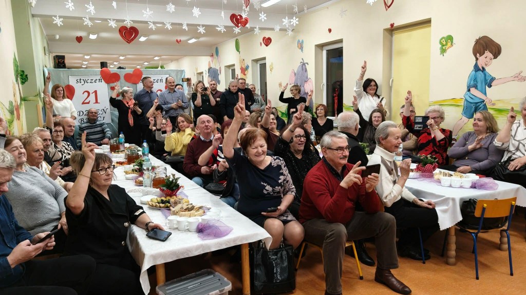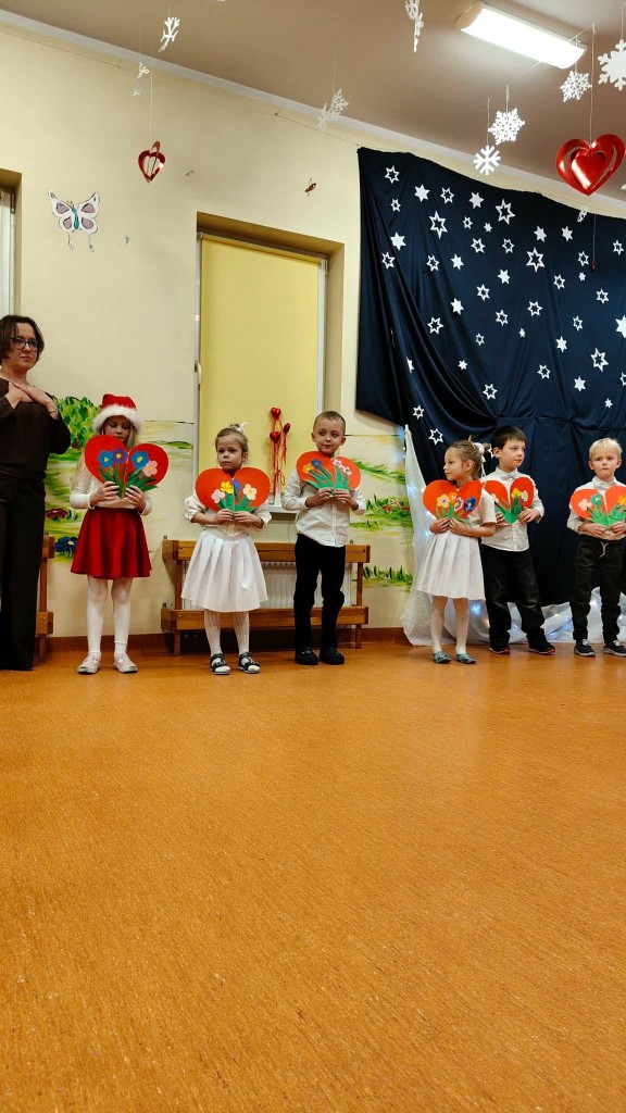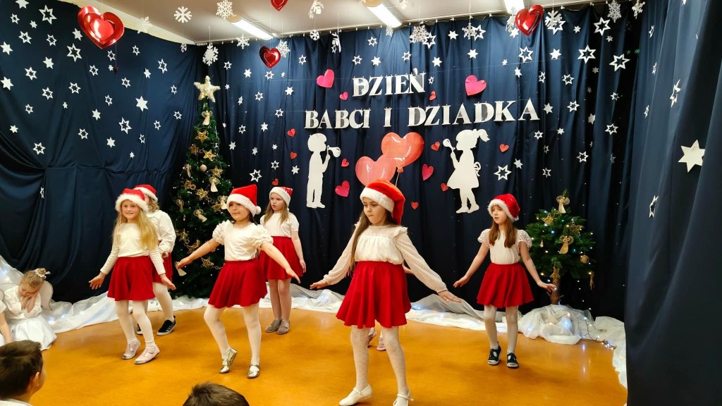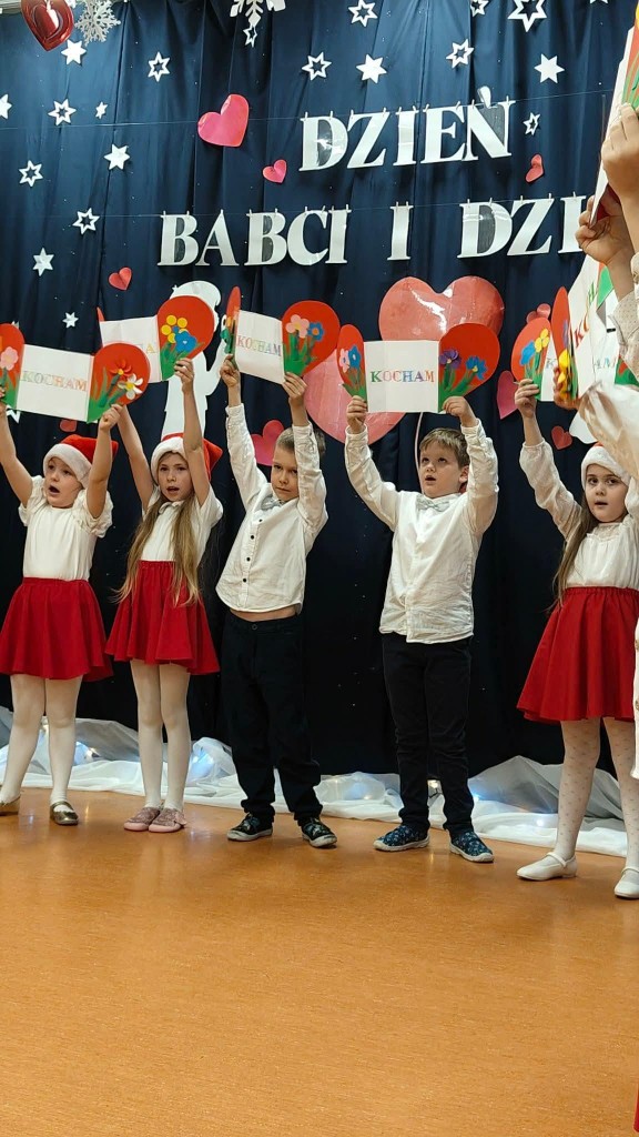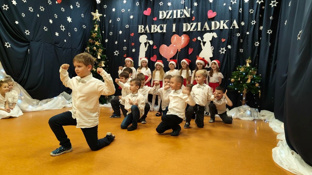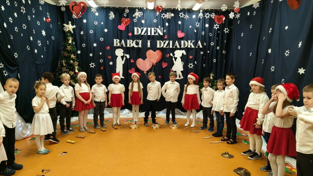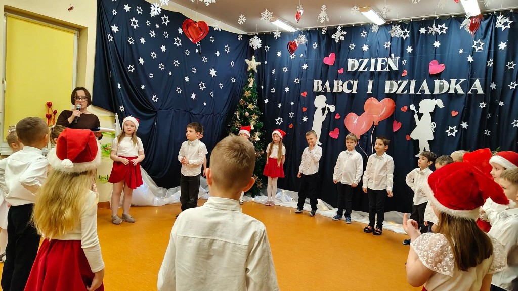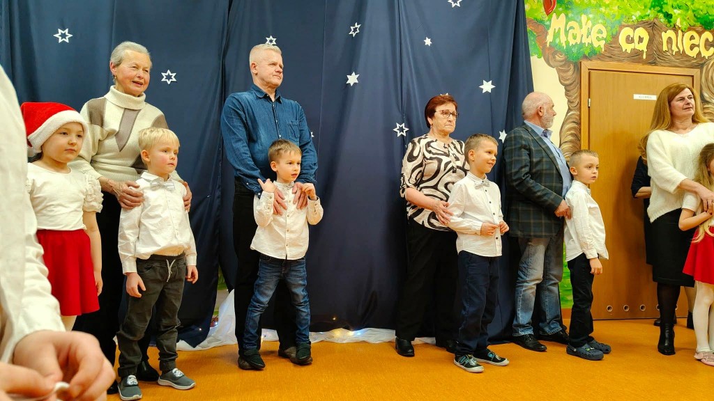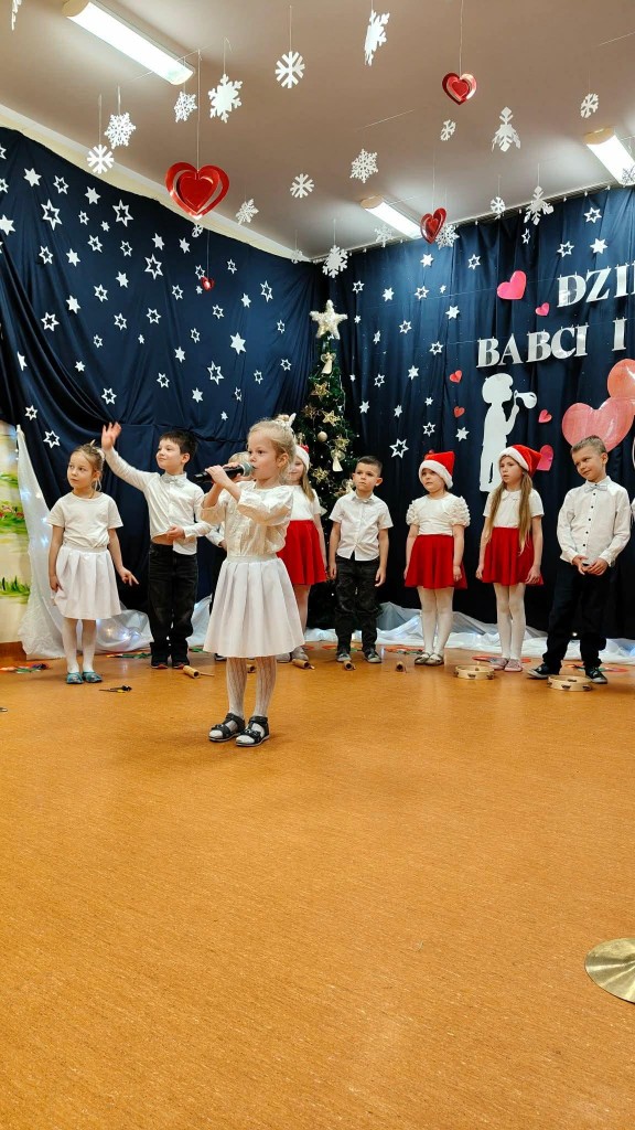 26 stycznia w naszej grupie odbyła się uroczystość z okazji Dnia Babci i Dziadka. Zaproszeni goście mieli okazję podziwiać swoje wnuki w specjalnie dla nich przygotowanym programie artystycznym. Wszyscy z dumą patrzyli na swoje wnuczęta, które włożyły wiele wysiłku w to, aby jak najlepiej wyrazić swoją miłość i szacunek oraz podziękować Dziadkom za cierpliwość, zrozumienie i opiekę, a przede wszystkim za czas, który zawsze mają dla swoich wnuków. Niejednej Babci i Dziadkowi łezka kręciła się w oku, a na ustach można było zobaczyć uśmiech. Publiczność nie żałowała również pochwał dla swoich wnuków i nagrodziła ich gromkimi brawami. Na koniec tych wyjątkowych występów dzieci wręczyły swoim ukochanym Babciom i Dziadkom własnoręcznie przygotowane kubeczki. Zwieńczeniem naszego spotkania był słodki poczęstunek przygotowany przez rodziców oraz wspólne tańce z Dziadkami, którym towarzyszyła radość ze wspólnej zabawy z wnukami.