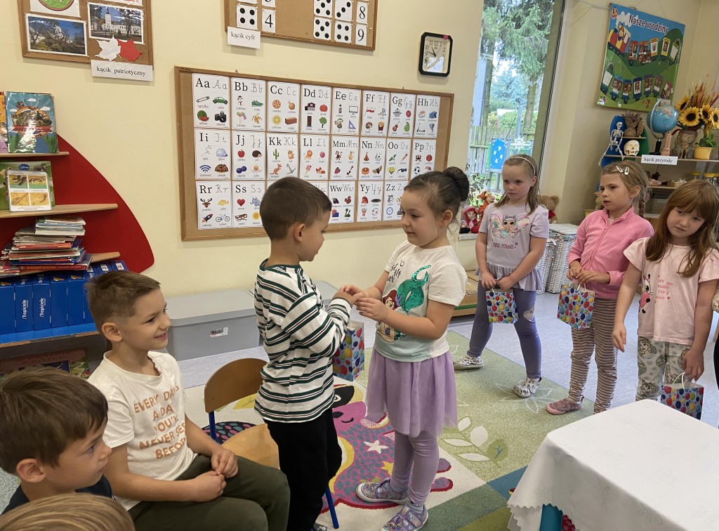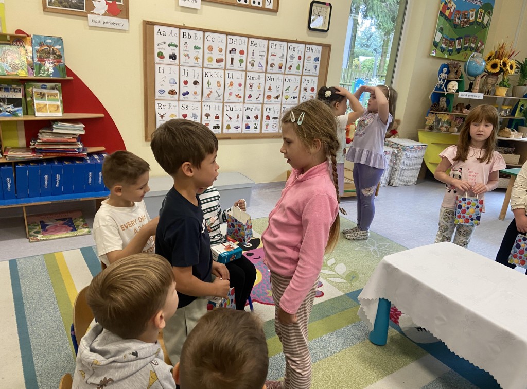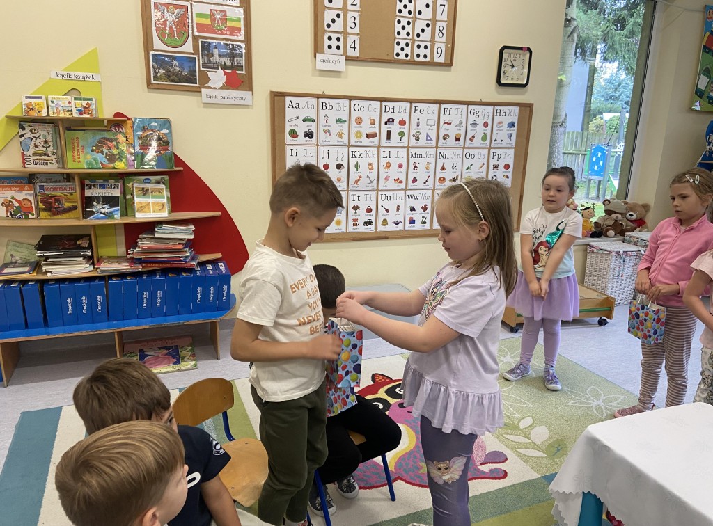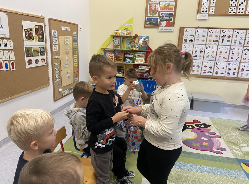 Od najmłodszych lat uczymy dzieci, aby pamiętały o ważnych uroczystościach w życiu rodziny czy życiu przedszkola. Równie ważne jest więc Święto Chłopców, które obchodzimy 30 września. W tym dniu dziewczynki wręczały chłopcom upominki oraz składały życzenia. Nie zabrakło także słodkiego poczęstunku dla wszystkich dzieci.
