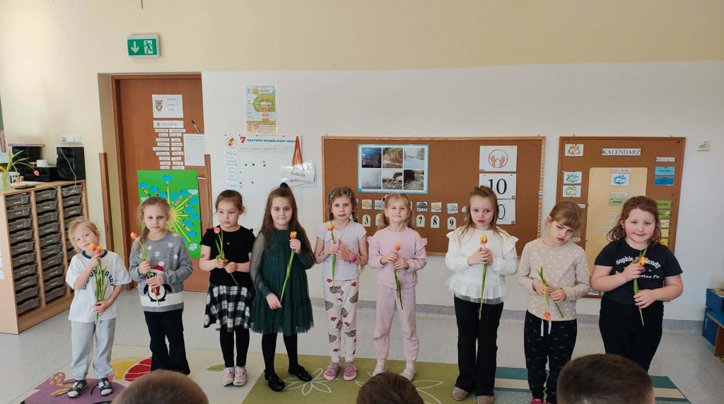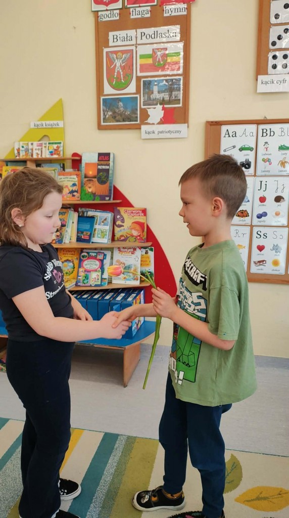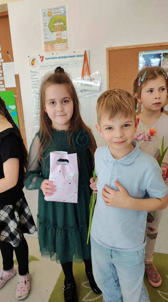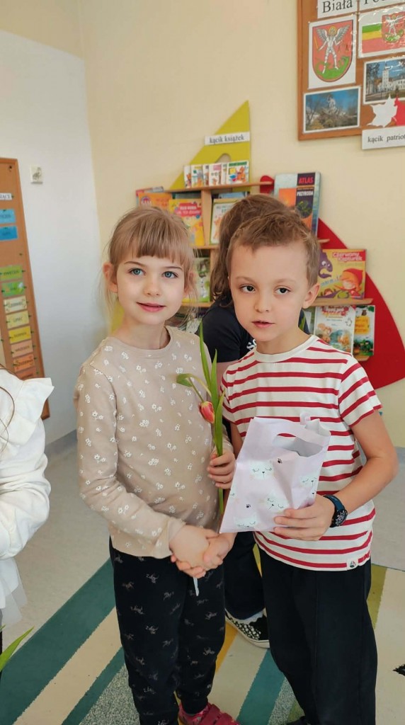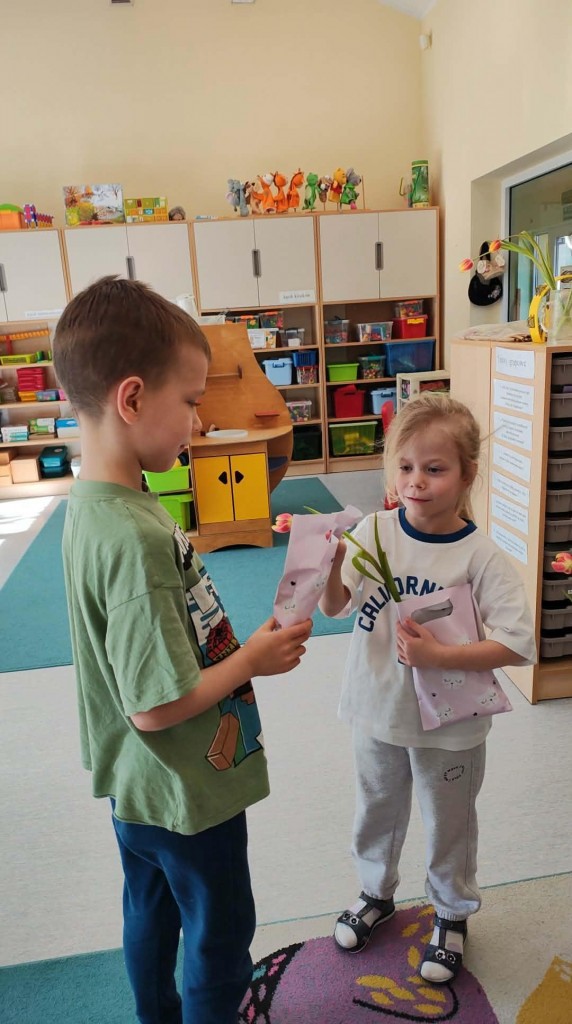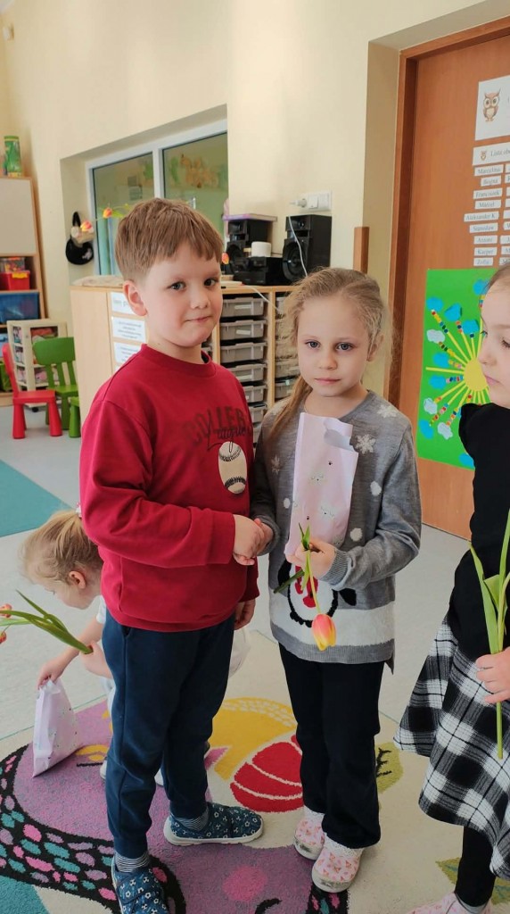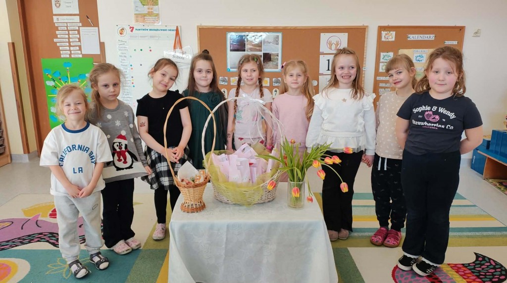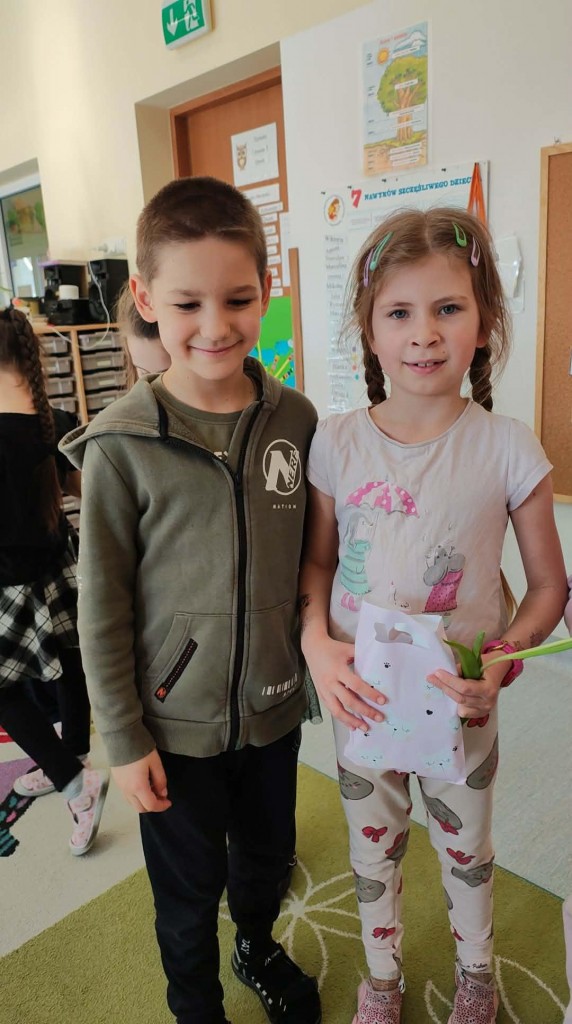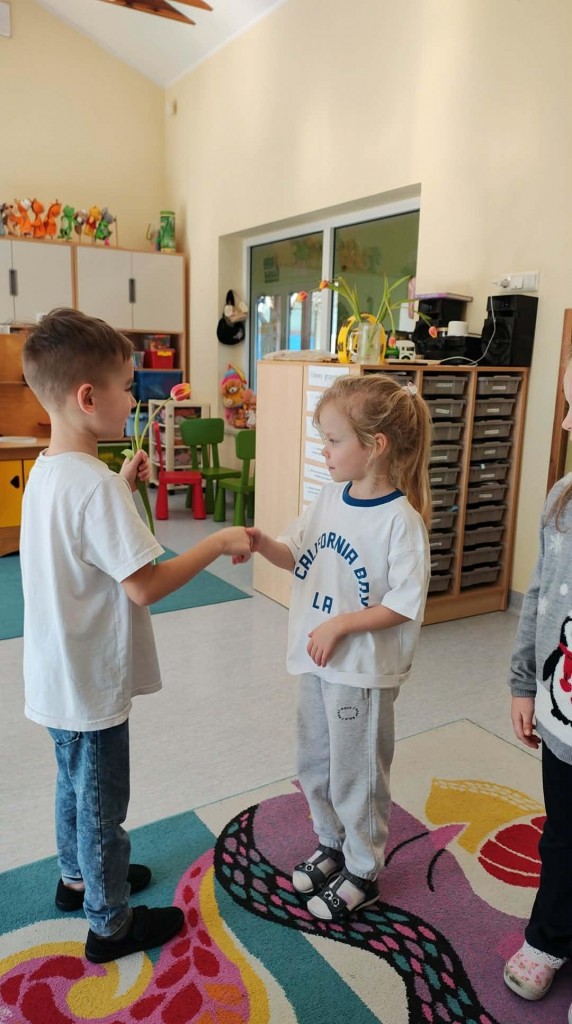 Dzień Kobiet w grupie sześciolatków upłynął w radosnej i serdecznej atmosferze. Chłopcy złożyli dziewczynkom piękne życzenia, a następnie wręczyli im drobne upominki, przygotowane specjalnie na tę okazję. Dzieci celebrowały święto wspólnie, ucząc się okazywania życzliwości, szacunku i wdzięczności. To był pełen uśmiechów, ciepłych gestów i miłych słów dzień, który na długo pozostanie w pamięci grupy.