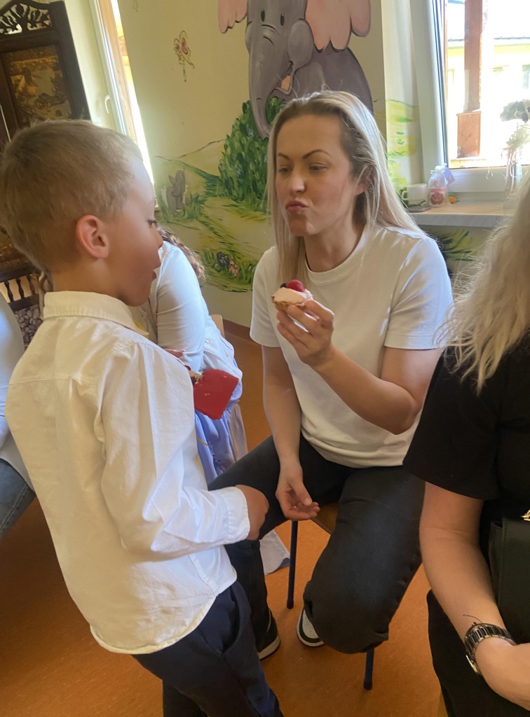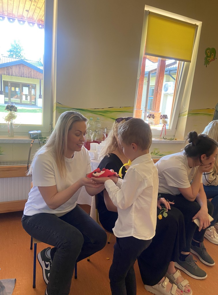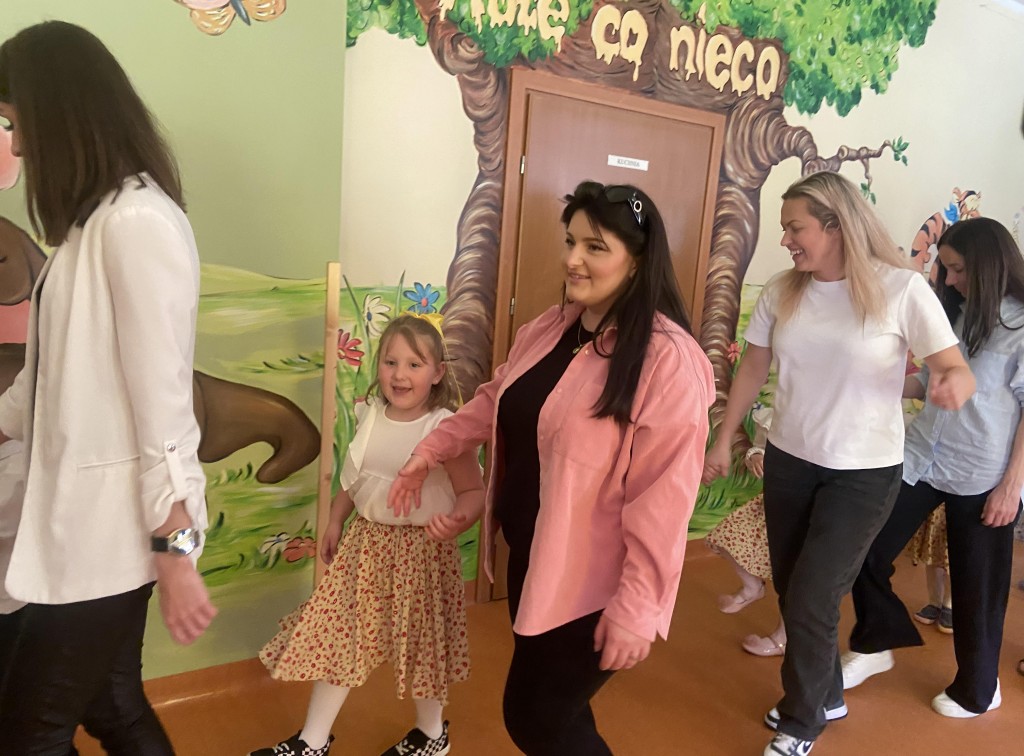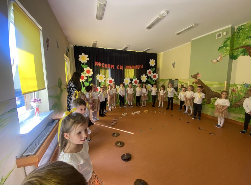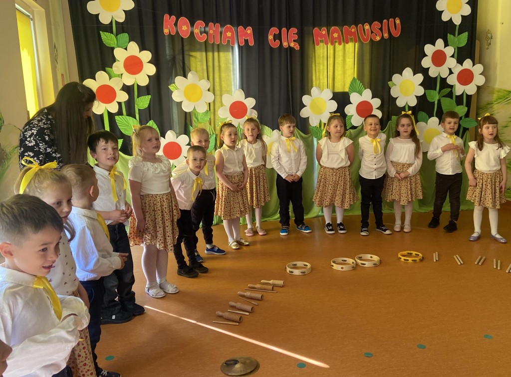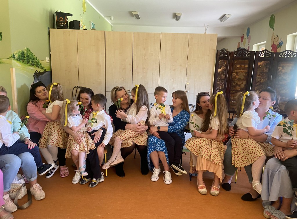 Dzień Mamy jest jednym z najpiękniejszych świąt w roku, pełnym miłych życzeń i prezentów, będących wyrazem miłości i szacunku. My także postanowiliśmy w szczególny sposób uczcić to święto, dlatego też 26 maja świętowaliśmy je wspólnie z mamusiami. Na początku przedstawiliśmy nasz program artystyczny z okazji ich święta. Następnie zaprosiliśmy wszystkich do wspólnego tańca. "Belgijka" - to energiczny i skoczny taniec, przy którym świetnie się bawiliśmy. Zabawa "Czyja to mama?" dla wielu okazała się zaskakująca. Panie czytały informacje na temat mam, które spisały na podstawie naszych opowieści. Podczas tej zabawy było wiele śmiechu, radości, przytulasków i całusków. Wspólnie spędziliśmy wspaniałe chwile, które na pewno na długo pozostaną w naszej pamięci.