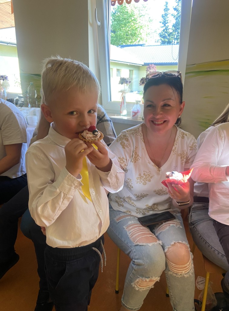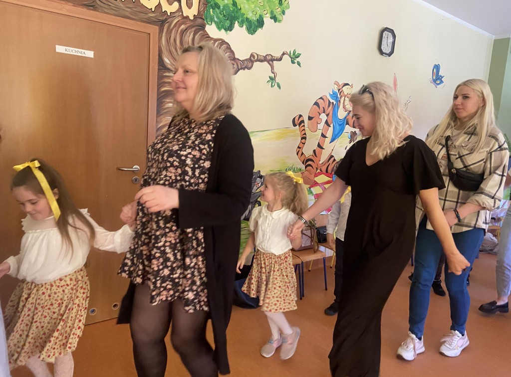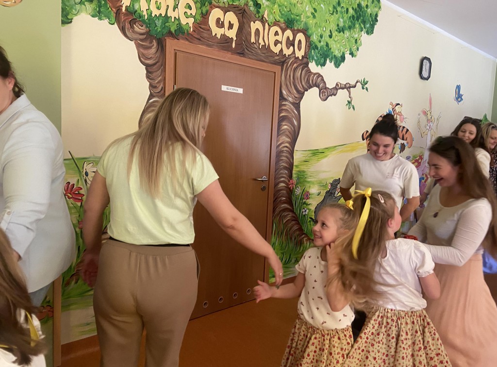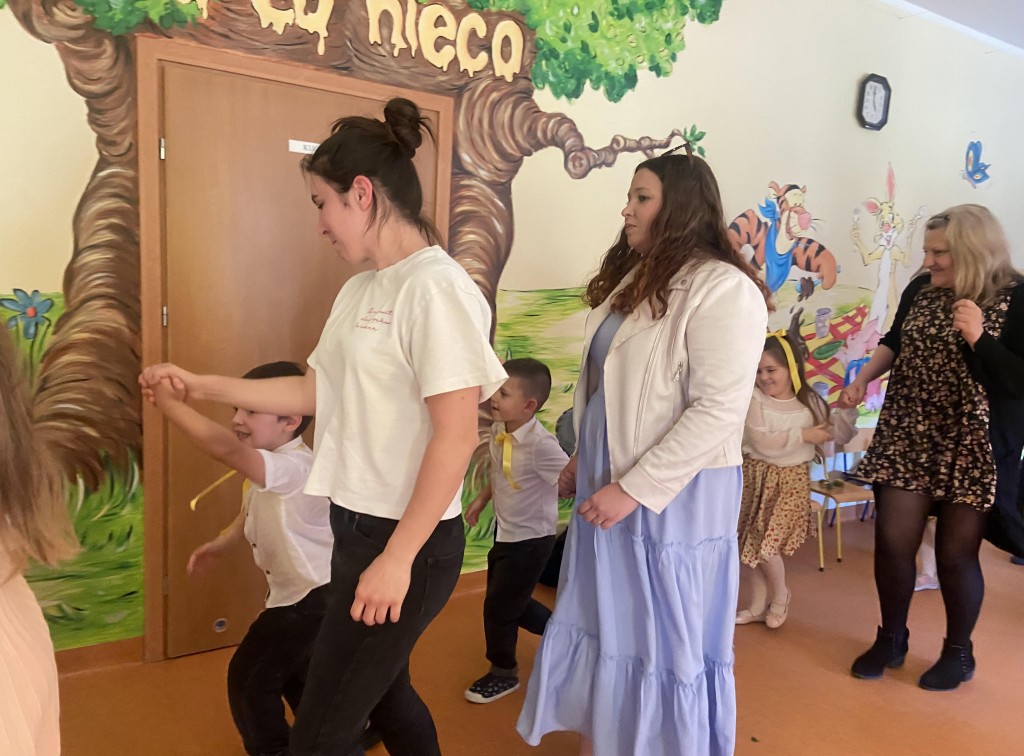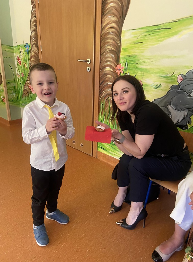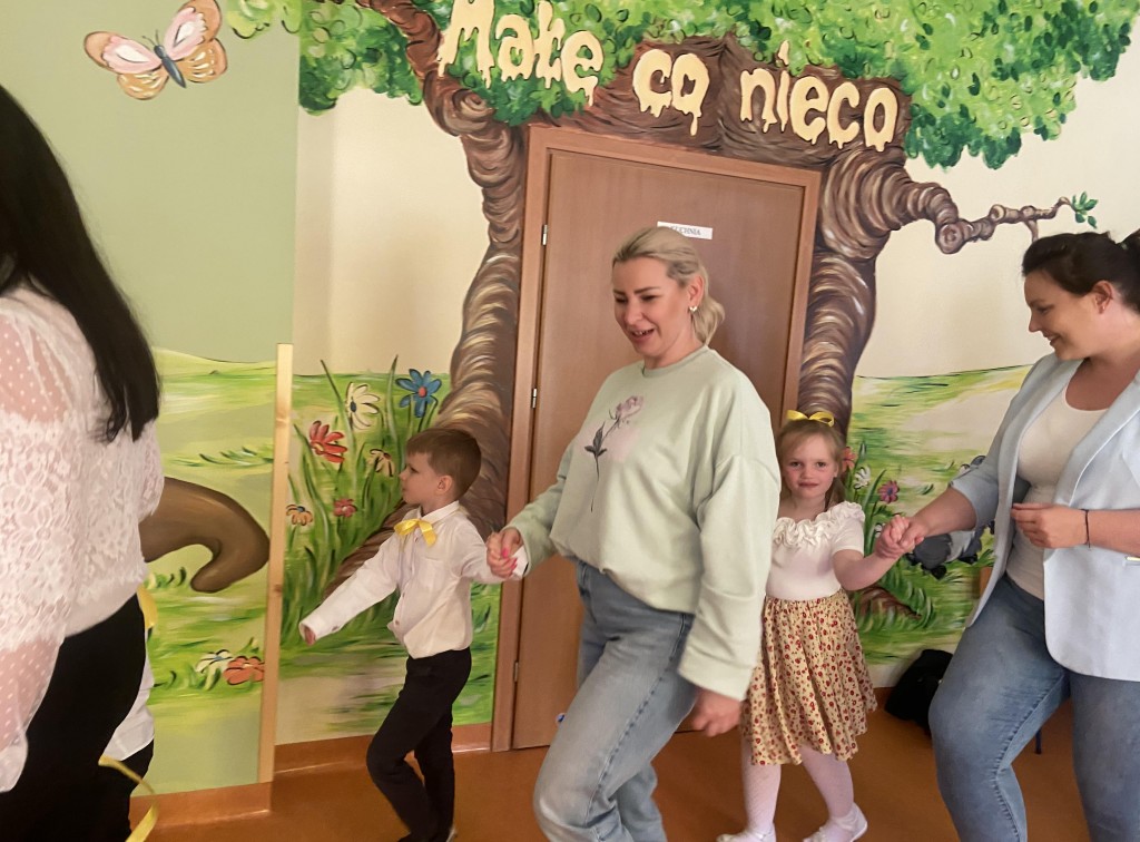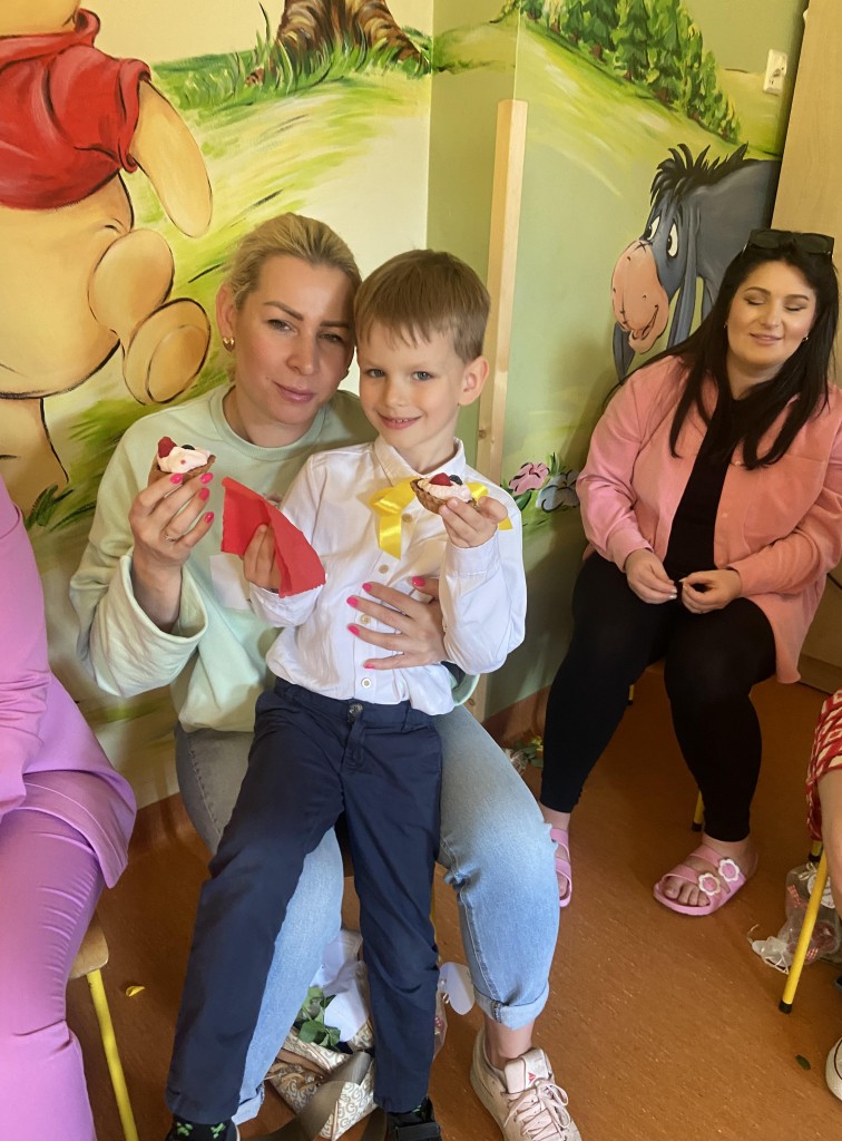 Dzień Mamy jest jednym z najpiękniejszych świąt w roku, pełnym miłych życzeń i prezentów, będących wyrazem miłości i szacunku. My także postanowiliśmy w szczególny sposób uczcić to święto, dlatego też 26 maja świętowaliśmy je wspólnie z mamusiami. Na początku przedstawiliśmy nasz program artystyczny z okazji ich święta. Następnie zaprosiliśmy wszystkich do wspólnego tańca. "Belgijka" - to energiczny i skoczny taniec, przy którym świetnie się bawiliśmy. Zabawa "Czyja to mama?" dla wielu okazała się zaskakująca. Panie czytały informacje na temat mam, które spisały na podstawie naszych opowieści. Podczas tej zabawy było wiele śmiechu, radości, przytulasków i całusków. Wspólnie spędziliśmy wspaniałe chwile, które na pewno na długo pozostaną w naszej pamięci.