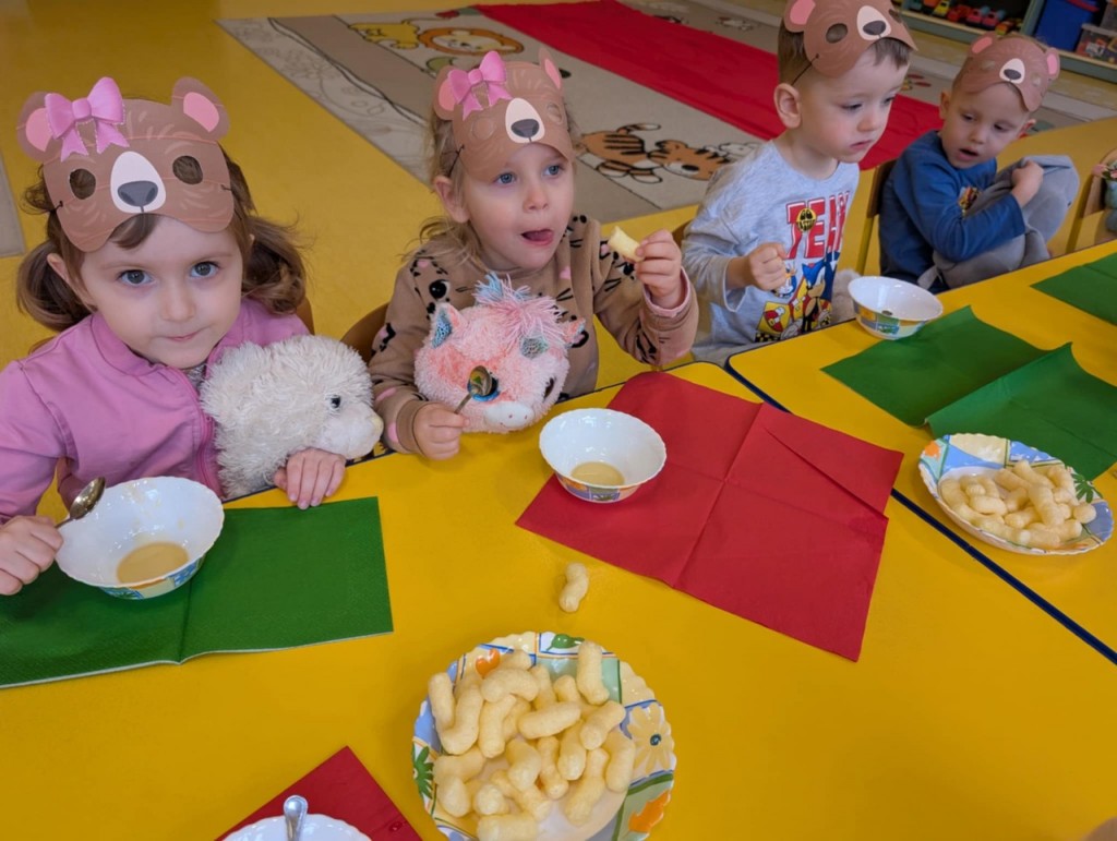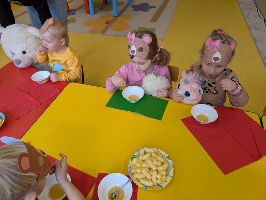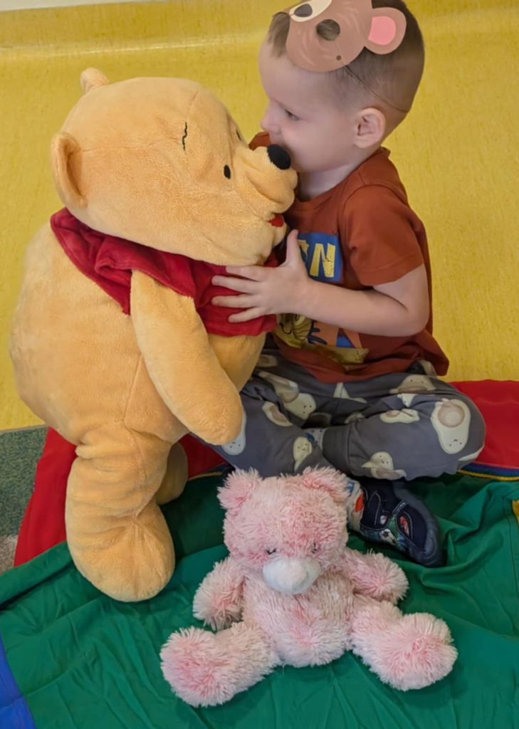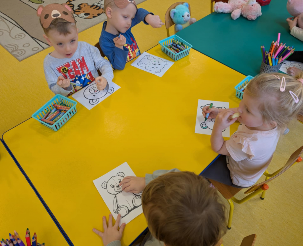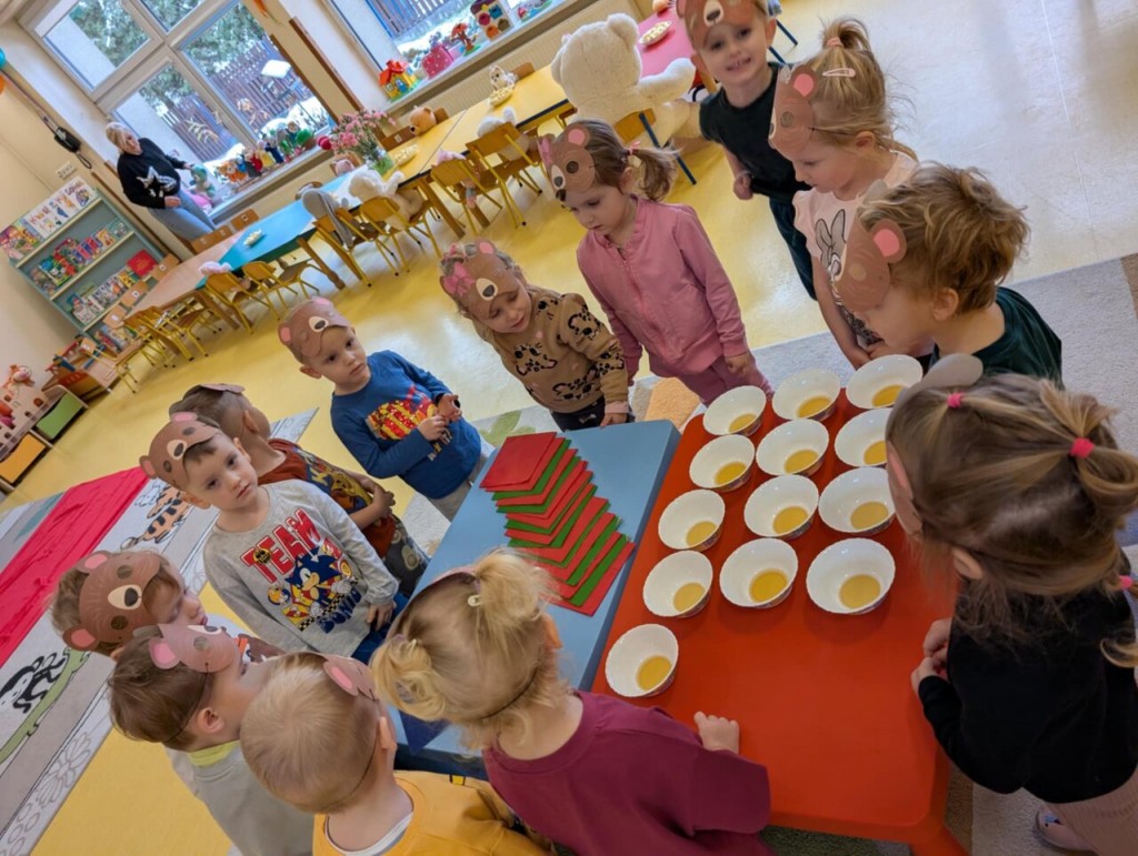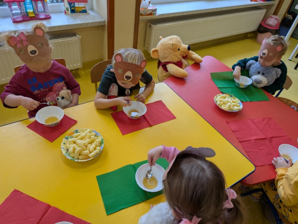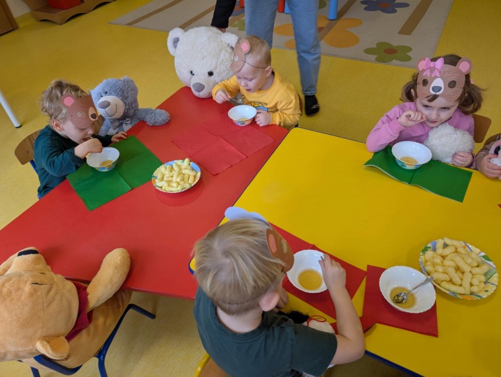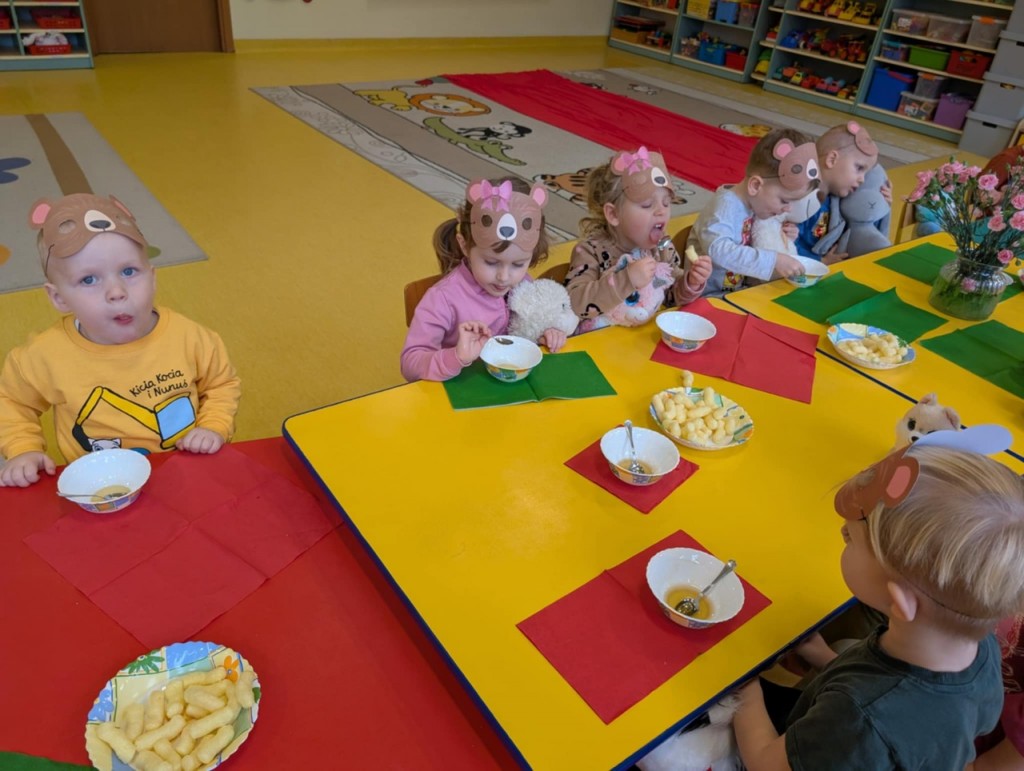Dnia 25 listopada swoje święto obchodzi najmilsza zabawka, najlepszy przyjaciel dzieci i niezastąpiona przytulanka przy zasypianiu – Pluszowy Miś. W naszej grupie Święto Pluszowego Misia obchodziliśmy bardzo szczególnie. Tego dnia każdy przyniósł do przedszkola swojego pluszowego przyjaciela a naszą uroczystość zaczęliśmy od przywitania ulubionego misia – Kubusia Puchatka, który przybył do nas z niespodzianką. Był przemarsz i prezentacja misiów na czerwonym dywanie, zabawy ze śpiewem a na koniec degustacja misiowego przysmaku – miodu. Spotkanie z misiami było również inspiracją naszych działań plastycznych. To wielkie, misiowe przyjęcie zostanie w naszych wspomnieniach na długi czas.