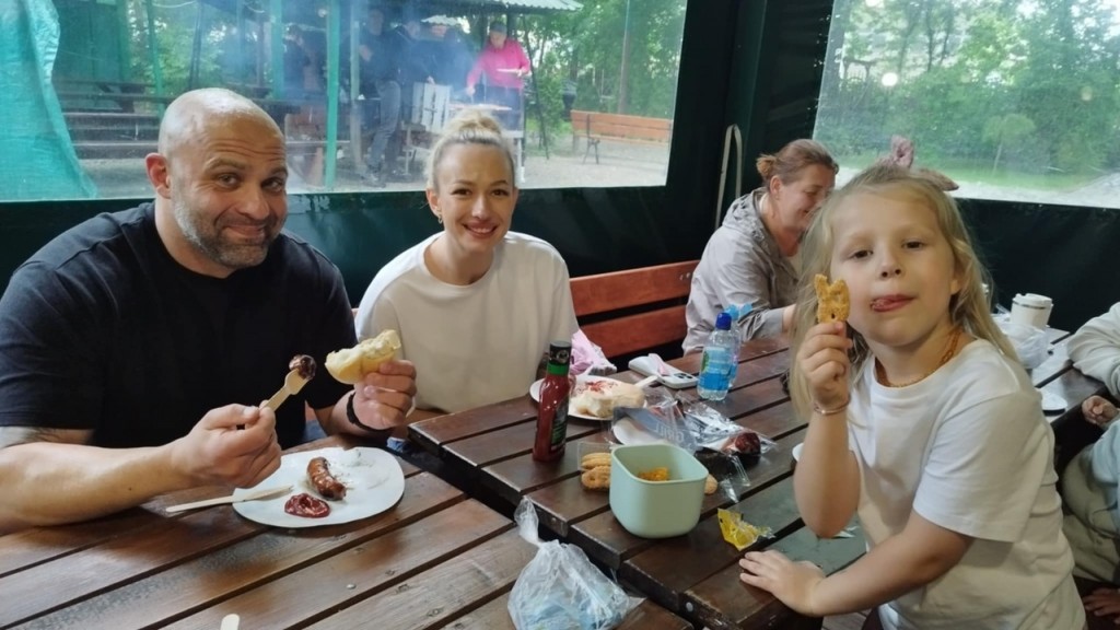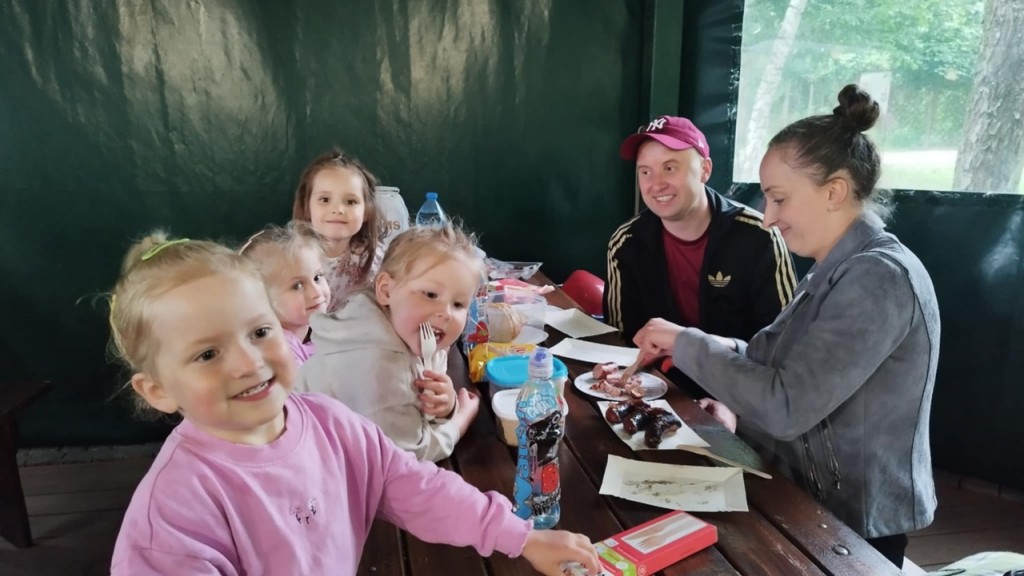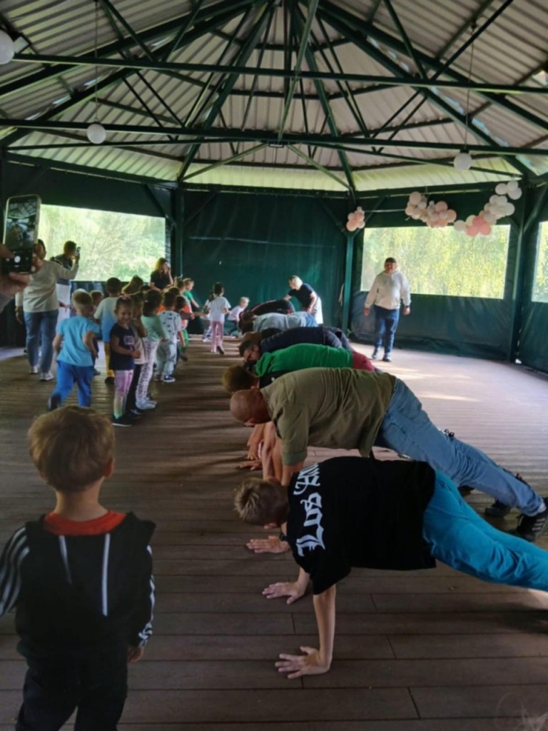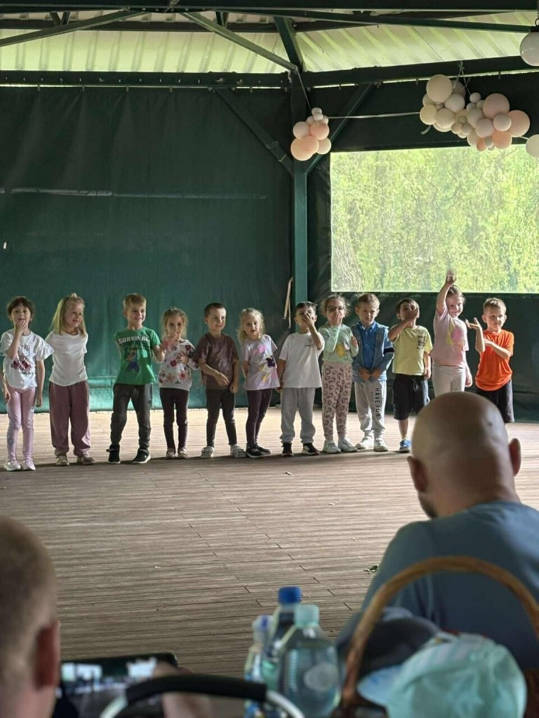 Dzień Rodziny w tym roku świętowaliśmy w Wod- Kanie w Białej Podlaskiej. Naszą uroczystość rozpoczęliśmy od występu artystycznego, w którym nie zabrakło słów pełnych miłości, wdzięczności dla naszych rodziców. A ponieważ to uroczystość mamy i taty przygotowaliśmy dla nich prezenty- magnesy w kształcie serca ze zdjęciem. Po naszym występie zaprosiliśmy naszych rodziców do wspólnej zabawy. Mamusie były hipopotamami a tatusiowe lwami a my tworzyliśmy karawanę…ale było wesoło! Bawiliśmy się również w „twierdzę”- nasi rodzice stworzyli szczelne koło a my byliśmy w środku i oczywiście musieliśmy się jakoś z tej twierdzy wydostać…sposobów było kilka. Nasi tatusiowe pokazali jak bardzo są silni w zabawie „tunel”. No i oczywiście rysowaliśmy portret rodziców… paluszkiem po ich twarzy. Po wspólnych zabawach przyszedł czas na pyszne kiełbaski, zwiedzanie i zabawy przy muzyce. To był wyjątkowy czas pełen radości, dobrego humoru, miłości i wzruszeń.