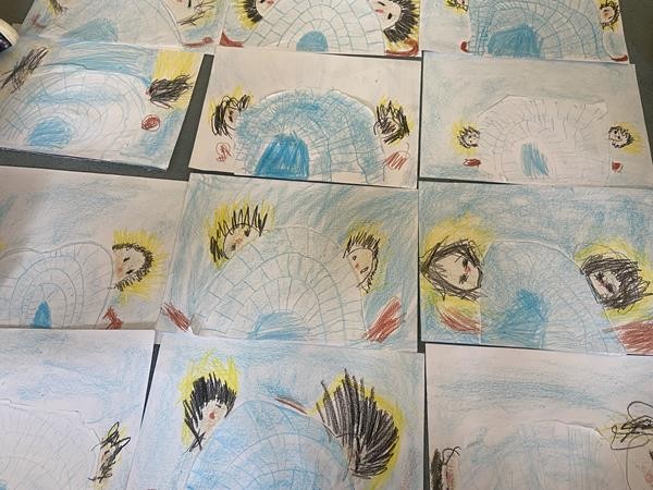 W ramach realizacji tematyki dotyczącej "Mieszkańców lodowej krainy" stworzyliśmy wioskę Eskimosów wg systemu Doroty Dziamskiej Edukacja przez ruch. Wyzwoliło to w nas moc ekspresji twórczej.