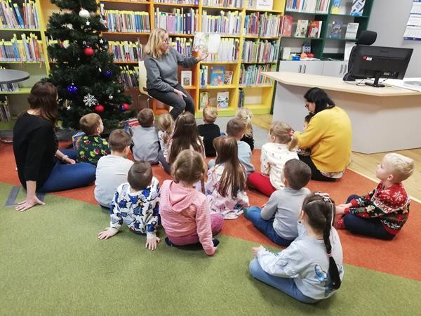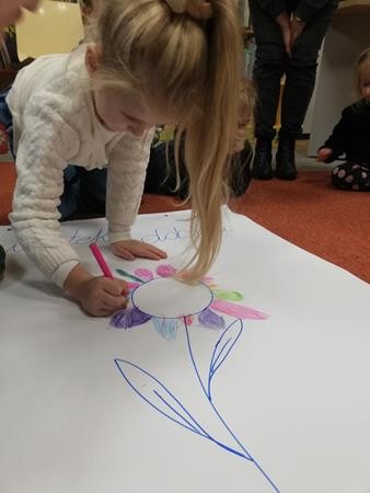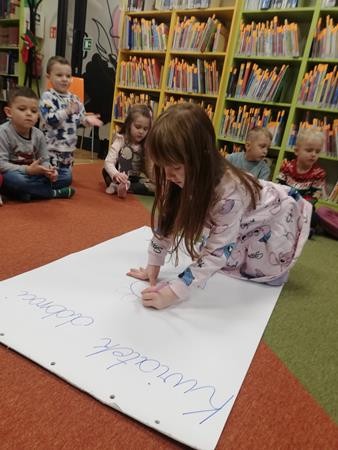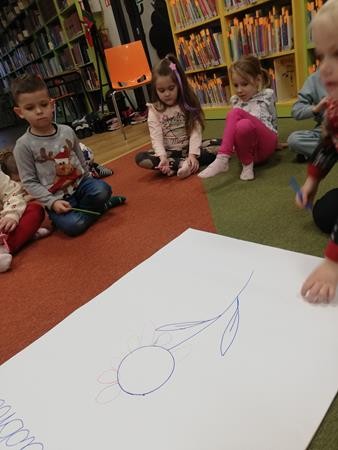 Na grudniowych zajęciach w Bibliotece Pedagogicznej zostaliśmy wprowadzeni w świat wartości. O tym „Gdzie szukać dobroci?” dowiedzieliśmy się od Maksa, bohatera opowiadania Katarzyny Zychla. Okazało się, że świetnie potrafimy odróżnić dobre zachowania od złych. Narysowaliśmy wspólnie piękny kolorowy kwiat, złożony z samych dobrych uczynków przez nas spełnionych. Rozumiemy już, że warto pomagać innym z dobroci serca, bezinteresownie. Bardzo dziękujemy Pani Bibliotekarce za przygotowanie tak pouczającego spotkania.