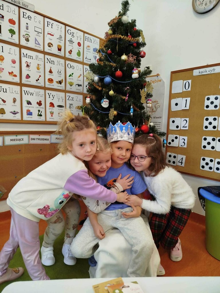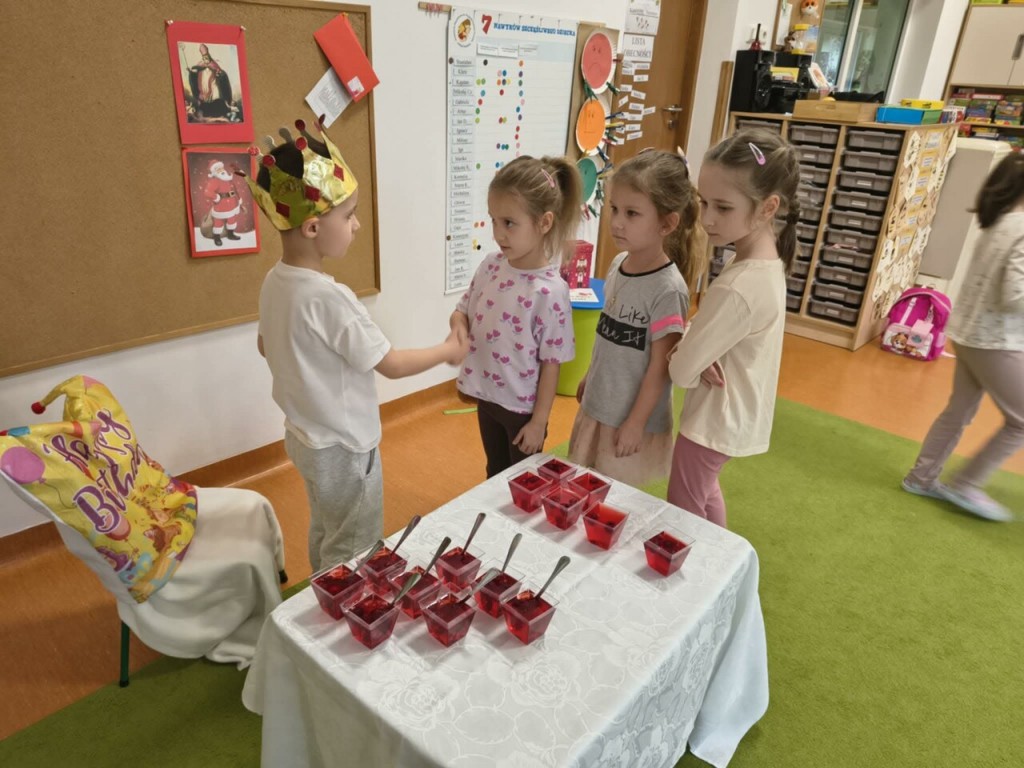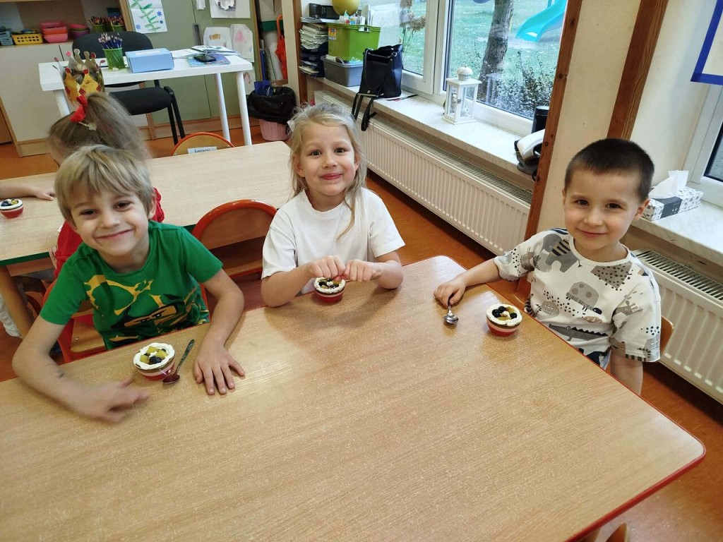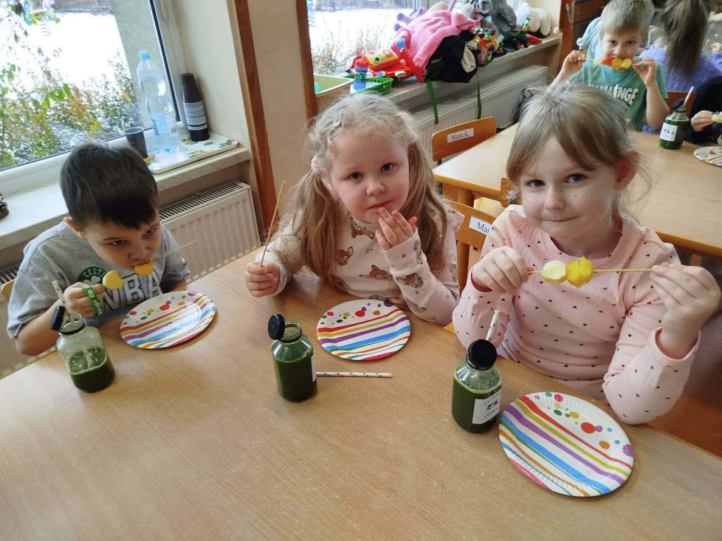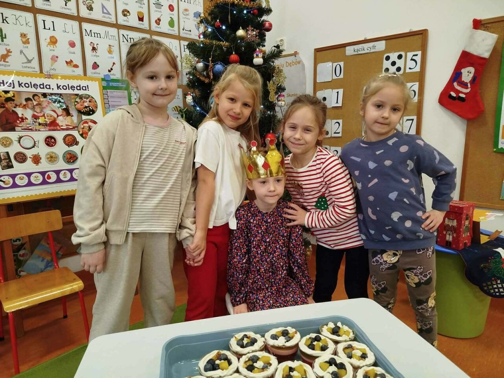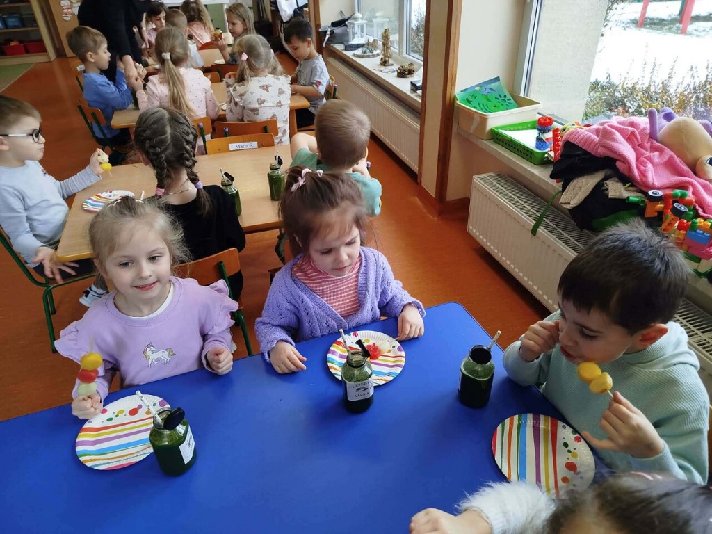 W naszej grupie w grudniu świętowaliśmy piąte urodziny Gai, Stasia i Leosia. Był to wyjątkowy czas pełen radości oraz wspólnej zabawy. Zamiast tradycyjnych słodyczy pojawiły się zdrowe przekąski przygotowane z myślą o właściwym odżywianiu. Nie zabrakło także urodzinowych życzeń, śpiewania „Sto lat” oraz starannie wykonanych pamiątkowych albumów.