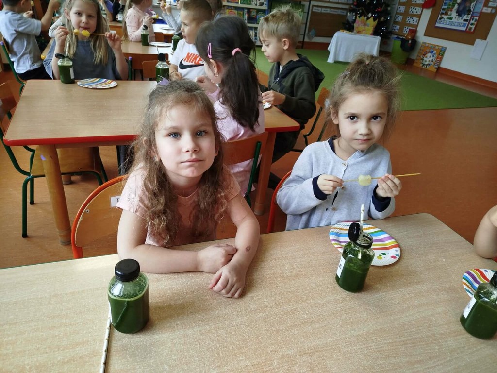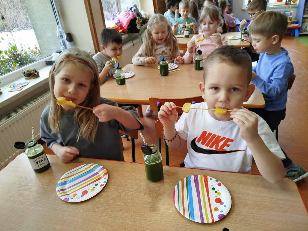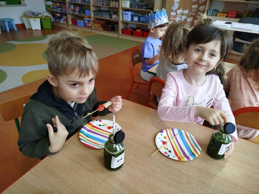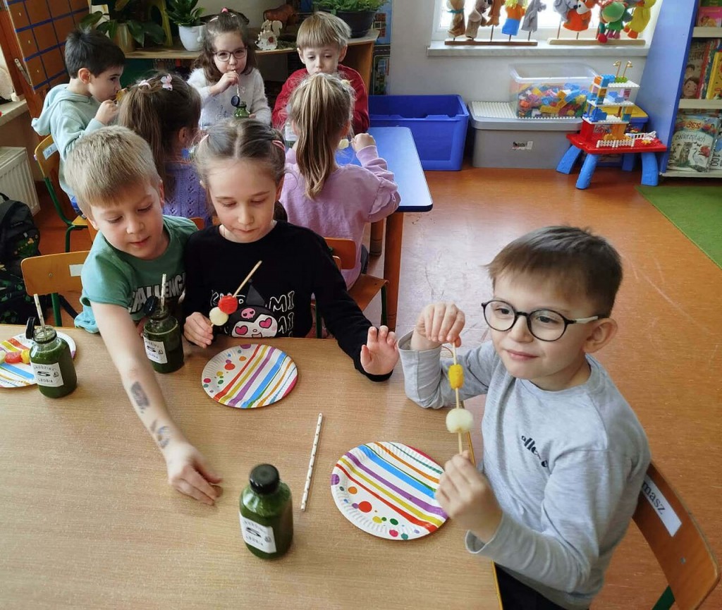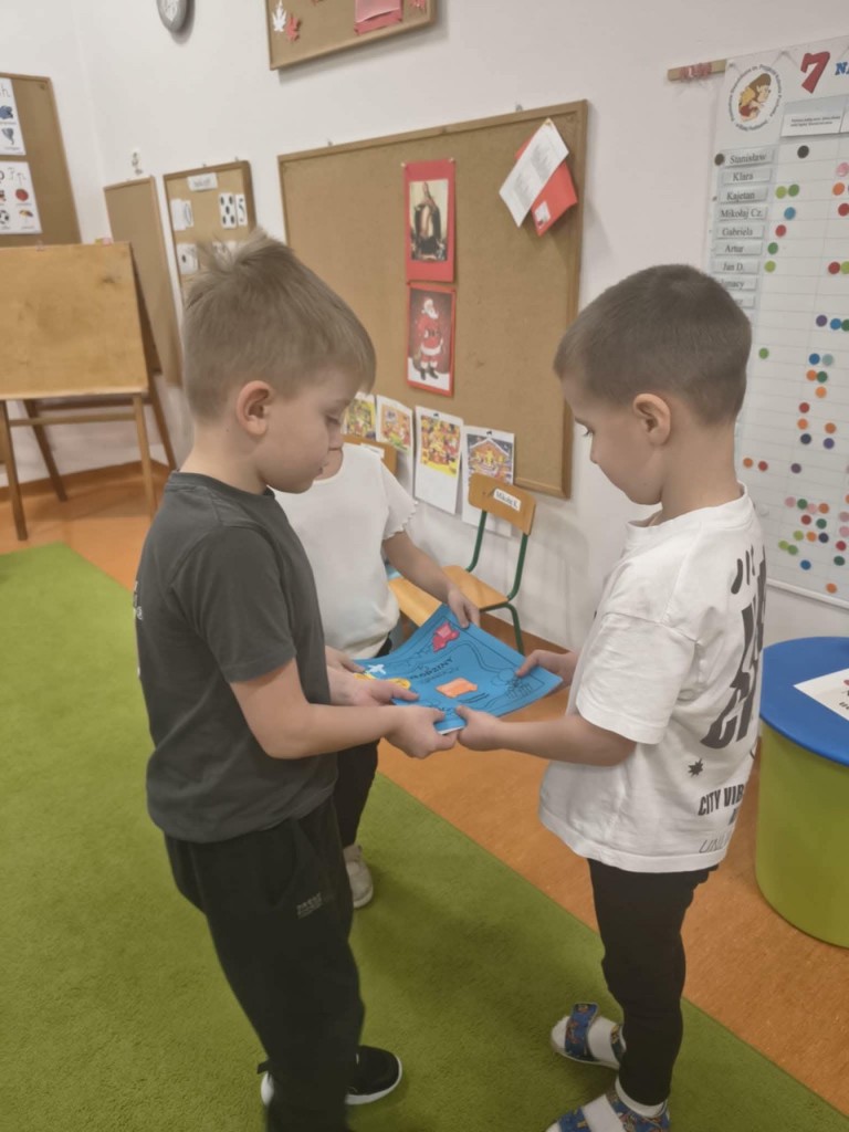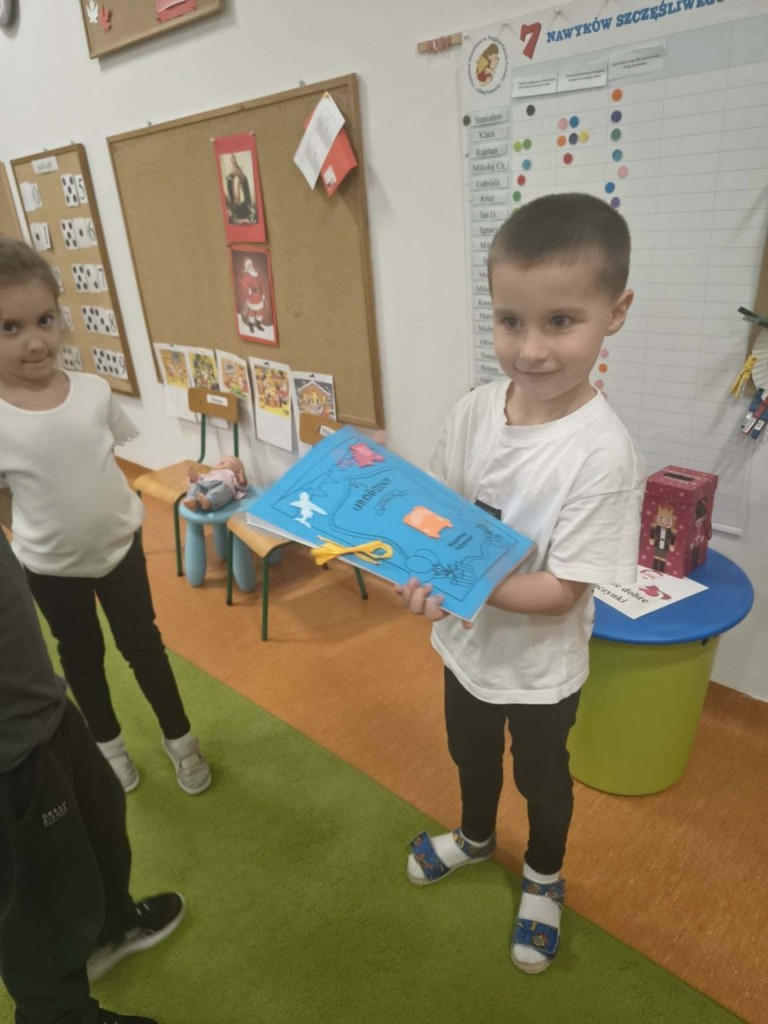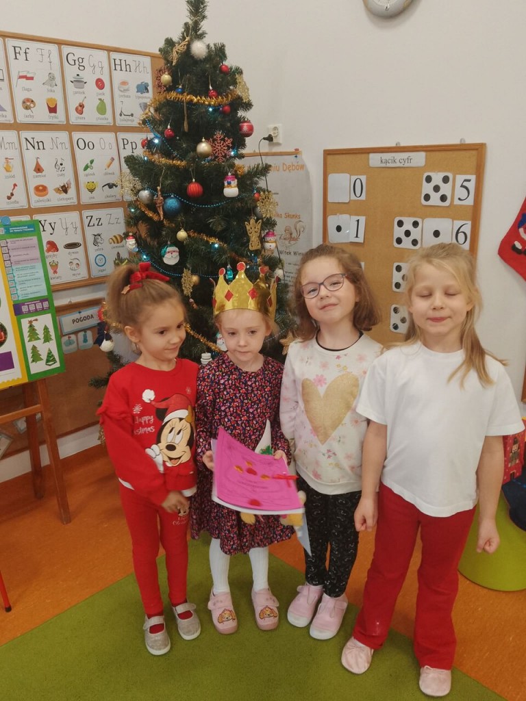 W naszej grupie w grudniu świętowaliśmy piąte urodziny Gai, Stasia i Leosia. Był to wyjątkowy czas pełen radości oraz wspólnej zabawy. Zamiast tradycyjnych słodyczy pojawiły się zdrowe przekąski przygotowane z myślą o właściwym odżywianiu. Nie zabrakło także urodzinowych życzeń, śpiewania „Sto lat” oraz starannie wykonanych pamiątkowych albumów.