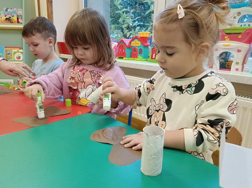 W minionym tygodniu nasze maluszki zgłębiały temat lasu i jego mieszkańców. Przedszkolaki poznały jeża, wiewiórkę, lisa i sarnę. Miały okazję pracować z naturalnym materiałem przyrodniczym, porównywały, dotykały, wąchały - gałązki świerku i sosny. Poprzez zabawę niepostrzeżenie uczyły się kontynuowania rytmów, ćwiczyły sprawność fizyczną, doskonaliły sprawność małych rączek, poznały nową zabawę w kole - ,,Lisek". Wykonały przepiękne grzyby a z pomocą farby i pędzla zmalowały ,,Liski".