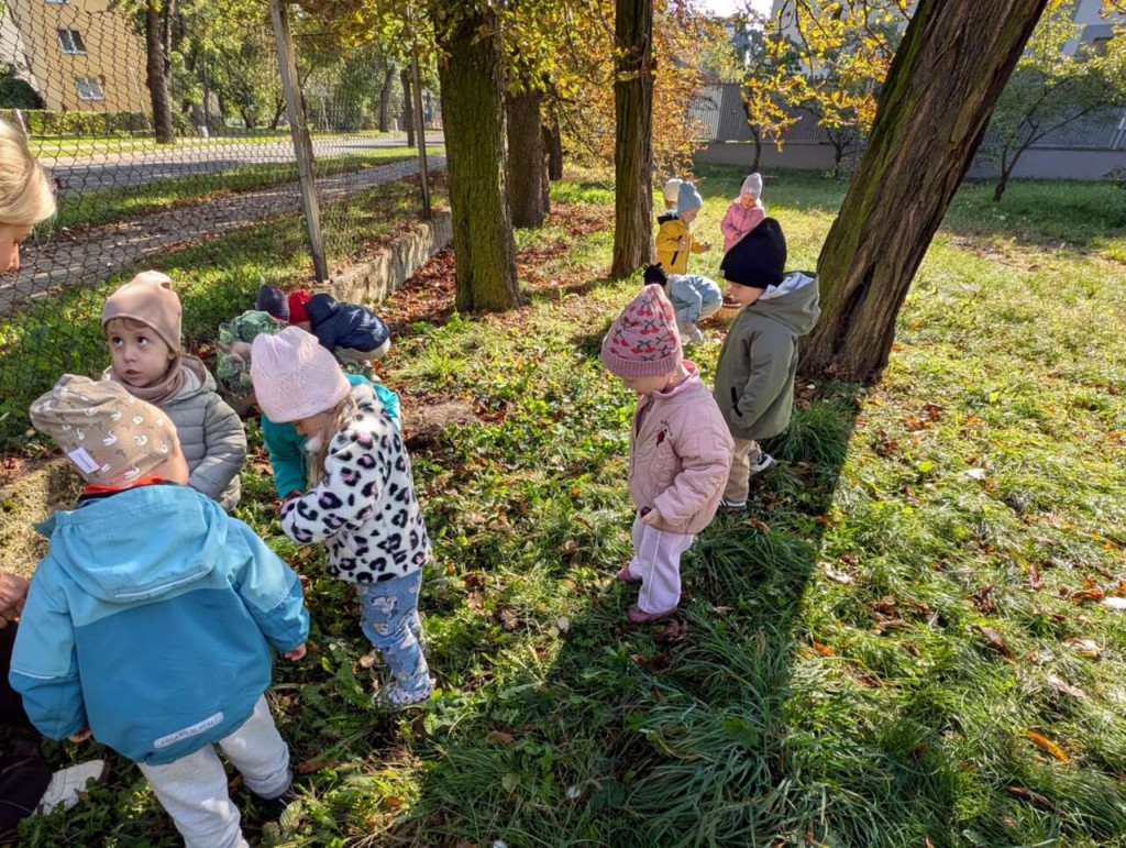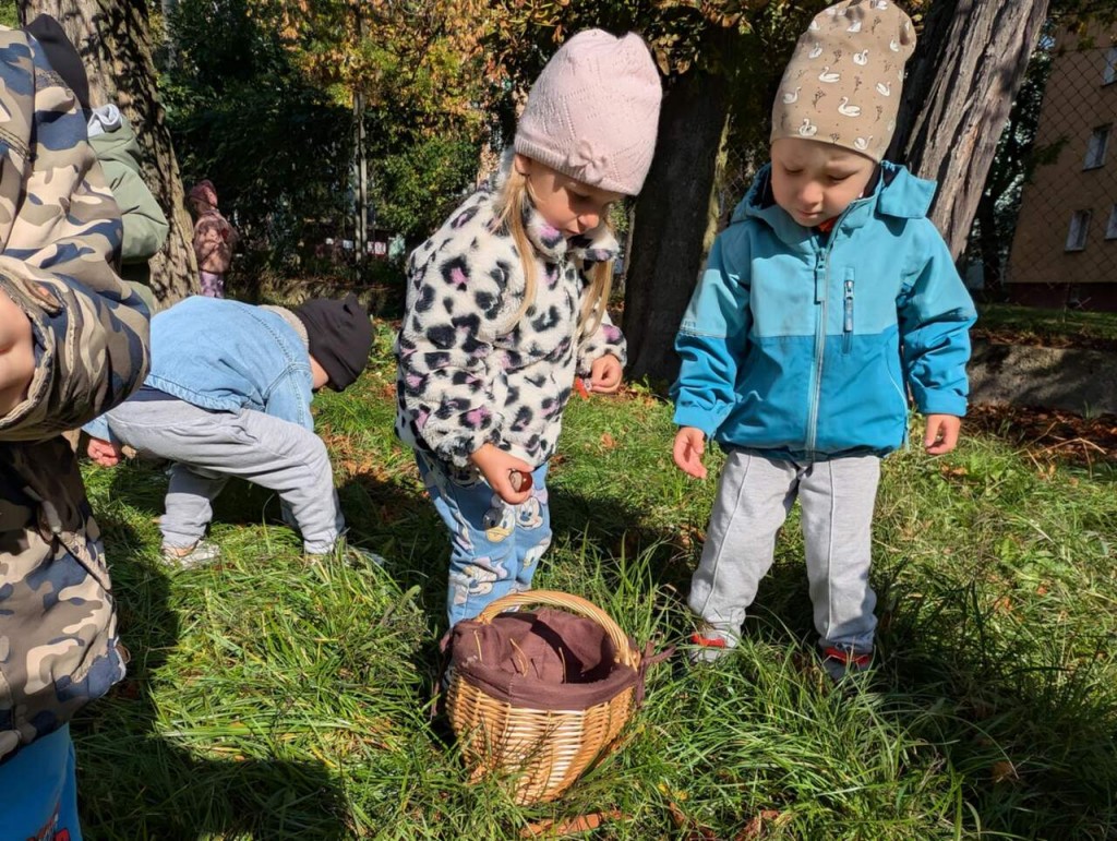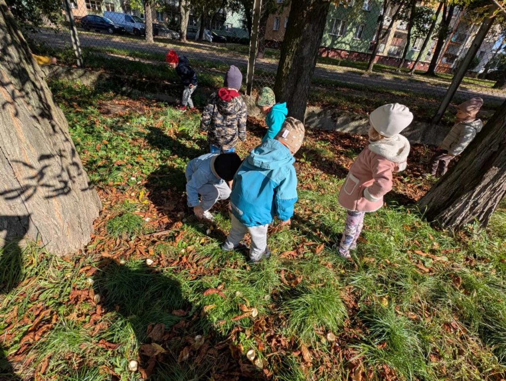 Jesień to piękna pora roku, pełna kolorów i cudownych widoków dlatego też postanowiliśmy skorzystać z uroków tej wspaniałej pory roku i wybraliśmy się na poszukiwania jesiennych liści i kasztanów. Jesienne skarby wzbogaciły jesienny kącik przyrody i były inspiracją do naszych zabaw.