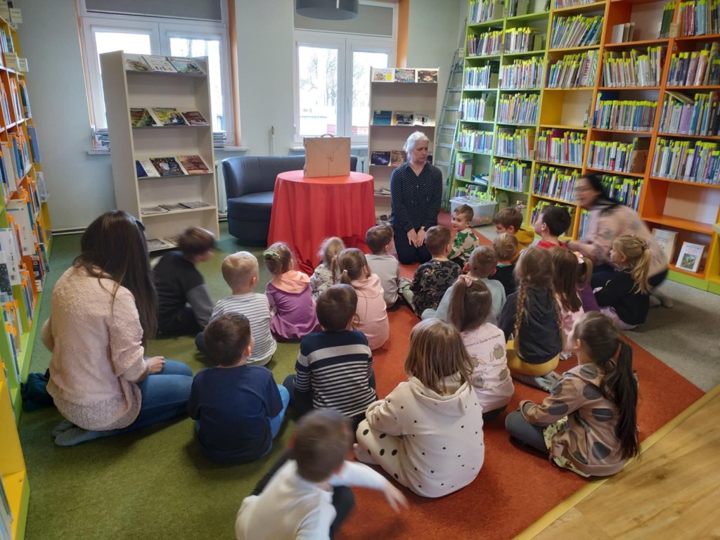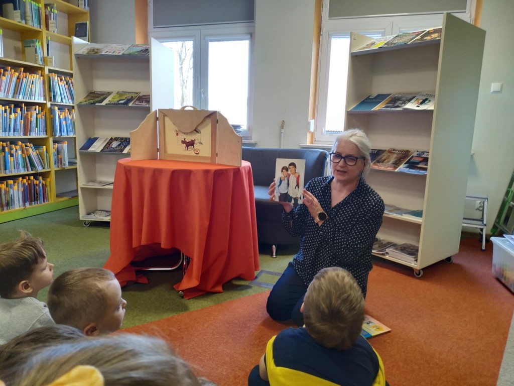 Jak radzić sobie z trudnymi emocjami i kłótniami? Co to jest przyjaźń i co zrobić, aby jej nie stracić? Na te i inne pytania dotyczące przyjaźni, szukaliśmy odpowiedzi podczas kwietniowych zajęć z cyklu „Z przedszkolakami w świat wartości”, na których byliśmy w Bibliotece Pedagogicznej. Dzięki japońskiej bajce Kumiko Yamamoto "Szukając Marudka" przedstawionej przez Panią Bibliotekarkę w formie teatrzyku kamishibai, dowiedzieliśmy się, że przyjaźń to coś cennego, nawet w najgorsze dni i że nawet jeśli ktoś się z kimś kłóci, przyjaźń może przetrwać, bo czasem wystarczy tylko porozmawiać. Bardzo dziękujemy Pani Bibliotekarce za pouczające i miłe spotkanie.