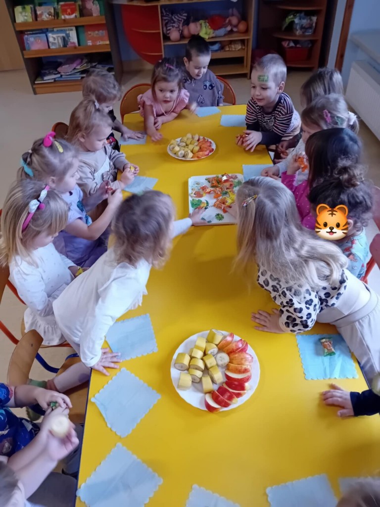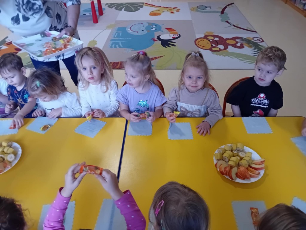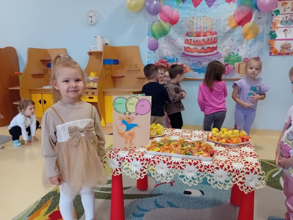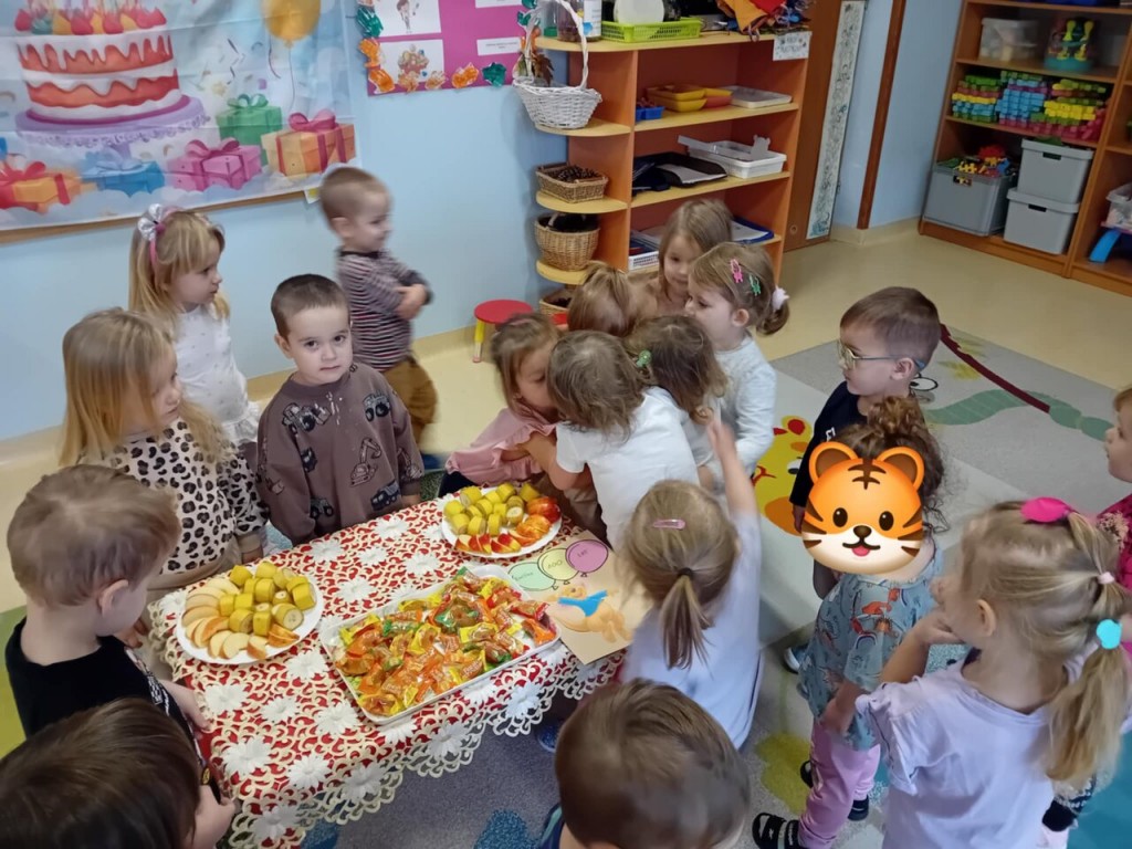 W listopadzie świętowaliśmy urodziny Emilki. Zgodnie z naszym zwyczajem, odśpiewaliśmy urodzinową piosenkę oraz złozyliśmy najserdeczniejsze życzenia. Potem mogliśmy poczęstować się pysznymi owocami i słodkościami. Przygotowywaliśmy też urodzinową kartkę z życzeniami. Wszystkiego dobrego Emilko!