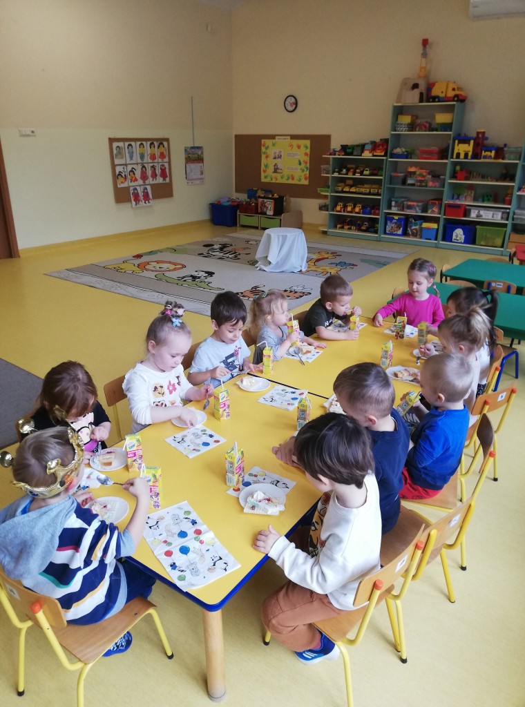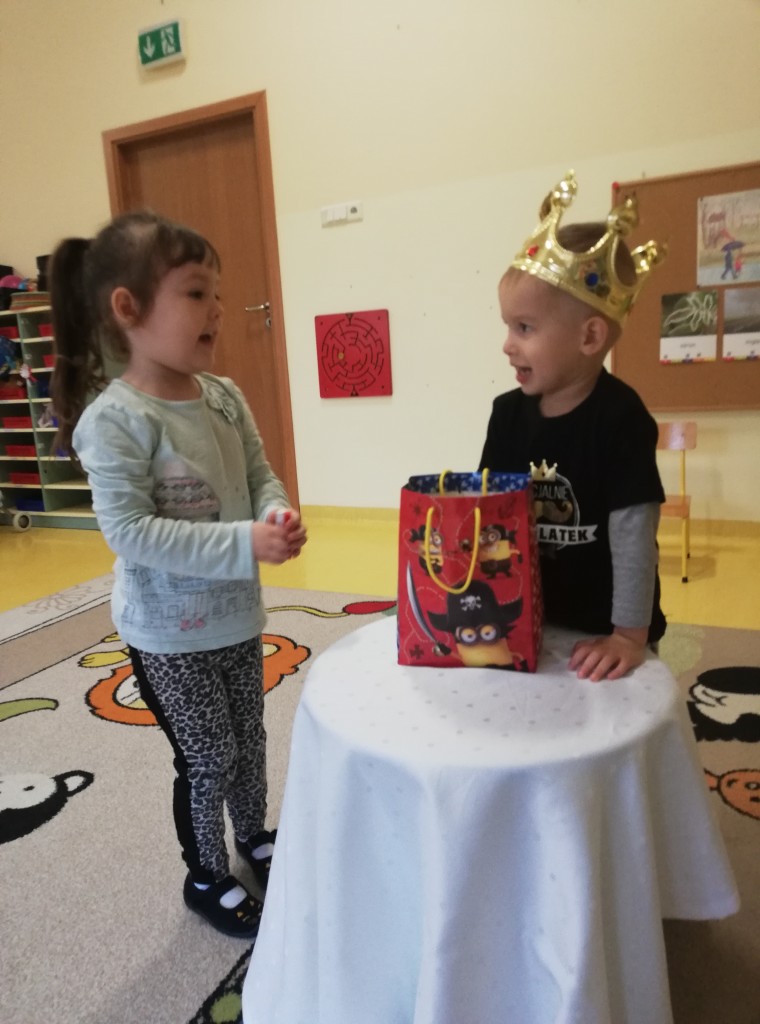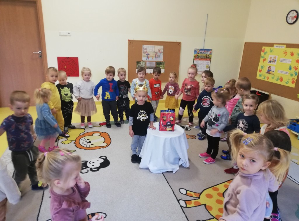 Urodziny w przedszkolu to wielka radość i niezapomniane chwile, które cieszą każdego. W listopadzie swoje 3 urodzinki obchodzili: Kacperek i Oluś. Świętowanie rozpoczęliśmy piosenką urodzinową. Wszystkie dzieci zrobiły piękne koło, w środku którego miejsce zajęli nasi Jubilaci. Następnie złożyliśmy życzenia, po których przyszedł czas na słodki poczęstunek. Naszym kochanym Jubilatom jeszcze raz życzymy dużo uśmiechu i samych radosnych dni.