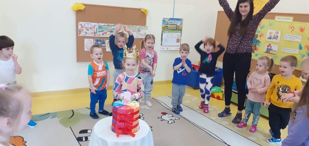 W miesiącu lutym swoje urodzinki obchodziili : Kornelka, Wiktoria, Bonia, Oluś i Klara. Jak zawsze nie zabrakło naszej urodzinowej piosenki, podczas której Nasi Jubilaci mogli poczuć się wyjątkowo, a także słodkiego poczęstunku oraz niespodzianek przygotowanych przez rodziców. Naszym Jubilatom życzymy dużo zdrówka, radości i uśmiechu.