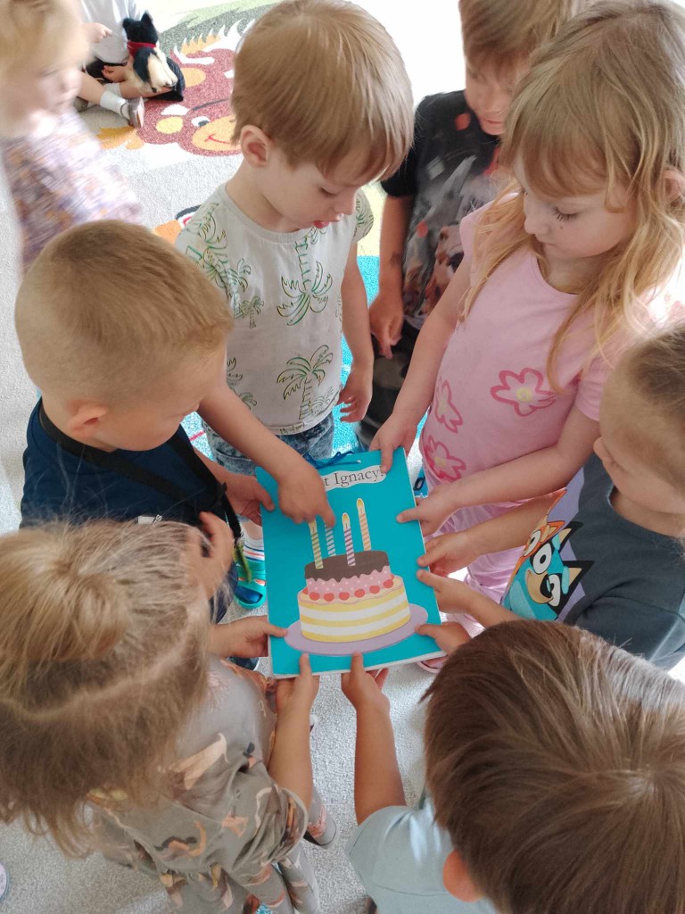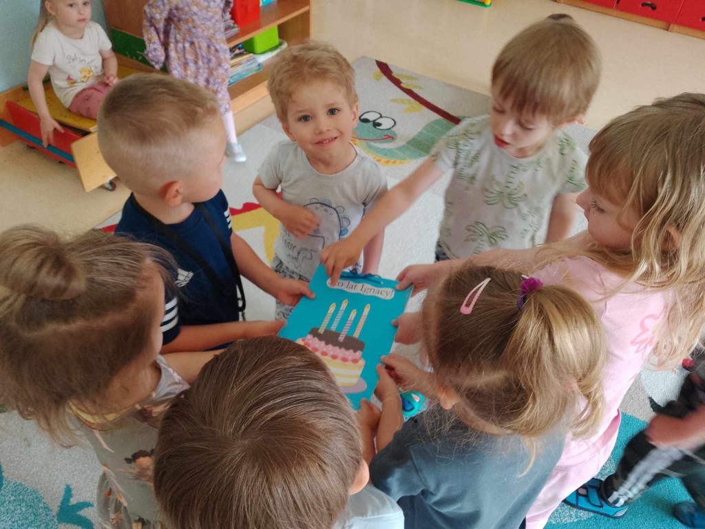 W maju swoje czwarte urodziny obchodziło czworo naszych przedszkolaków: Iga, Michasia, Mikołaj K. oraz Ignacy. Z tej okazji naszym jubilatom zaśpiewaliśmy sto lat i złożyliśmy najserdeczniejsze życzenia. Dzieci natomiast w podziękowaniu za pamięć poczęstowały nas pysznymi słodkościami.