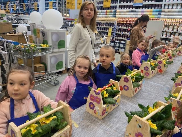 Nasze 5 latki na wiosennych zajęciach z majsterkowania w Castoramie wykonały skrzyneczki na kwiaty. Była to wspaniała zabawa i nauka, która dostarczyła dzieciom wielu niezapomnianych wrażeń. Serdecznie dziękujemy !