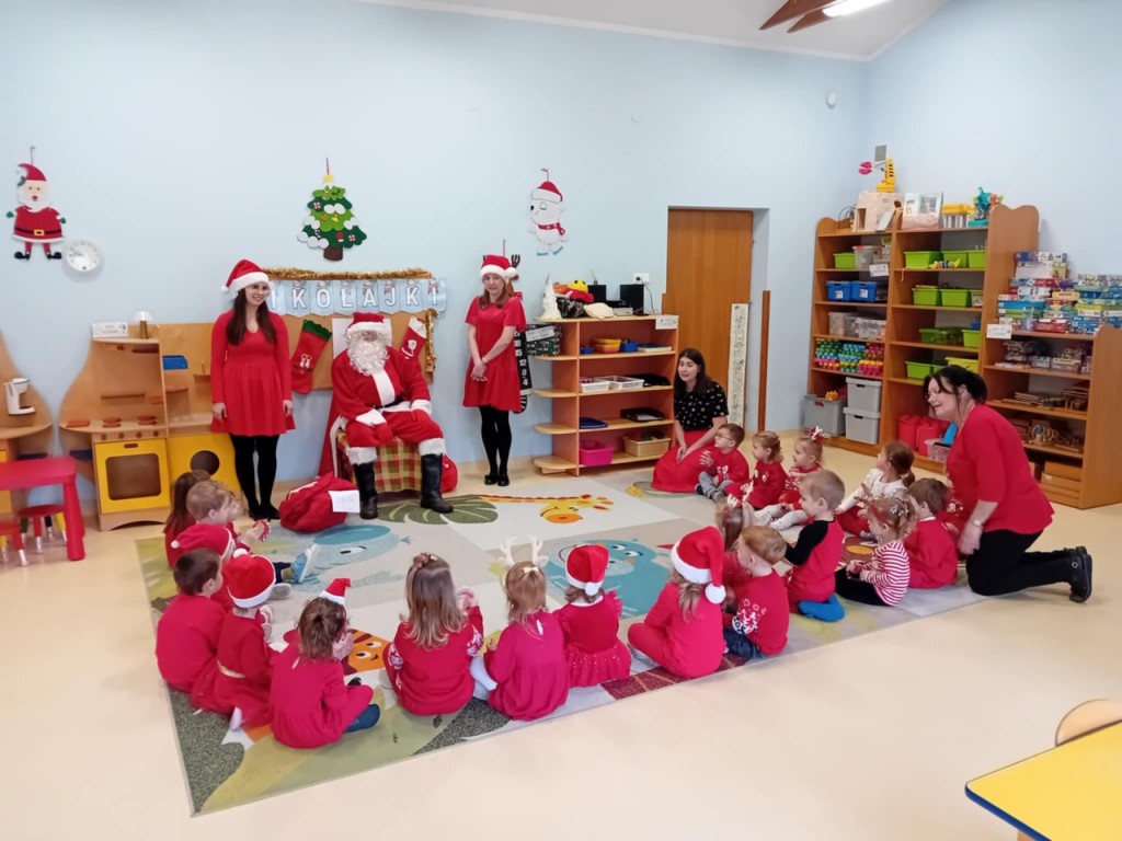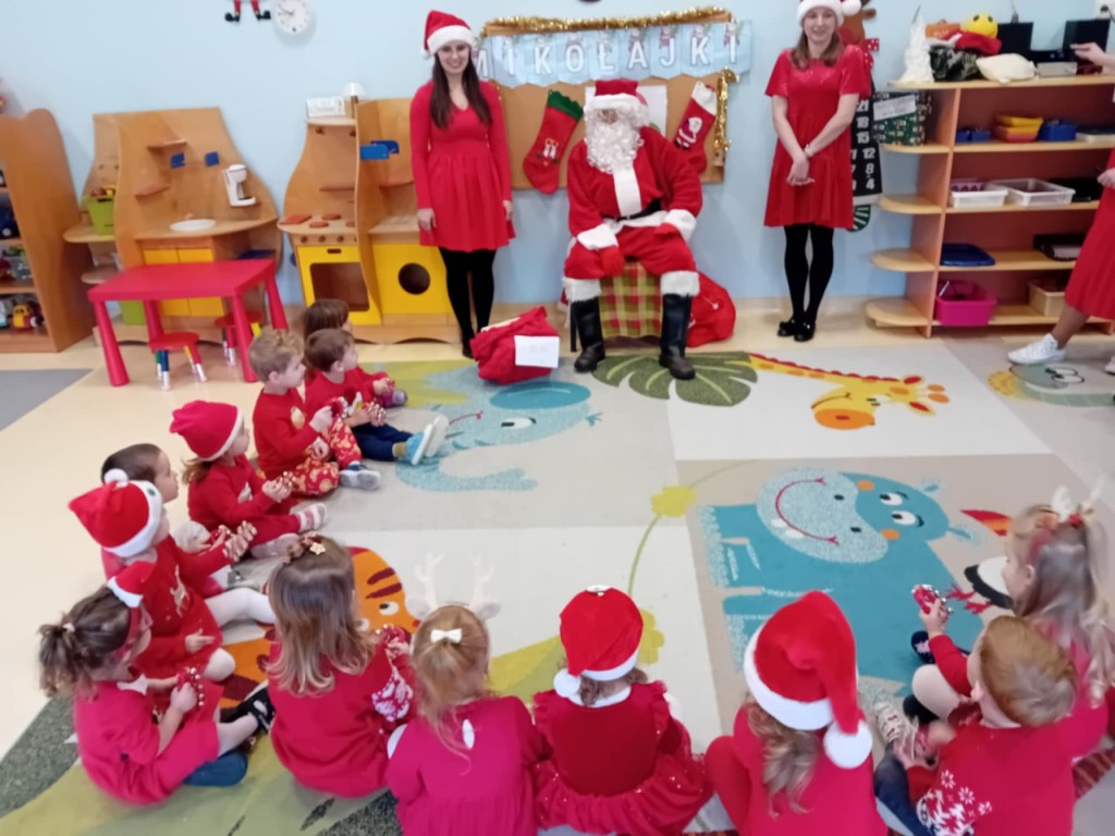 Dnia 5 grudnia naszą grupę odwiedził dziś długo wyczekiwany Gość - Mikołaj. Pięknie przywitaliśmy Mikołaja piosenką oraz wręczyliśmy mu swoje dobre uczynki. Niektórzy postanowili nawet oddać smoczek Mikołajowi. Ach...cóż to było za spotkanie! Mikołaj obdarował nas prezentami a my zaprosiliśmy go na przyszły rok.