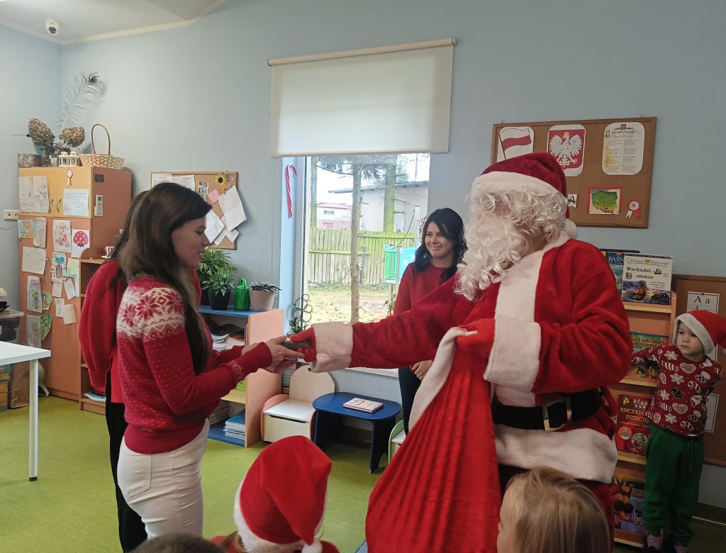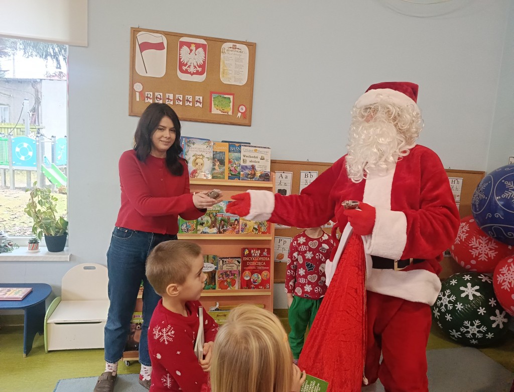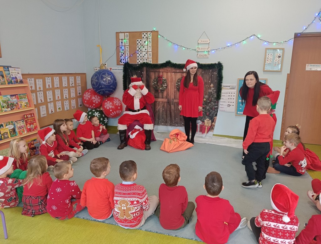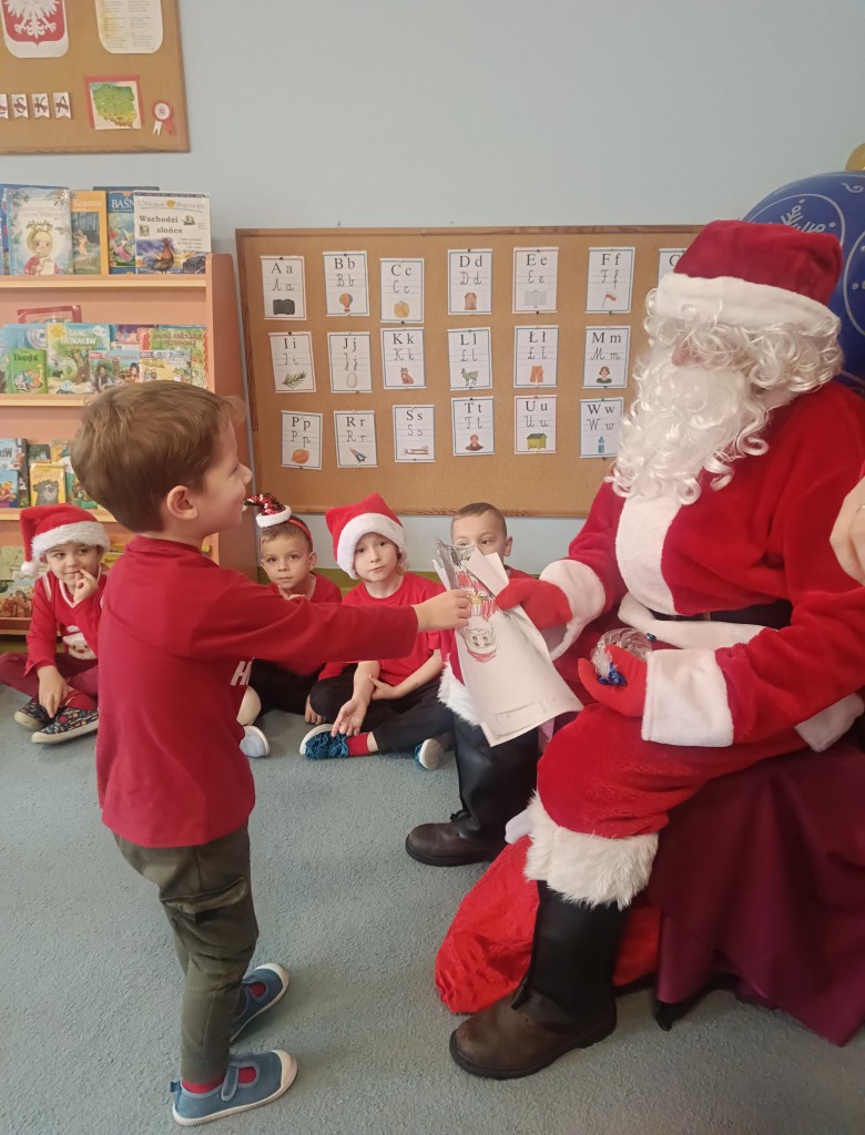 5 grudnia okazał sie wyjątkowym dniem, ponieważ odwiedził nas Mikołaj. Dzieci przygotowały Mikołajowi swoje dobre uczynki,które zbierały i z pomocą zapisywały przez cały tydzień w przedszkolu ale również w swoich domach. Mikołaj otrzymał również pierniczki oraz kolorowe obrazki własnoręcznie narysowane przez dzieci. Nie zapomniał docenić starań dzieci i wręczył im prezenty, a one w podziękowaniu zaśpiewały mu Mikołajową piosenkę. Nasz kochany Mikołaj pamiętał również o paniach,które obdarował małym co nieco. Dziękujemy Mikołaju i zapraszamy za rok !