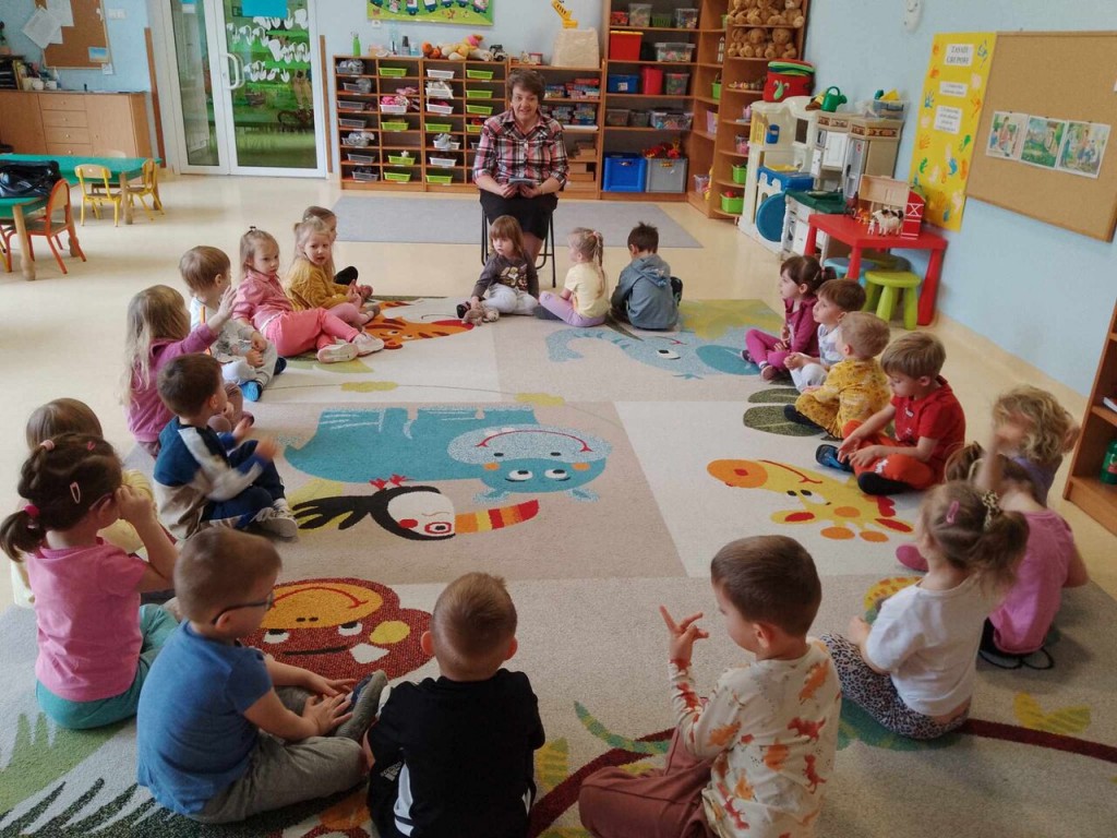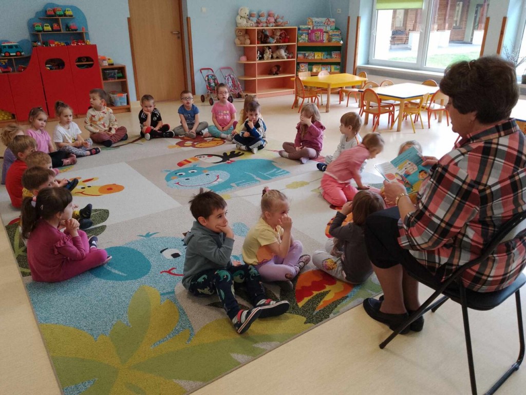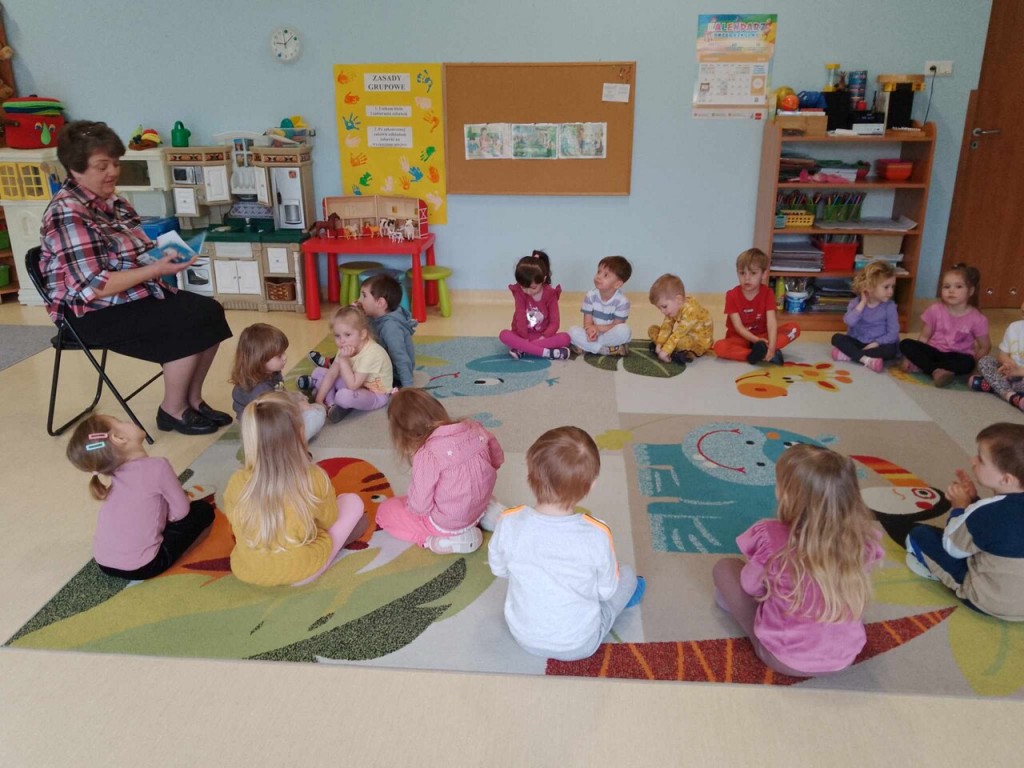 Dnia 15 kwietnia w ramach cyklu spotkań „Minutki z książką” odwiedziła nas pani z Biblioteki Pedagogicznej. Spotkanie nawiązywało do tematyki tygodnia pt. „ Na wiejskim podwórku”. W czasie wizyty utrwaliliśmy naszą wiedzę dotyczącą zwierząt, mieszkających na wsi. Dowiedzieliśmy się jak wiele pracy jest na gospodarstwie oraz jak bardzo pożyteczne są zwierzęta. Za sprawą spotkań z książką w tle przekonujemy się, że obcowanie z literaturą jest niezwykle interesujące i wzbudza pozytywne emocje!