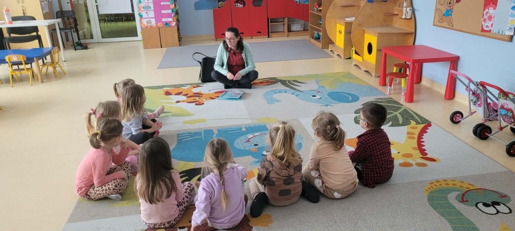 Dnia 9 lutego odbyło się kolejne spotkanie z Panią z Biblioteki Pedagogicznej w ramach cyklu „Minutki z książką”. Podczas zajęć Pani bibliotekarka przybliżyła dzieciom temat zabaw na śniegu. Inspirujące propozycje z pewnością wykorzystamy podczas zimowej, śnieżnej aury na świeżym powietrzu. Serdecznie dziękujemy Pani z Biblioteki za ciekawe i wartościowe zajęcia oraz wspaniałe połączenie zabawy z literaturą dziecięcą.
