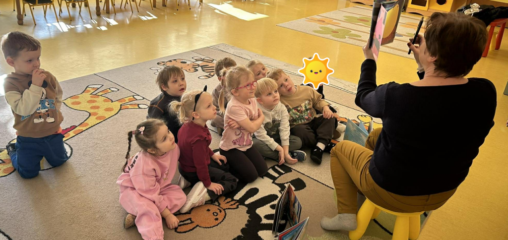 Dnia 10 lutego odbyło się nasze kolejne spotkanie z Panią z Biblioteki Pedagogicznej w ramach cyklu „Minutki z książką”. Podczas zajęć Pani bibliotekarka przybliżyła na temat pory roku jaką jest zima. Z uwagą i zaciekawieniem wsłuchiwaliśmy się opowieści czytanych przez naszego gościa, koncentrowaliśmy uwagę na niezwykłej grafice książek oraz prowadziliśmy rozmowę na temat zimowej aury.