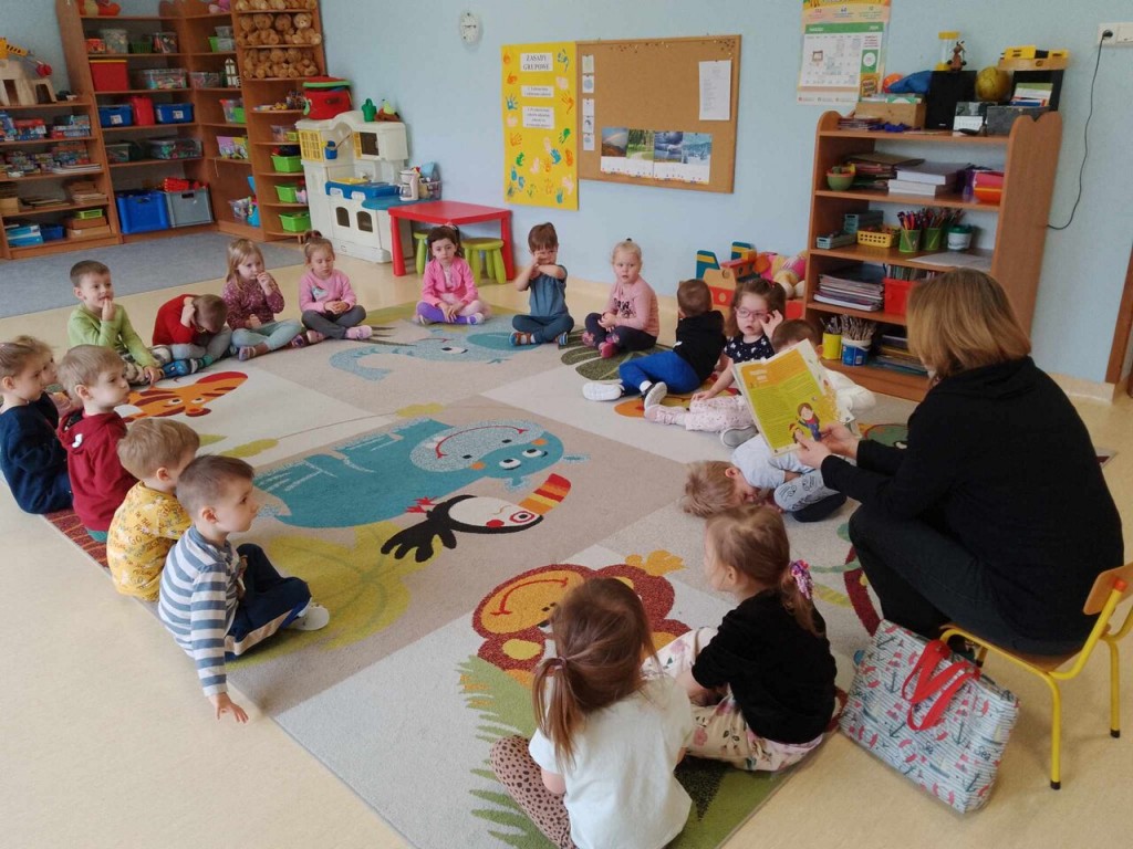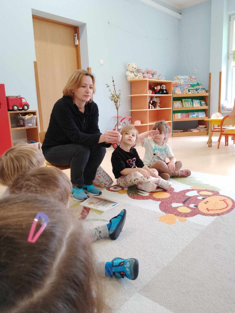 W ramach cyklu „Minutki z książką” 5 lmarca mieliśmy przyjemność po raz kolejny gościć w naszej grupie Panią z Biblioteki Pedagogicznej. Wsłuchując się w książeczkę „Wiosna ”, mogliśmy dowiedzieć się co kryje za sobą ta przepiękna pora roku i poznać nazwy roślin, które są jej zwiastunami.