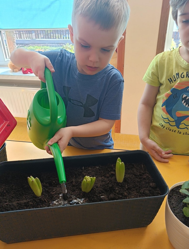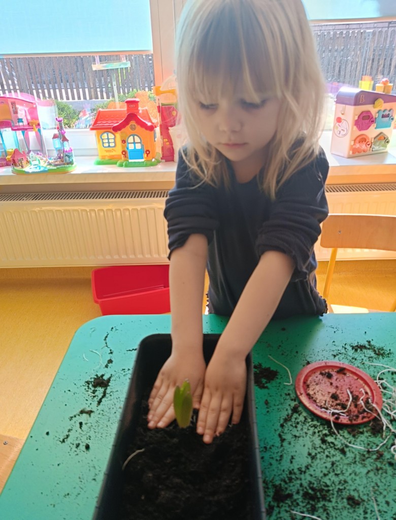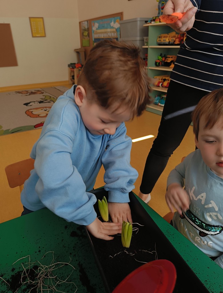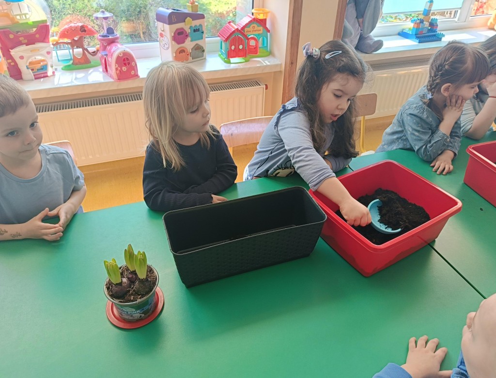W naszej sali powstał zielony kącik, mając na celu poznanie otaczającego nasz świata oraz rozbudzenie ciekawości przyrodniczej przedszkolaków. Dzieci same sadziły cebulki i roślinki, aby później mieć możliwość poznania cyklu rozwoju roślin i prowadzenia częstych obserwacji . Ponadto przedszkolaki uczą się systematycznej pielęgnacji, podczas pełnienia codziennych dyżurów przy podlewaniu.