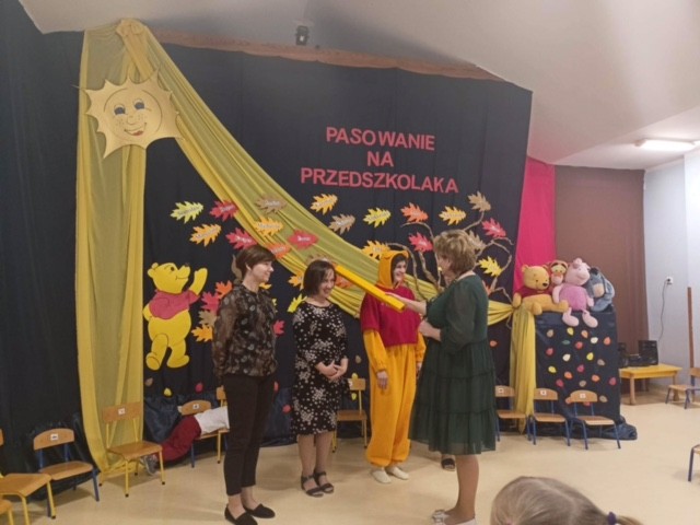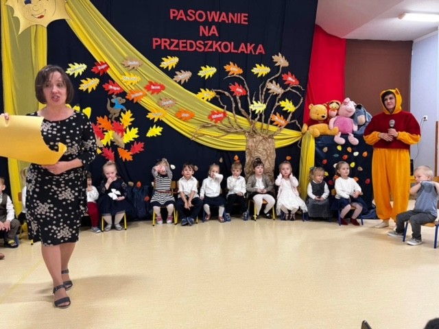 29 listopada „Maleństwa” uroczyście zostały przyjęte do grona przyjaciół Kubusia Puchatka, który osobiście w tym dniu przybył do naszego przedszkola. Po wspólnej zabawie i zaprezentowaniu swoich umiejętności przedszkolaki złożyły ślubowanie, po czym zostały pasowane przez panią dyrektor Beatę Rychlik. Na pamiątkę uroczystości każdy przedszkolak otrzymał dyplom. Nie zabrakło również ślubowania rodziców, którzy zobowiązali się do wspierania przedszkola w jego pracy oraz czerpania radości z dzieciństwa swojego dziecka. Po uroczystym pasowaniu przyszedł czas na pyszny tort przygotowany przez nasze Panie kucharki. Był to dzień pełen radości i pozytywnych emocji, który na długo pozostanie w naszej pamięci.