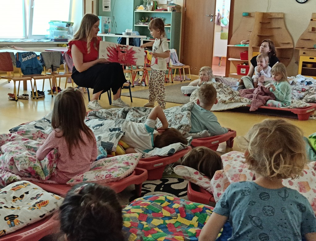 W ramach bloku tematycznego związanego z Dniem Mamy mieliśmy przyjemność wysłuchać ulubionych bajek naszych przedszkolaków czytanych przez ich mamusie. Bardzo dziękujemy za zaangażowanie mamie Zosi, Jeremiasza oraz Kubusia. Uśmiech na twarzach dzieci był dowodem na to, jak dużo radości sprawiło im wysłuchanie bajek.