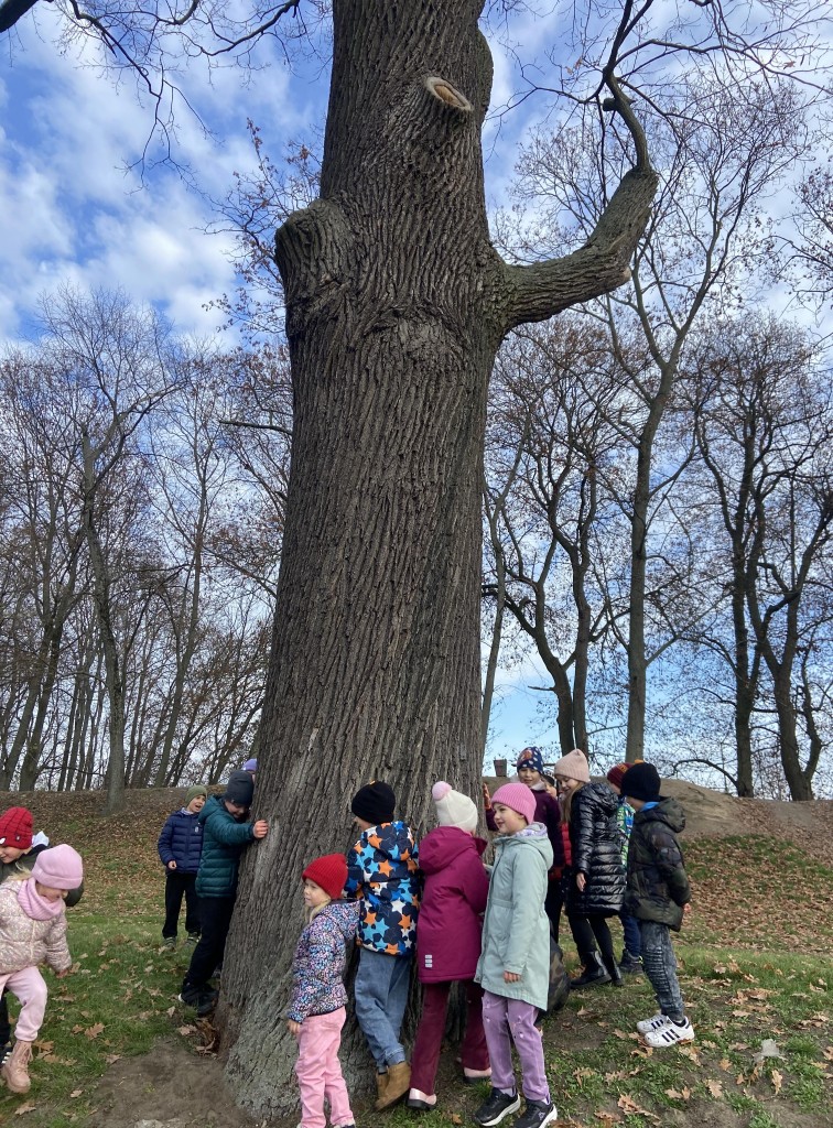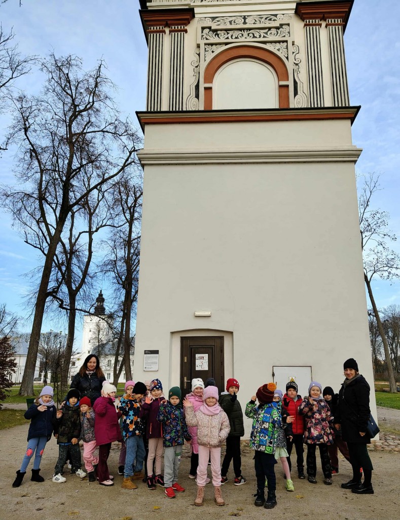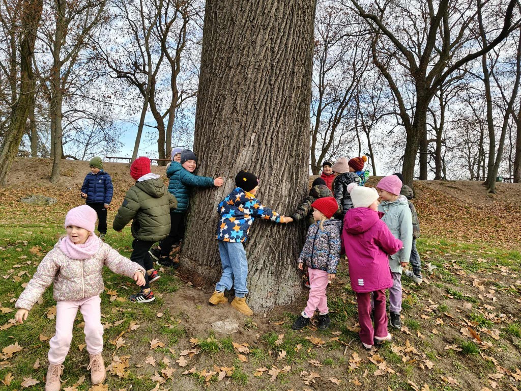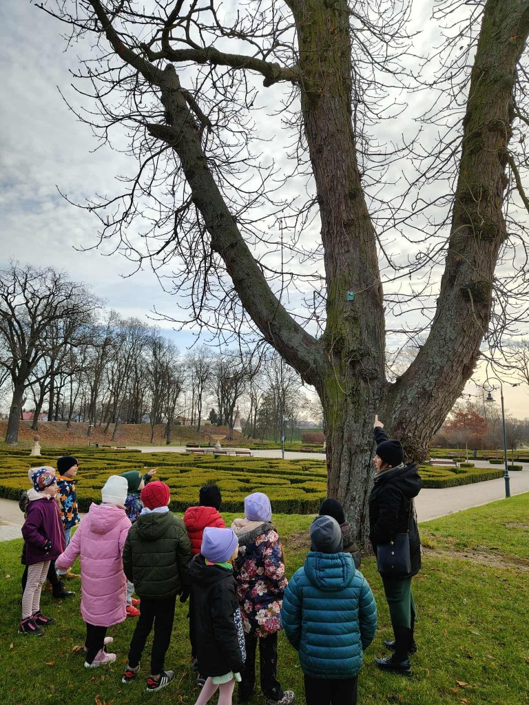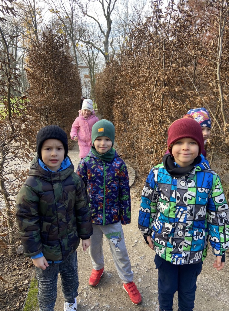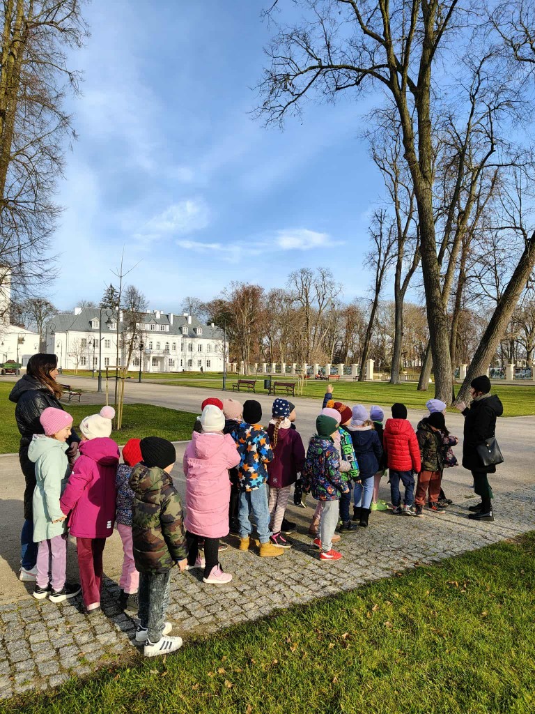 W słoneczny listopadowy dzień 6 latki wybrały się na jesienny spacer do parku Radziwiłłów. Była to świetna okazja do aktywnego spędzenia czasu na swieżym powietrzu oraz poznawania historii i ciekawostek architektonicznych zabytkowych budowli. Dzieci dowiedziały się również co oznacza nazwa "Pomnik przyrody". Spacer i pobyt w parku dostarczył im wielu niezapomnianych wrażeń.