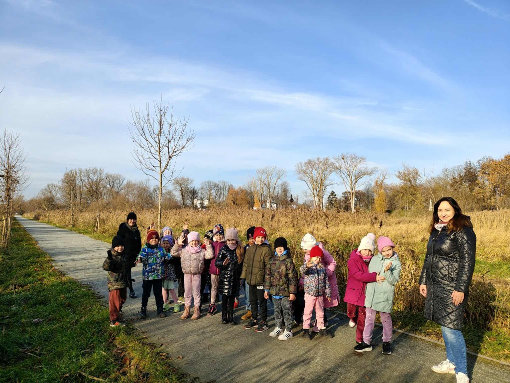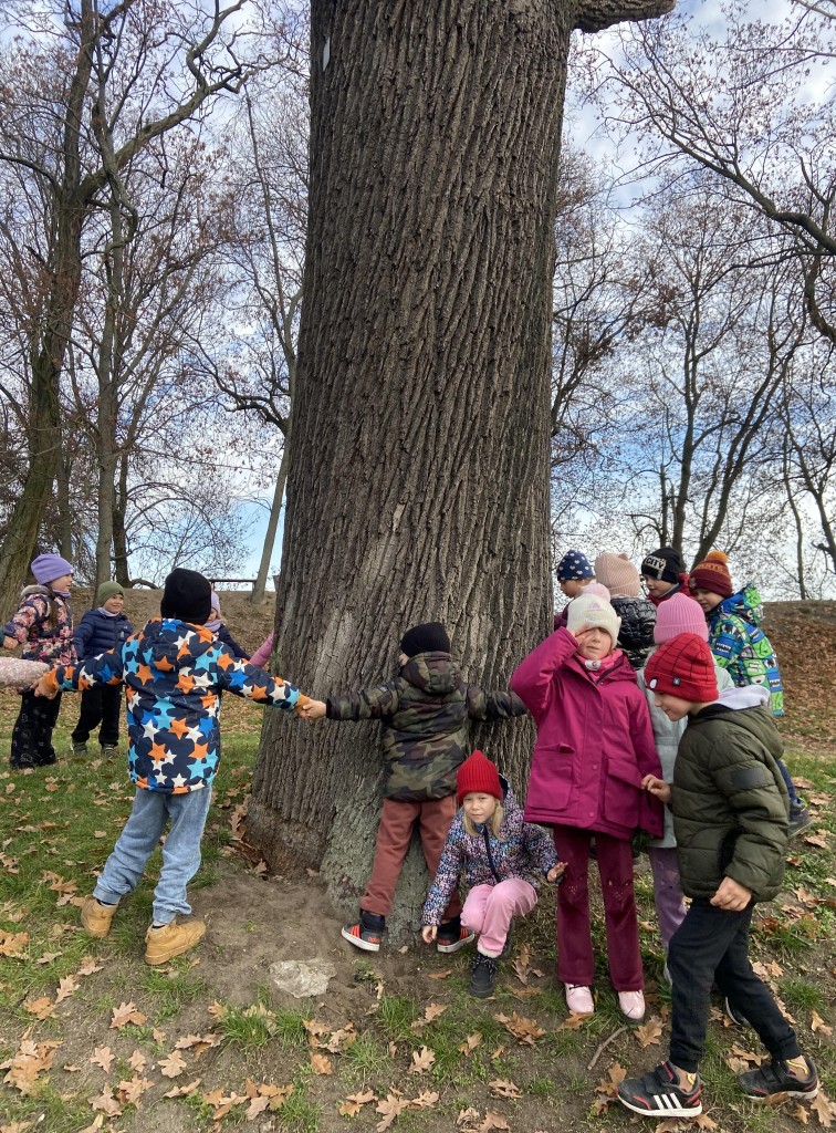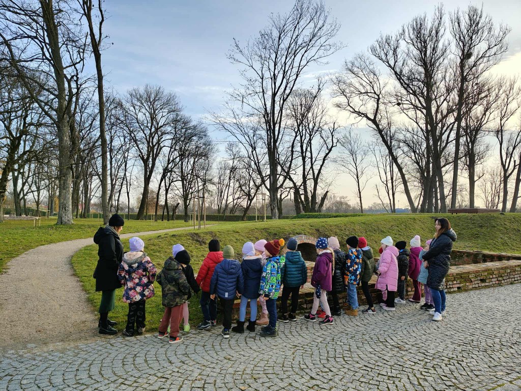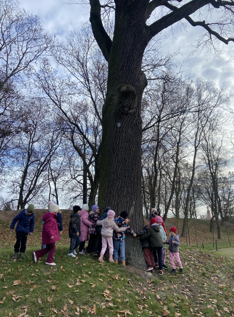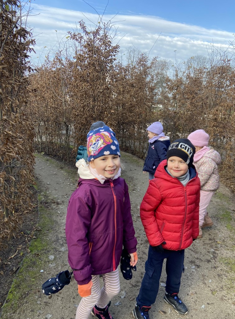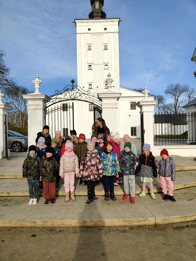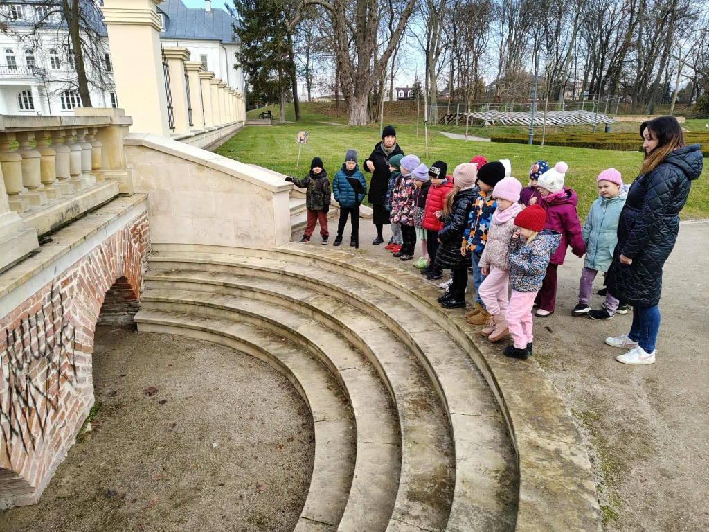 W słoneczny listopadowy dzień 6 latki wybrały się na jesienny spacer do parku Radziwiłłów. Była to świetna okazja do aktywnego spędzenia czasu na swieżym powietrzu oraz poznawania historii i ciekawostek architektonicznych zabytkowych budowli. Dzieci dowiedziały się również co oznacza nazwa "Pomnik przyrody". Spacer i pobyt w parku dostarczył im wielu niezapomnianych wrażeń.
