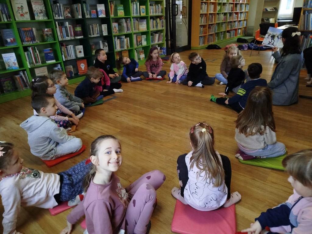 Dnia 18 lutego wzięliśmy udział w zajęciach bibliotecznych pt. „To i owo na zimowo”, zorganizowanych we współpracy z Biblioteką Pedagogiczną. Podczas spotkania poznaliśmy zimowe opowieści, rozmawialiśmy o tej porze roku oraz usystematyzowaliśmy naszą wiedzę na temat zimowych dyscyplin sportowych.