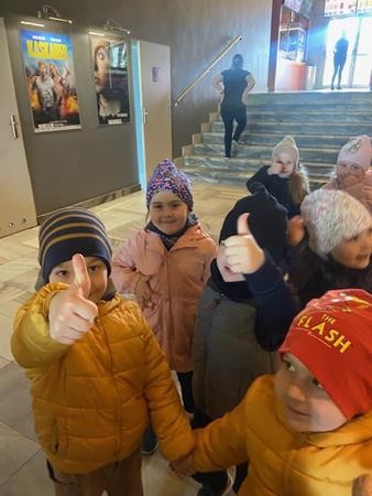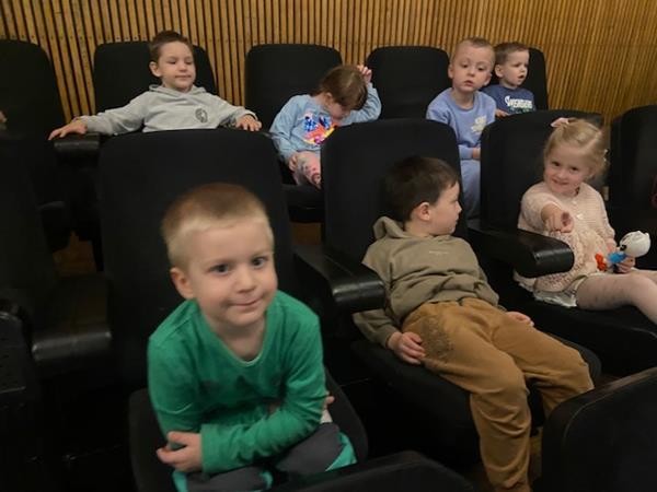 26 kwietnia wybraliśmy się na wycieczkę do kina, na bajkę pt. Kicia Kocia w przedszkolu. Celem naszej wycieczki było nabywanie umiejetności uczestniczenia w seansie filmowym oraz wdrażanie do właściwych zachowań podczas pobytu w kinie. Bajka dostarczyła nam wielu pozytywnych wrażeń i emocji, którymi dzieliliśmy się po powrocie do przedszkola.