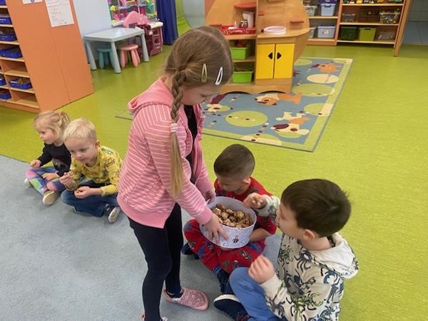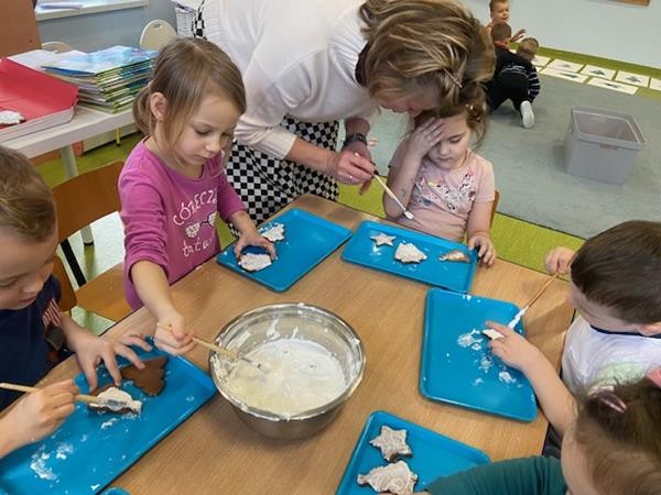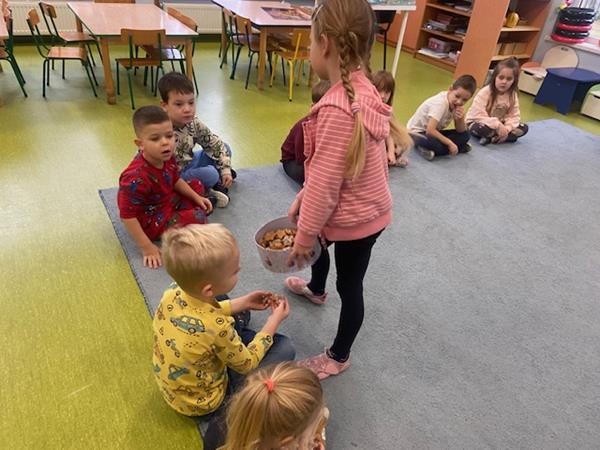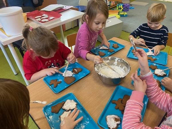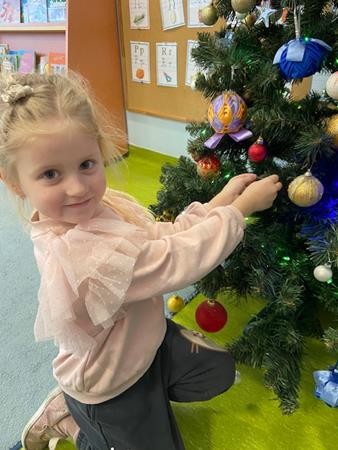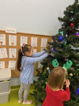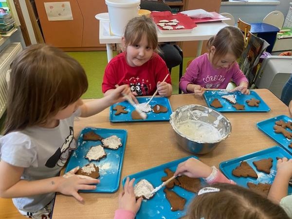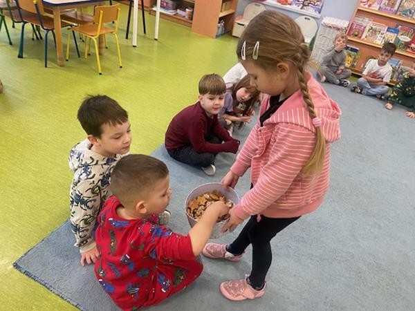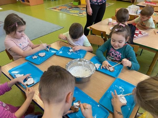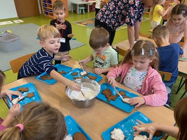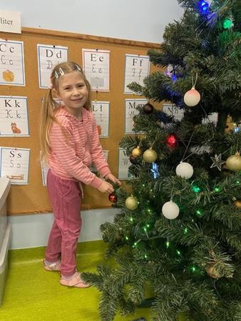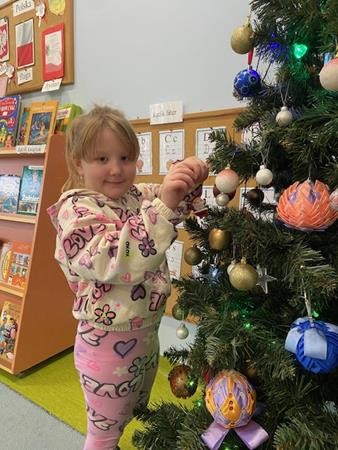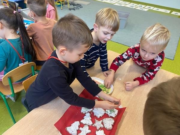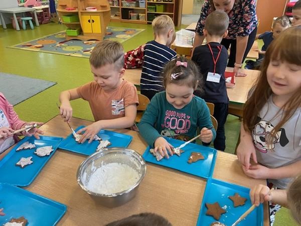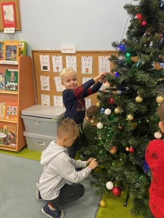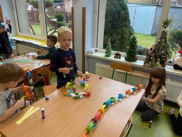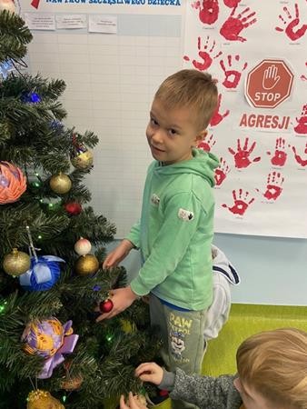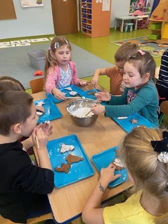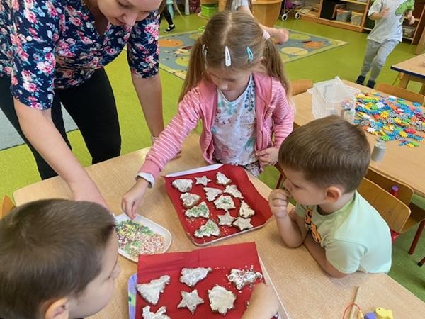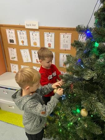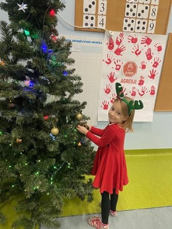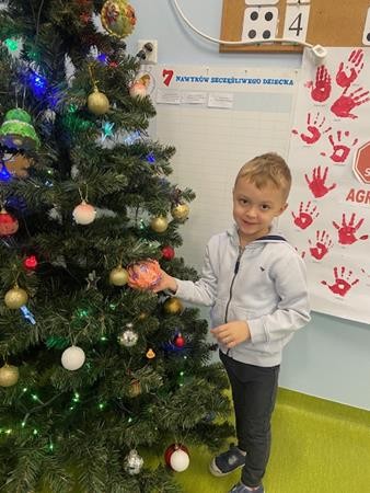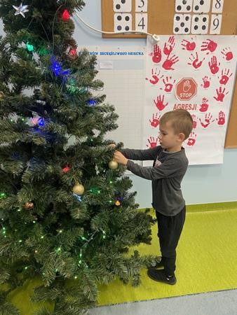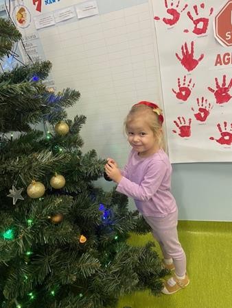 5 latki w okresie przedświątecznym ciężko pracowały, by przygotować się do świąt Bożego Narodzenia. Wspólnie z Paniami wykonały pierniczki, ubierały choinkę oraz przygotowywały choinkowe ozdoby. Dzieci uczyły się wspólnie śpiewać tradycyjne kolędy, pastorałki i piosenki o tematyce zimowo - świątecznej. Grudzień to był bardzo wyjatkowy czas, gdzie mogły poznać tradycje bożonarodzeniowe oraz poczuć nadchodzące święta.