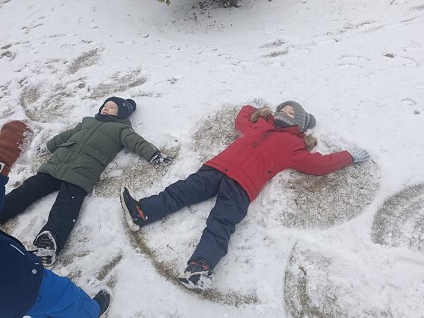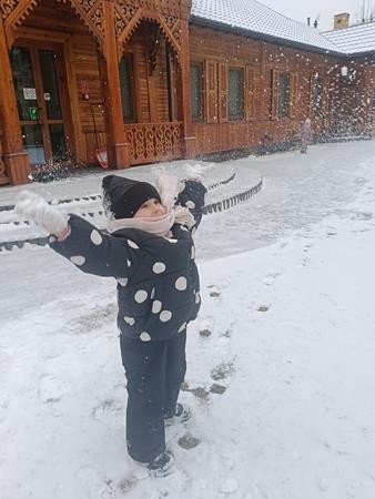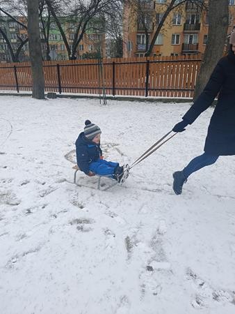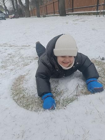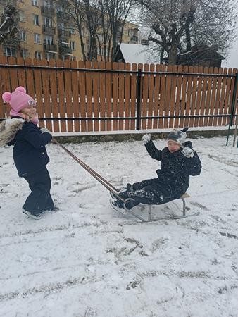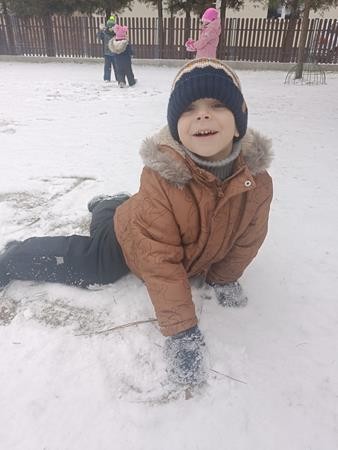 Korzystając z uroków zimy przedszkolaki bawiły się na śniegu w naszym przedszkolnym ogrodzie. Dzieci oddały się zimowemu szaleństwu, robiąc śnieżne aniołki i bawiąc się na sankach. Było mnóstwo szczęścia i uśmiechów na twarzy naszych przedszkolaków.